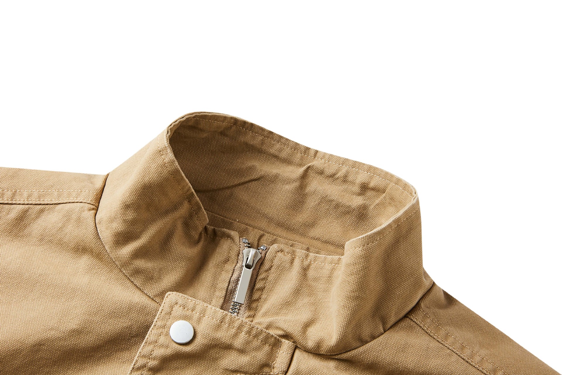 MADEEXTREME 봄 미국 복고풍 남성복 수직 칼라 폭격기 재킷 짧은 와이드 박스 작업복 세탁 재킷