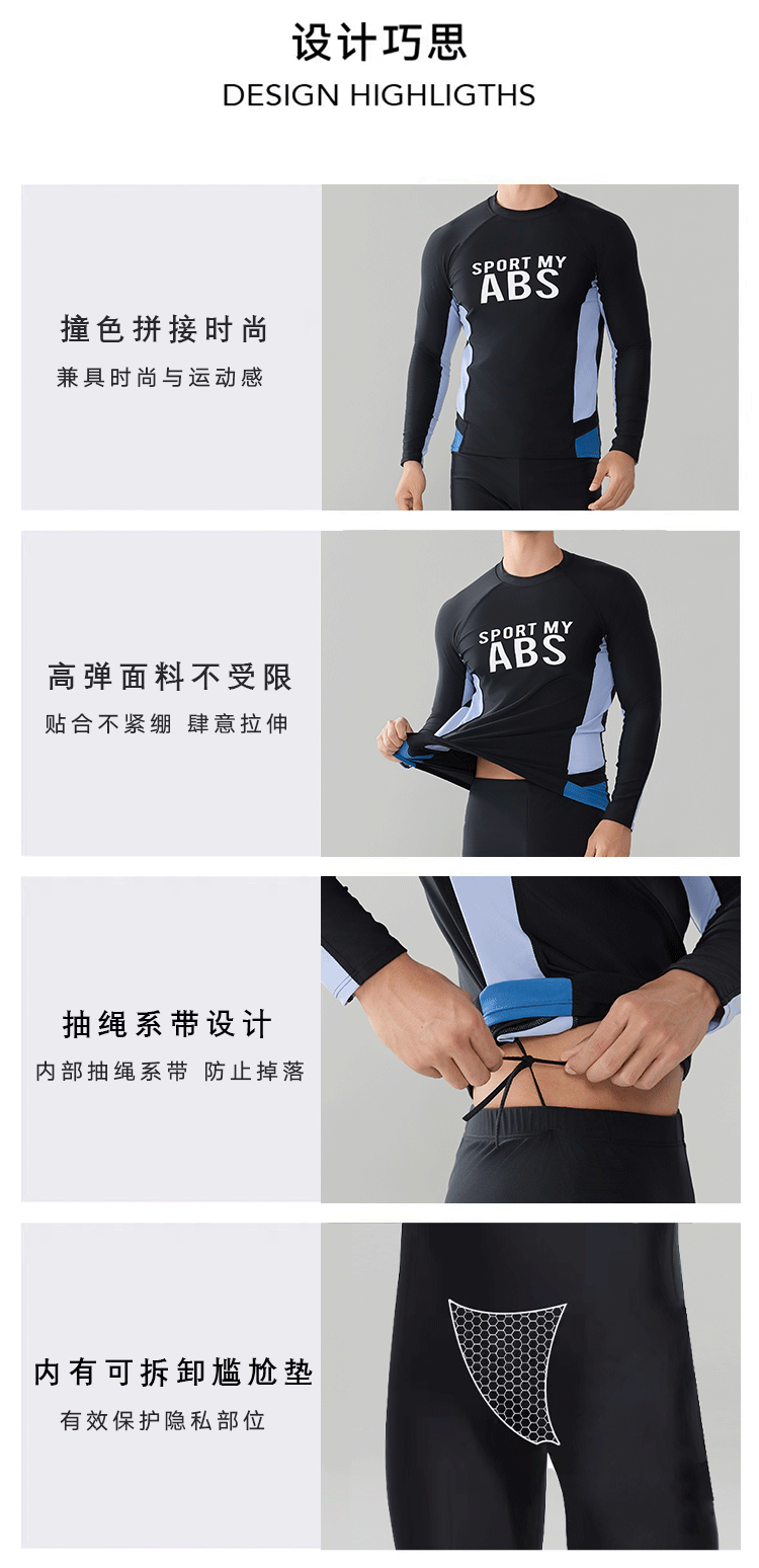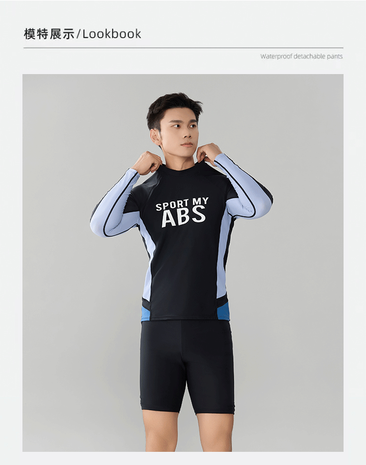 2025 새로운 남성 수영복 세트 긴 소매 태양 보호 보수적 인 온천 휴가 5 점 수영복 서핑 플러스 사이즈 수영복스토어 가기