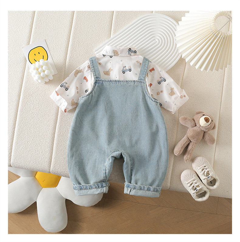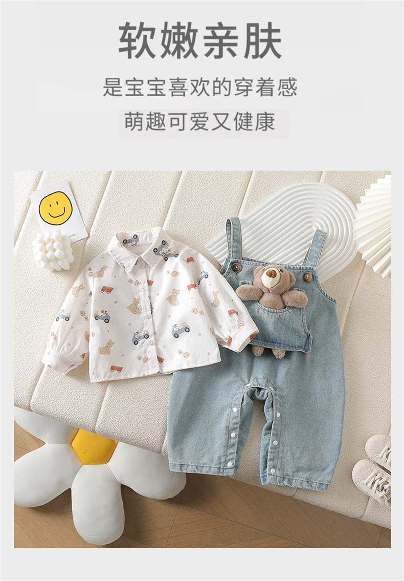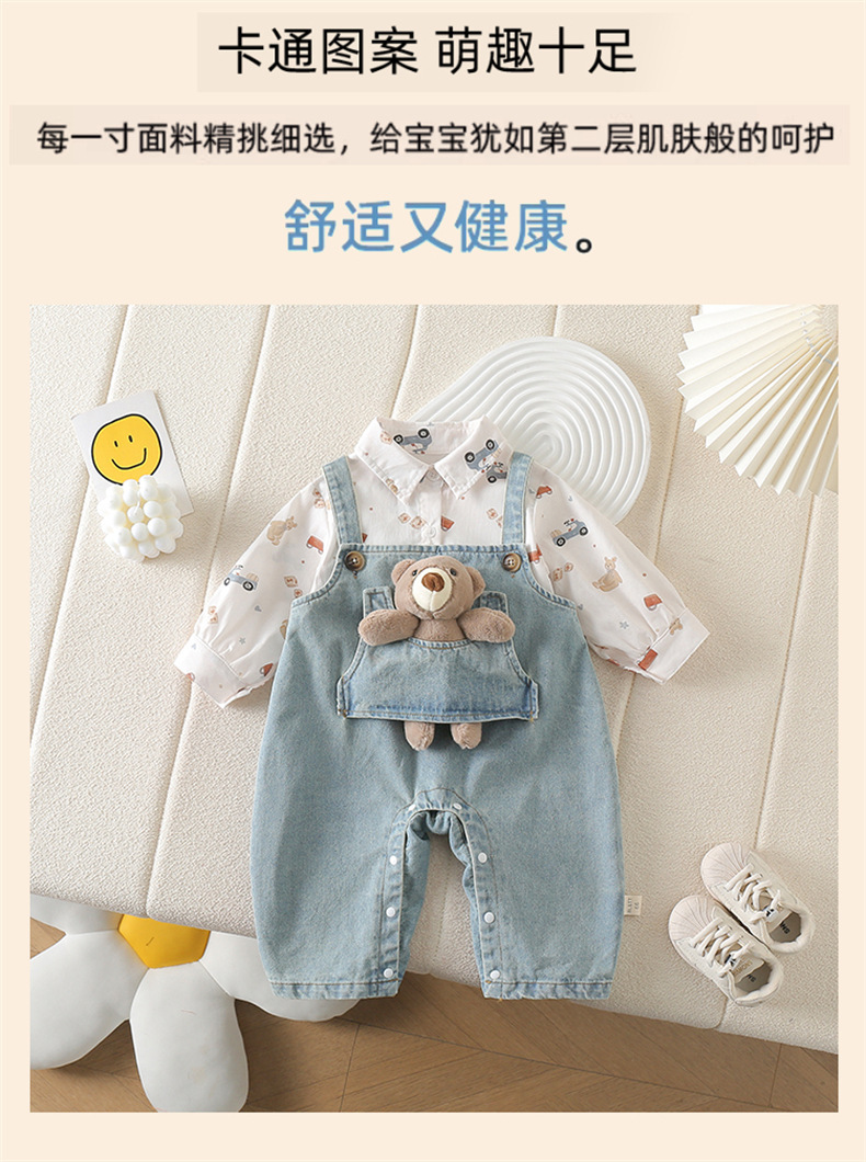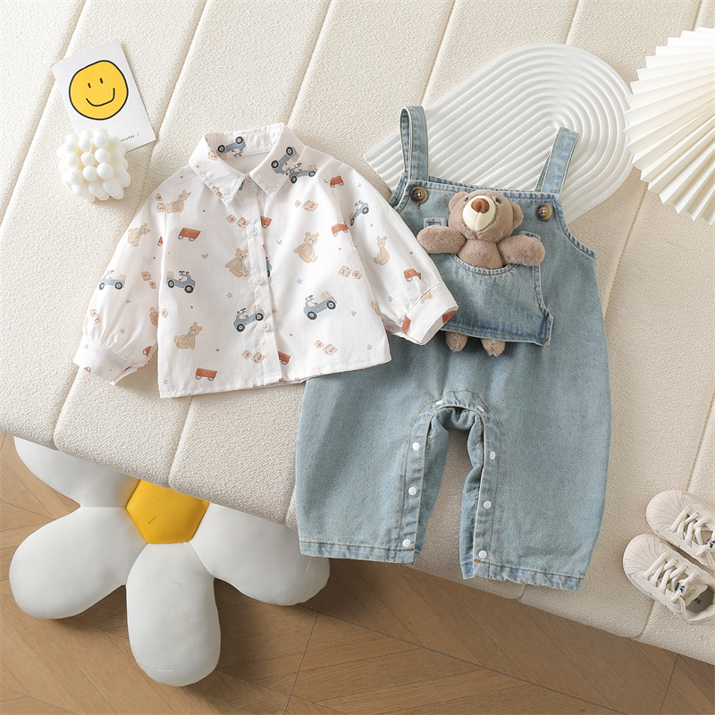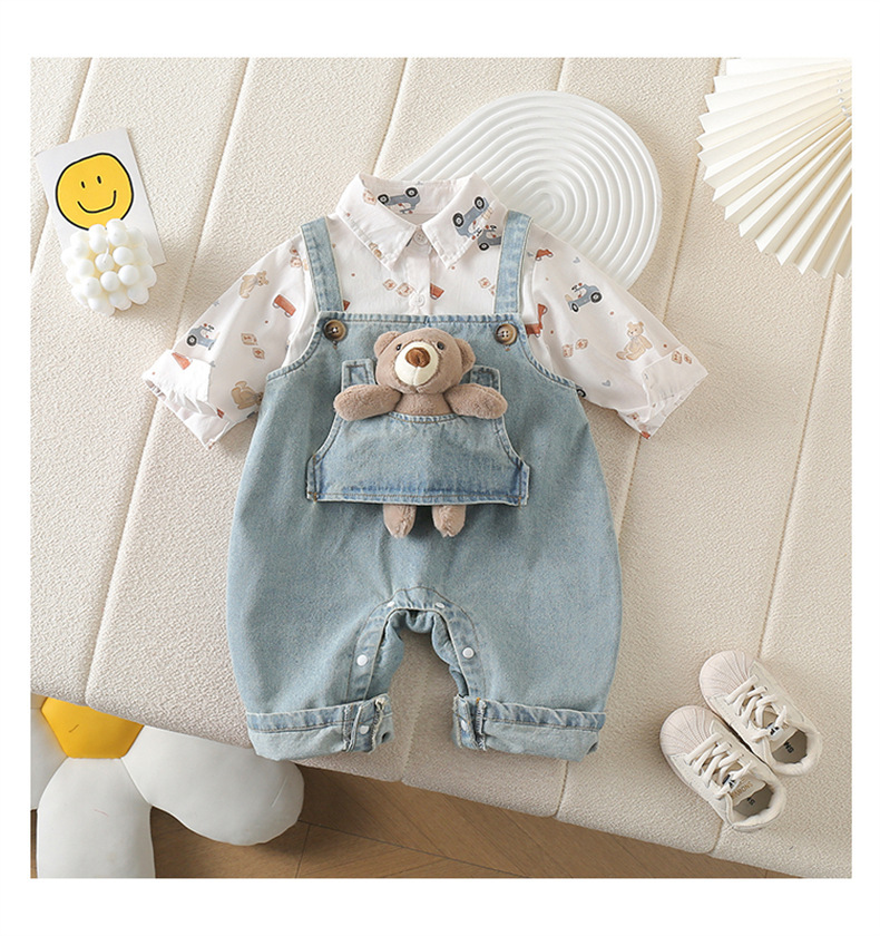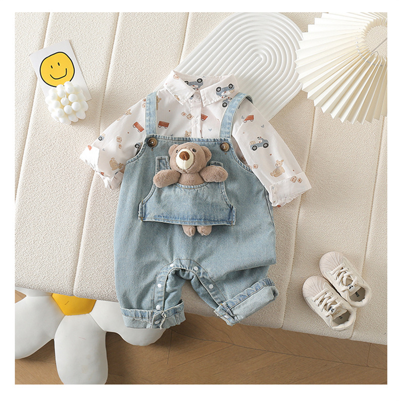 아기 옷 세트 봄 옷 서양식 아기 점프 수트 어린이 셔츠 데님 봄 가을 옷을 등반하는 멜빵