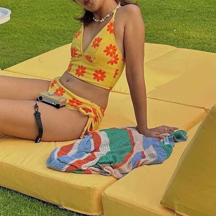 태국 새로운 꽃 수건 원단 섹시한 분할 수영복 여성 Ins 바람 해변 휴가 비키니 패션