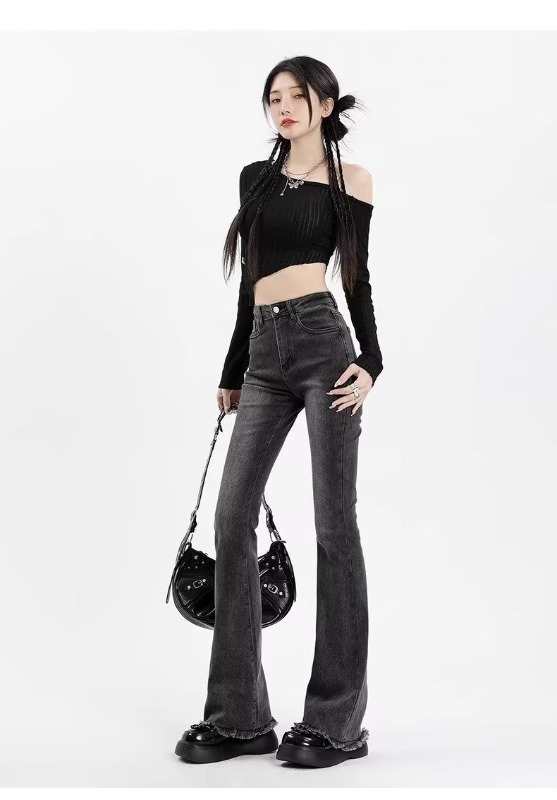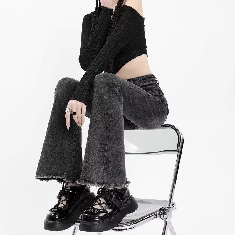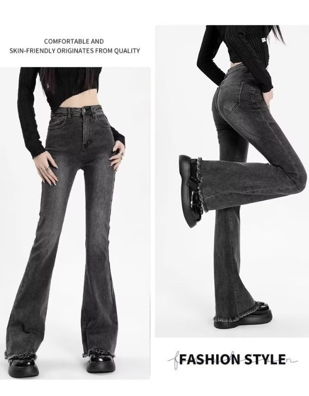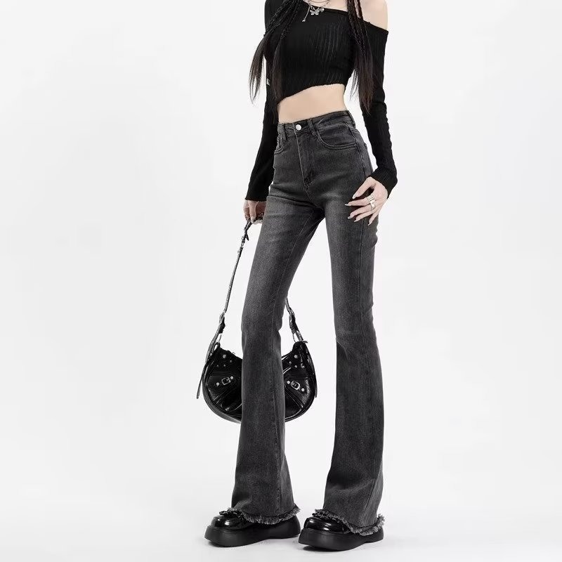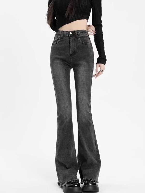 회색 마이크로 라르 청바지 여성의 가을 높은 허리 슬림 핏 말굽 바지 작은 스트레치 랙 트럼펫 바지 가을과 겨울스토어 가기