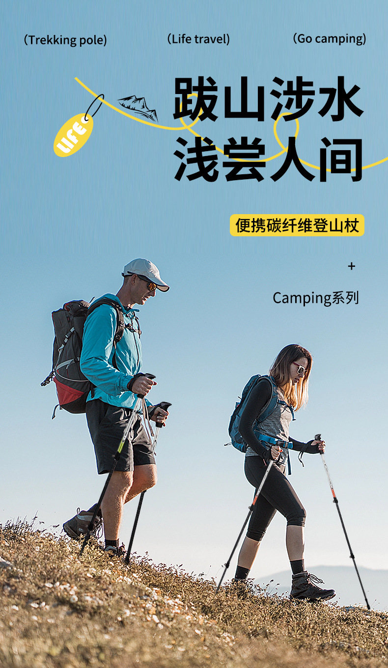 맞춤형 탄소 섬유 트레킹 스틱, 텔레스코픽 미끄럼 방지 스틱, 남성용 및 여성용 전문 등산 스틱, 도매 및 배송스토어 가기