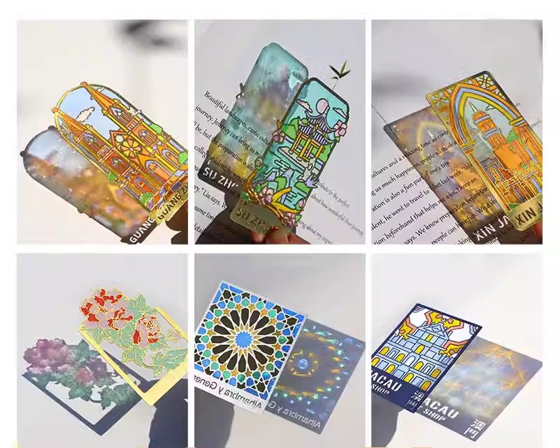 투명 북마크 냉장고 스티커 맞춤형 금속 중공 황동 스테인드 글라스 투명 유리 젤리 컬러 투명 페인트스토어 가기