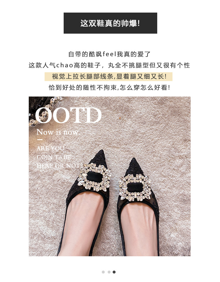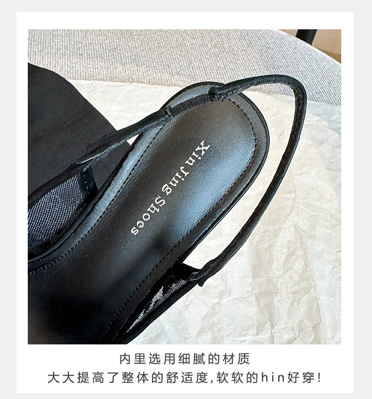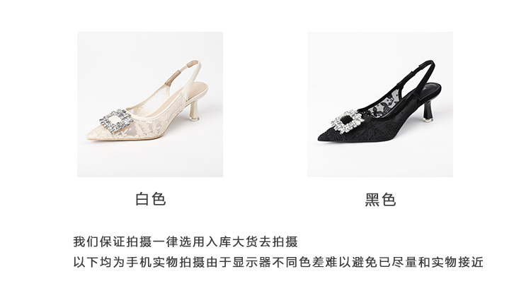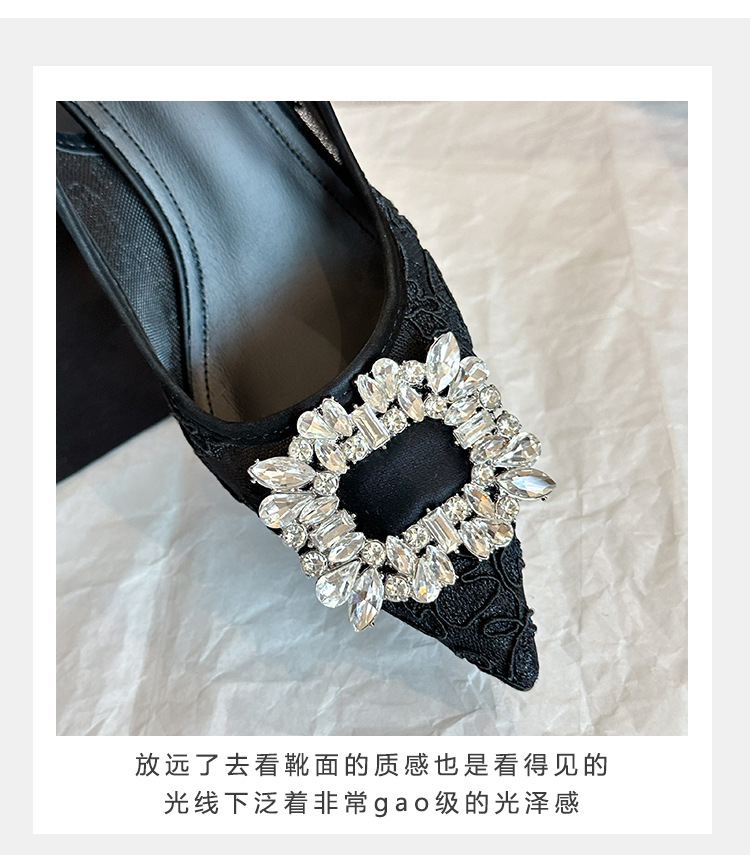 699-303 Baotou Mesh 신발 여성의 새로운 봄 광장 버클 라인스톤 포인팅 얕은 입 기질 후면 빈 하이힐 신발스토어 가기