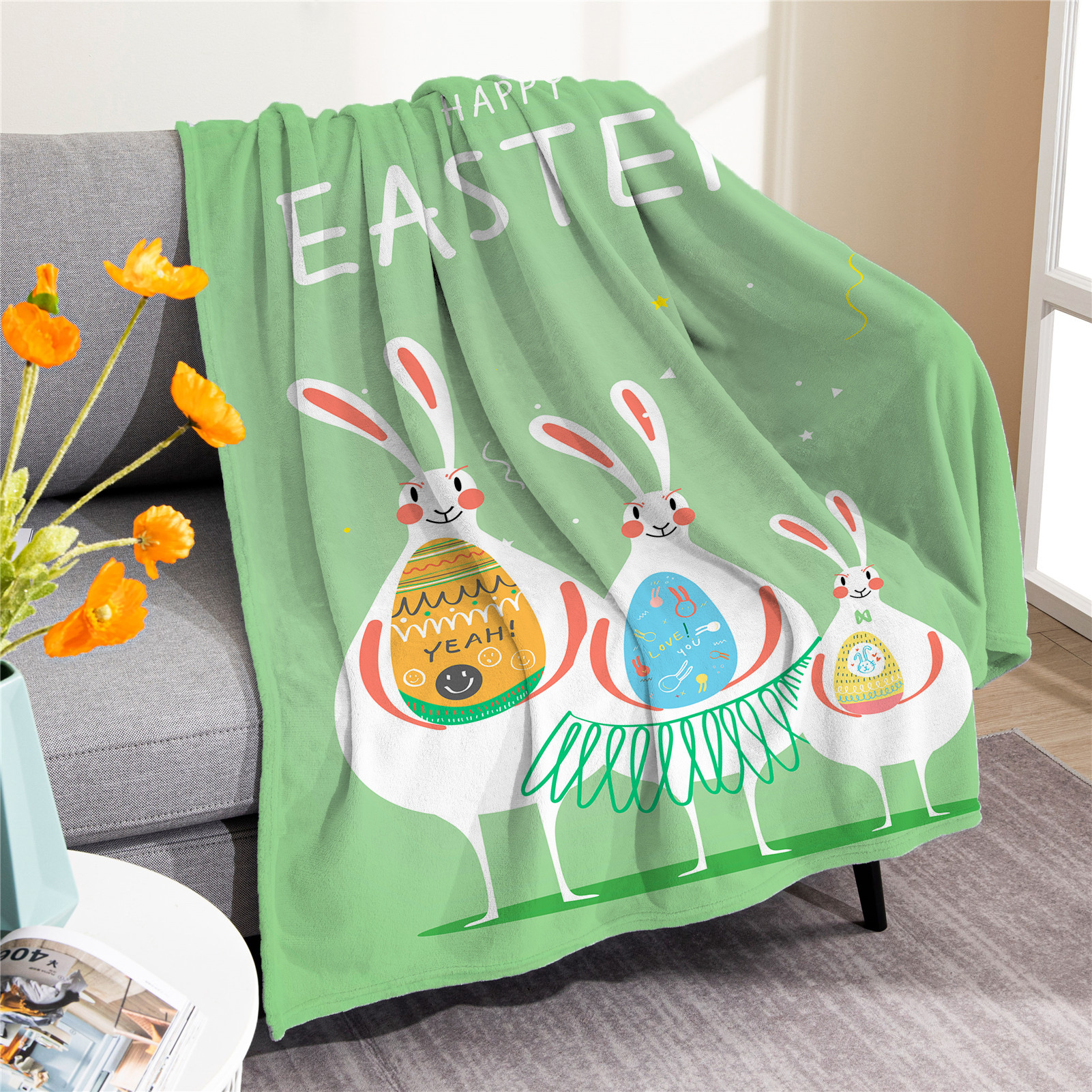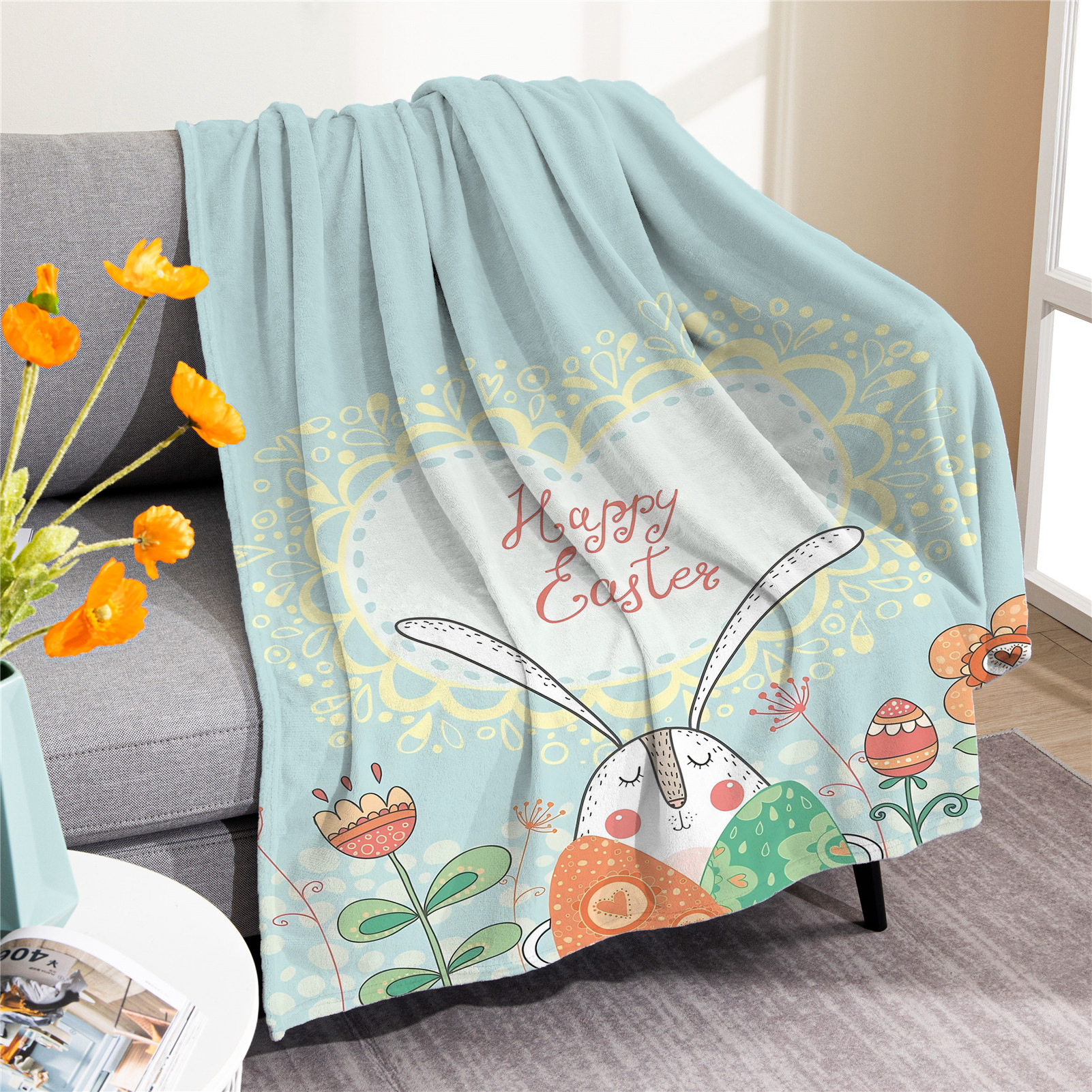 국경 간 부활절 담요 토끼 계란 담요 담요 담요 디지털 인쇄 에어컨 담요 낮잠 담요