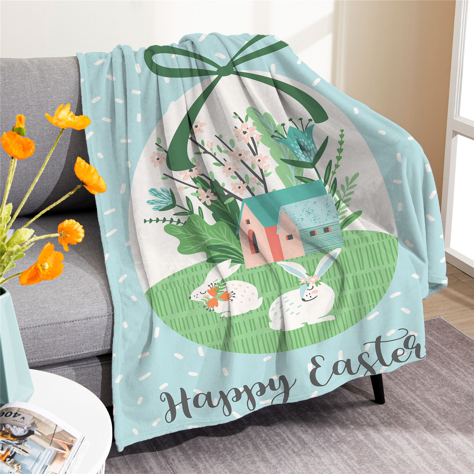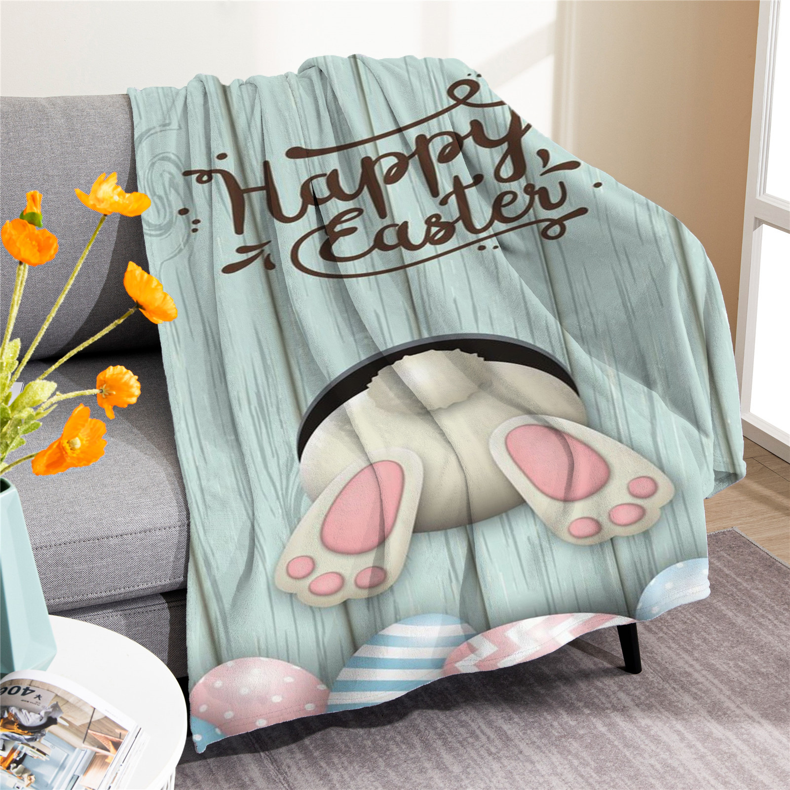 국경 간 부활절 담요 토끼 계란 담요 담요 담요 디지털 인쇄 에어컨 담요 낮잠 담요스토어 가기