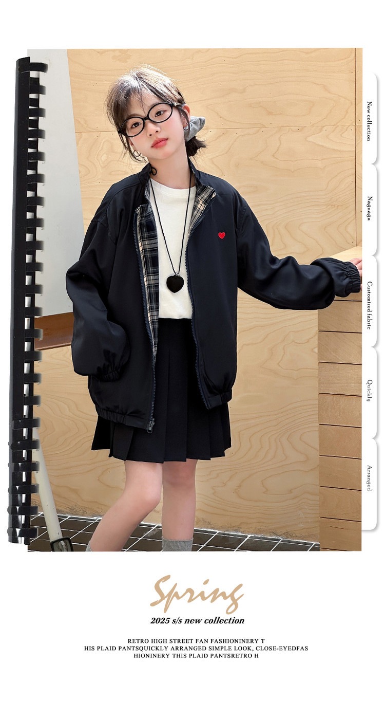 여아 체크무늬 코트 2025 신상 가을 패션 여아 한국 스타일 중대형 아동용 세련된 하트 양면 코트