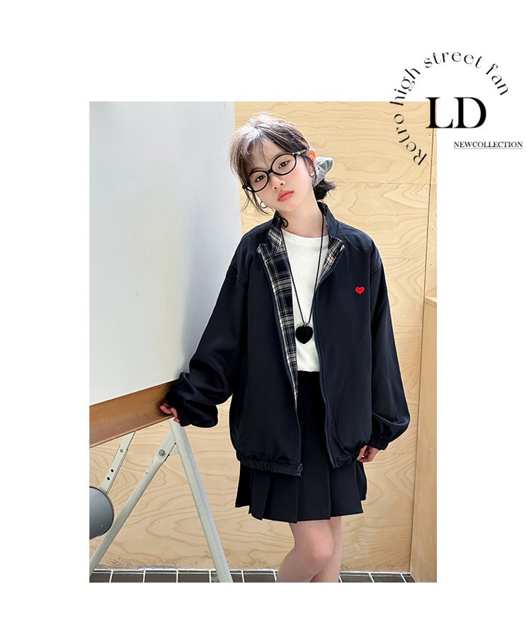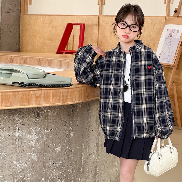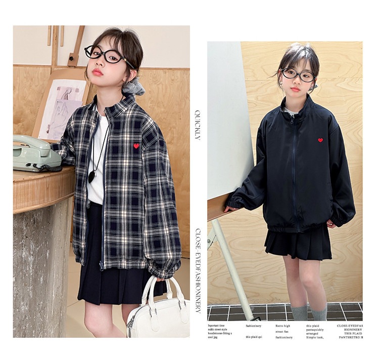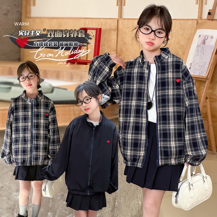 여아 체크무늬 코트 2025 신상 가을 패션 여아 한국 스타일 중대형 아동용 세련된 하트 양면 코트스토어 가기