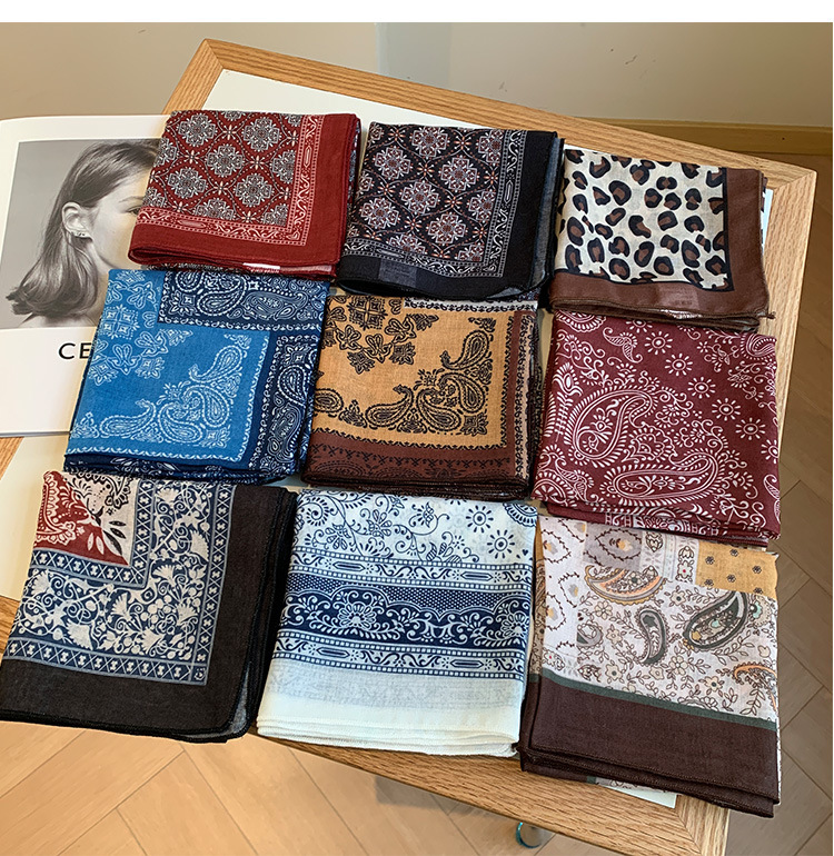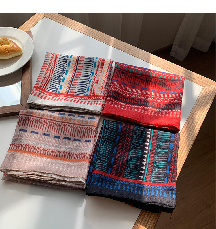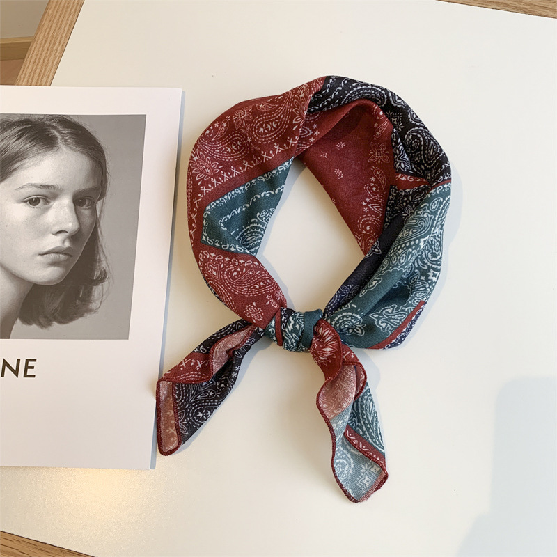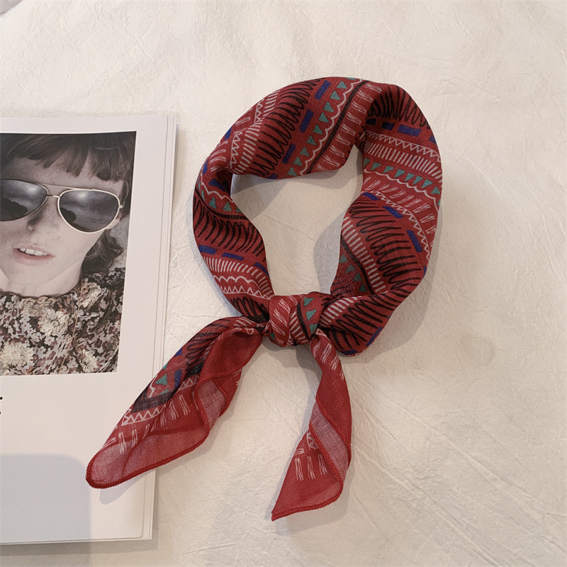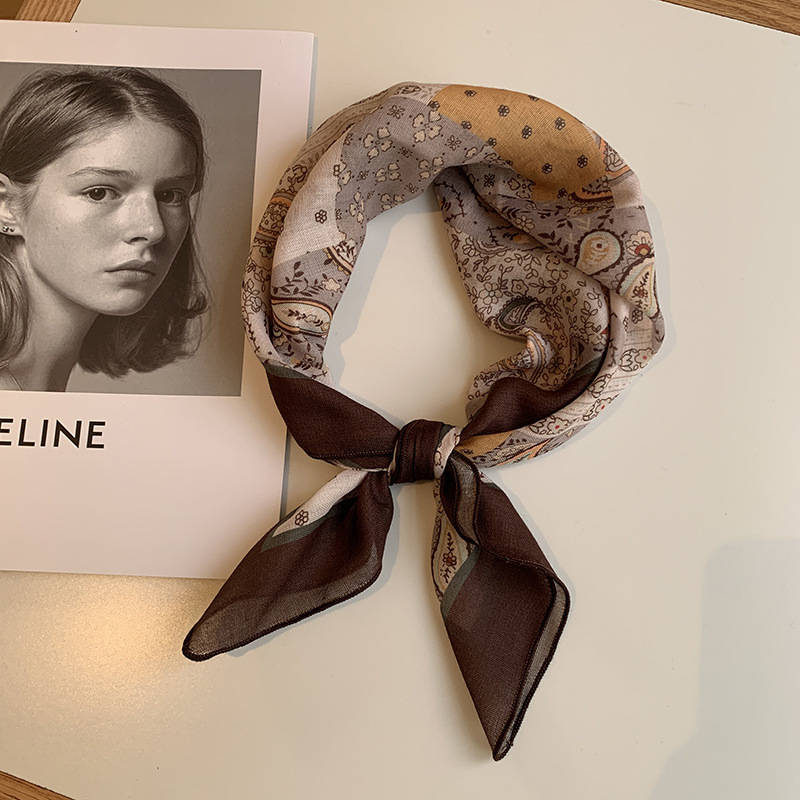 가을 Maillard 버건디 예술적 복고풍 작은 광장 장식 면화 린넨 통기성 허리 꽃 머리 벨트