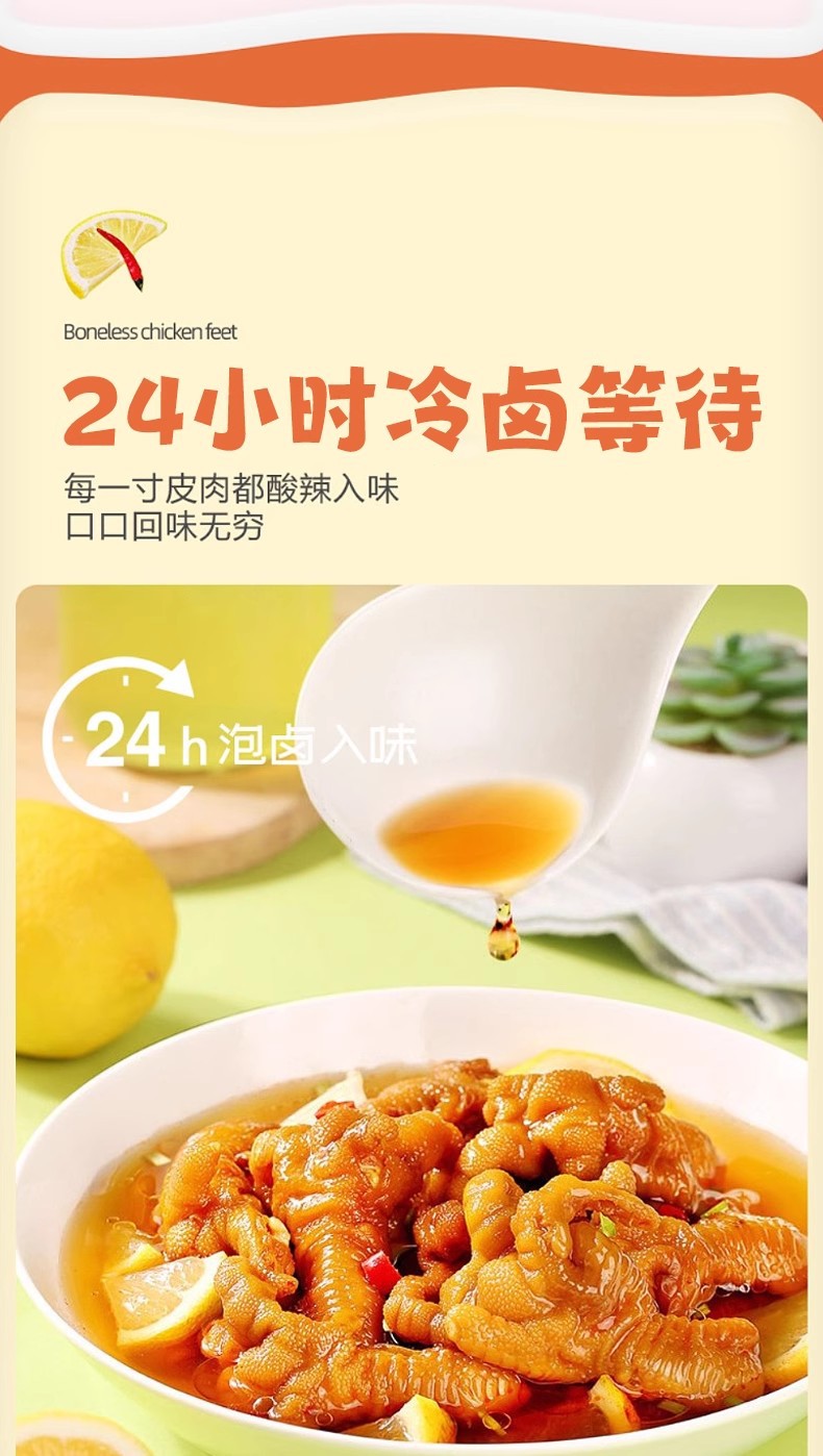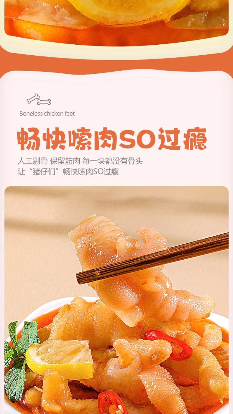 룰루 뼈없는 닭 발톱 뼈없는 닭 발톱 레몬 뼈없는 고기를 먹을 수있는 절인 고추 신맛 절인 요리 절인 닭 발톱스토어 가기