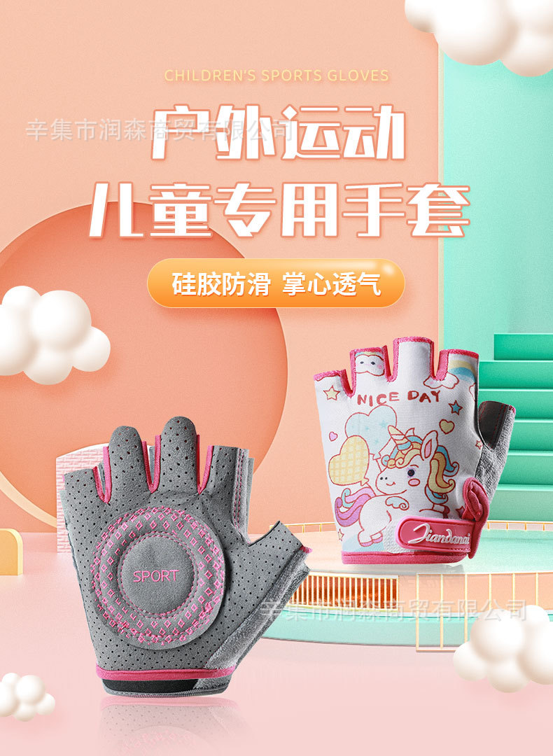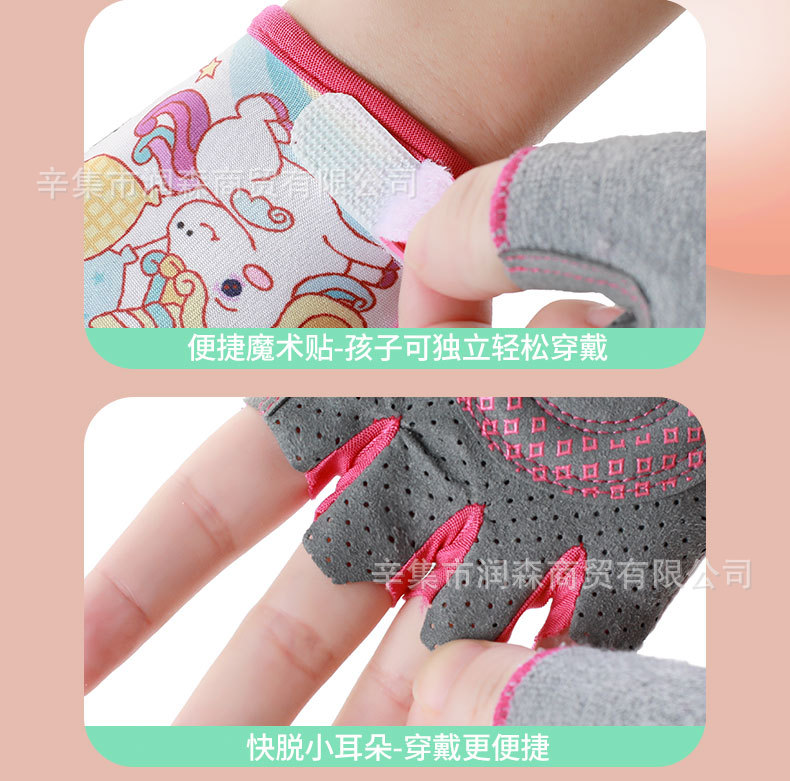 어린이용 장갑, 귀여운 만화 캐릭터 자전거용 손 보호 반손가락 장갑, 라이딩용 미끄럼 방지 통기성 피트니스 보호 롤러스케이트 장갑스토어 가기