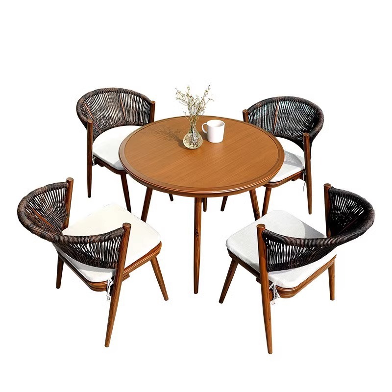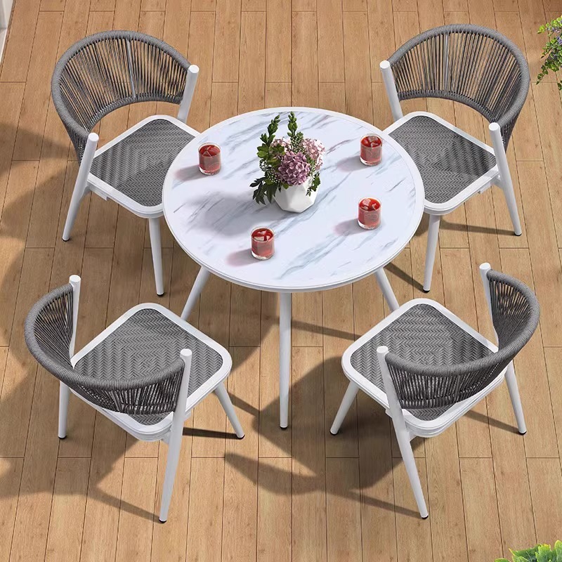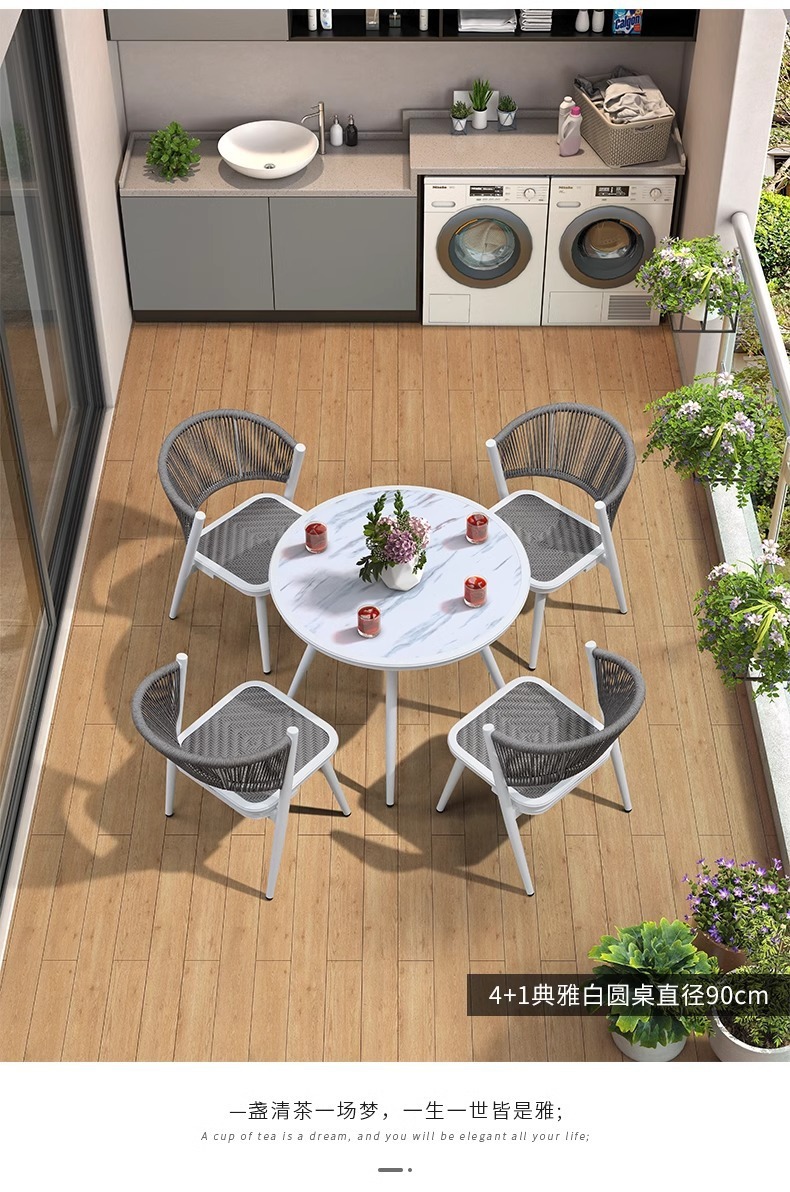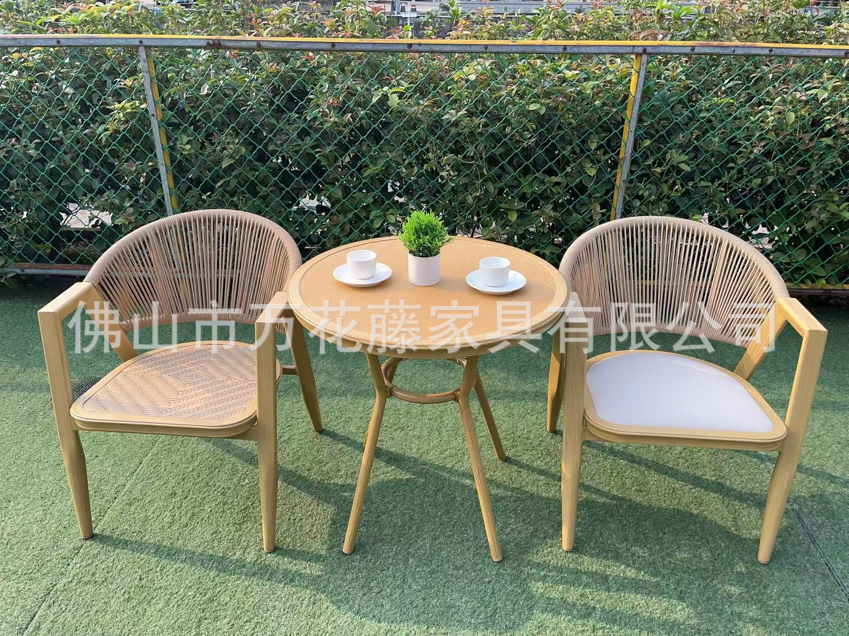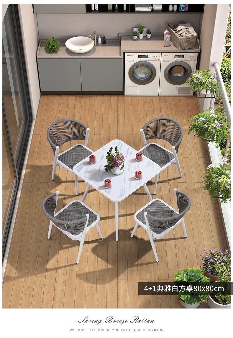 안뜰 야외 정원 식탁 및 의자 세트 야외 가구 야외 방수 선 스크린 발코니 등나무 금속 캐주얼 등나무 의자스토어 가기