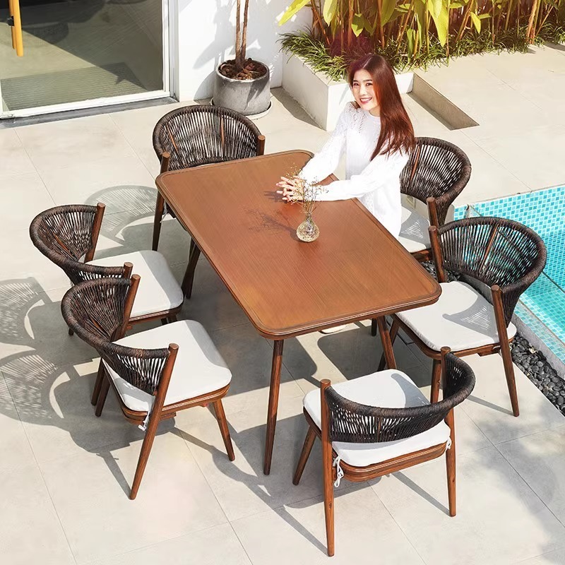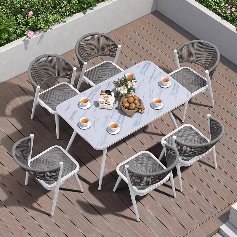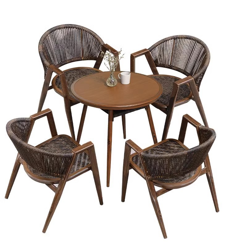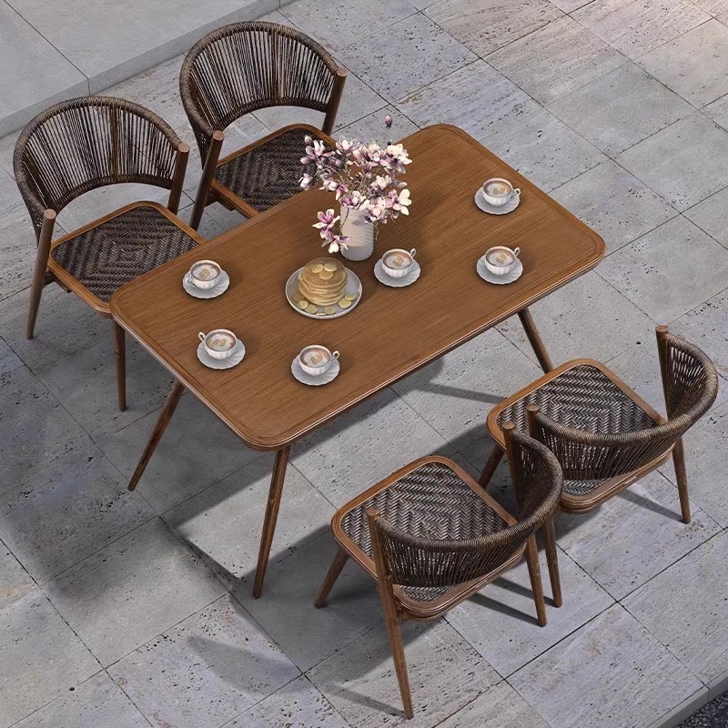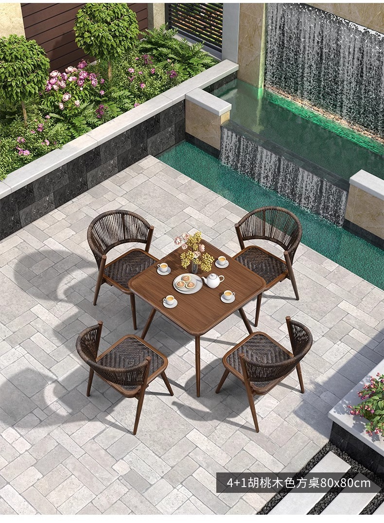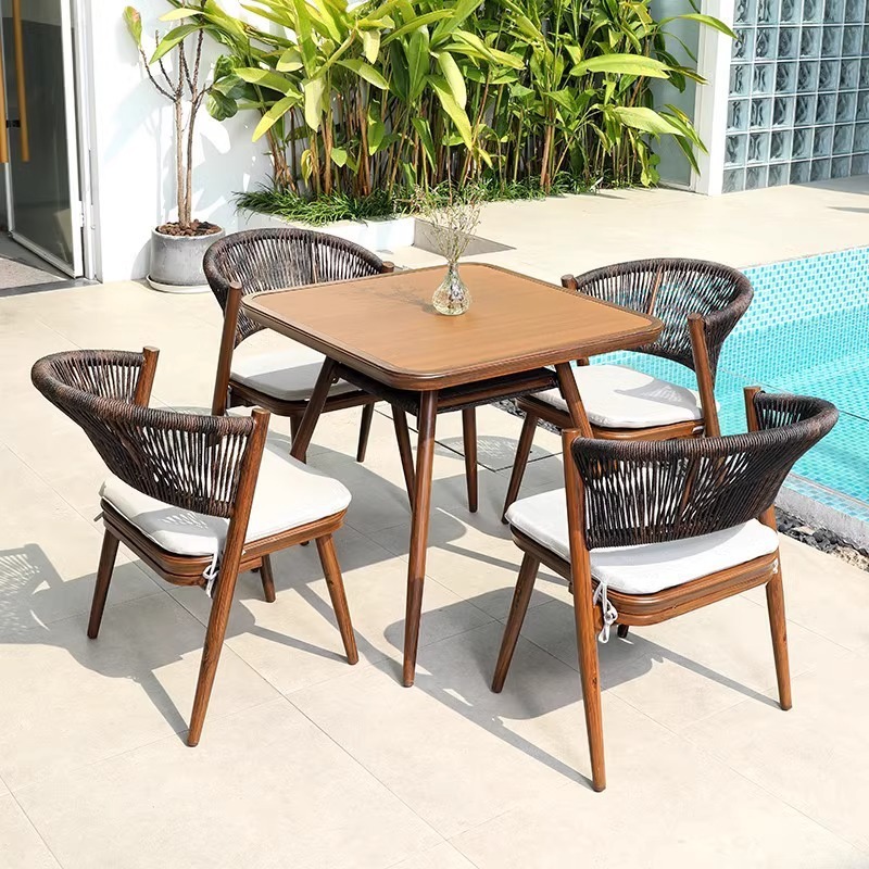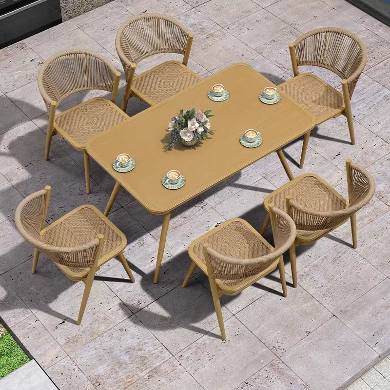 안뜰 야외 정원 식탁 및 의자 세트 야외 가구 야외 방수 선 스크린 발코니 등나무 금속 캐주얼 등나무 의자스토어 가기