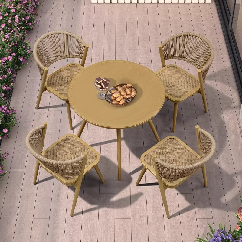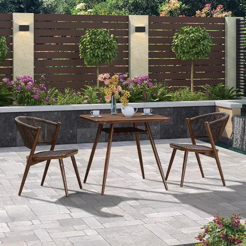 안뜰 야외 정원 식탁 및 의자 세트 야외 가구 야외 방수 선 스크린 발코니 등나무 금속 캐주얼 등나무 의자
