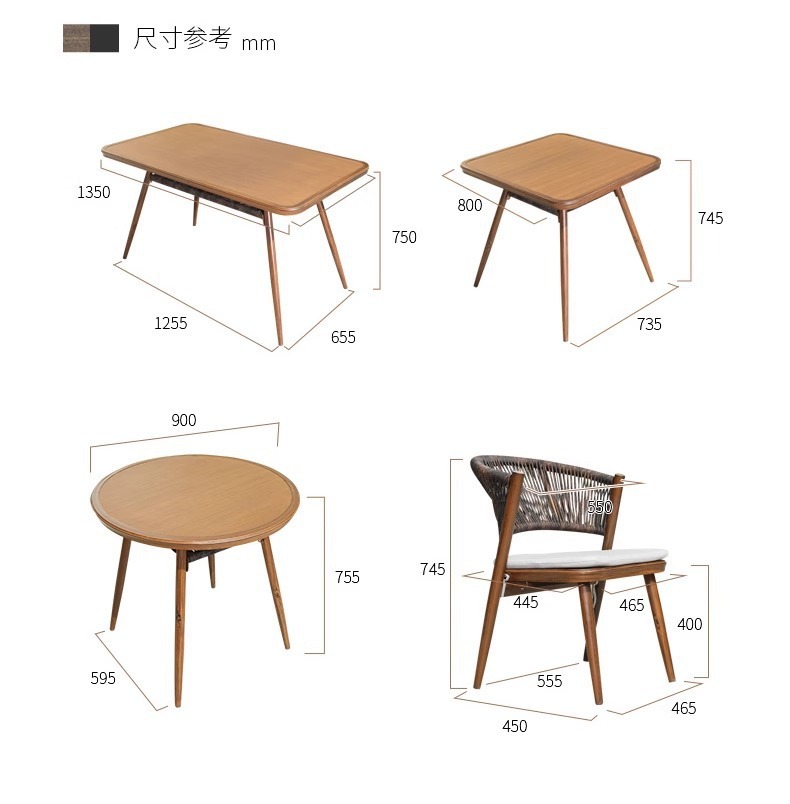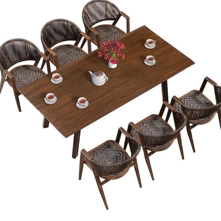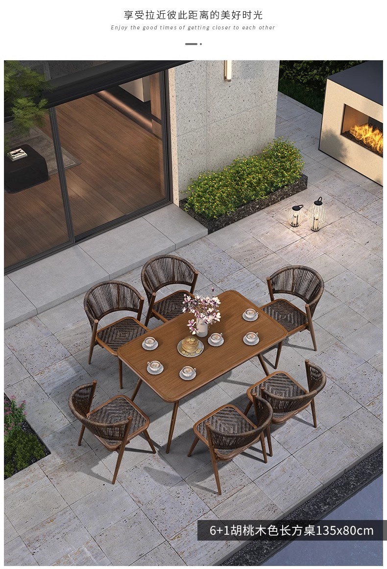 • 6 [업그레이드 의자] +1 [205x100 월넛 컬러 알루미늄 합금 롱 테이블]