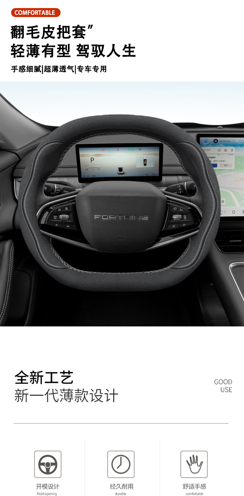 Dongfeng Fengxing Sea S7 특수 스티어링 휠 커버 가죽 커버 미끄럼 방지 모피 터닝 사계절 범용 보호 핸들 커버에 적합스토어 가기