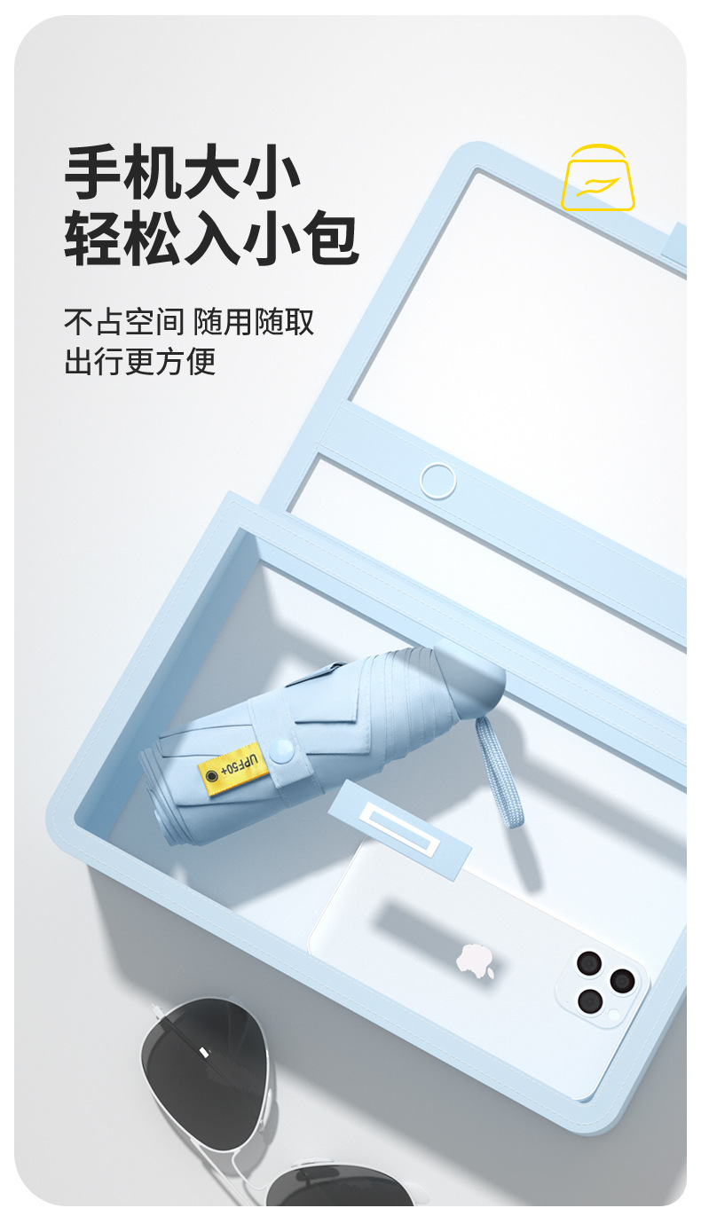 50% off 비 또는 빛 양산 우산, 소형 자외선 방지 미니 태양 우산, 휴대용 비닐 태양 보호 우산 맞춤형스토어 가기