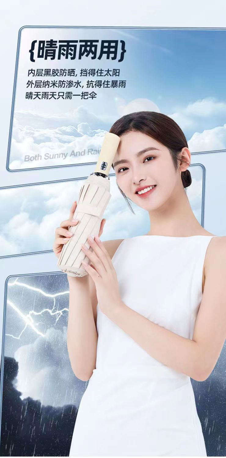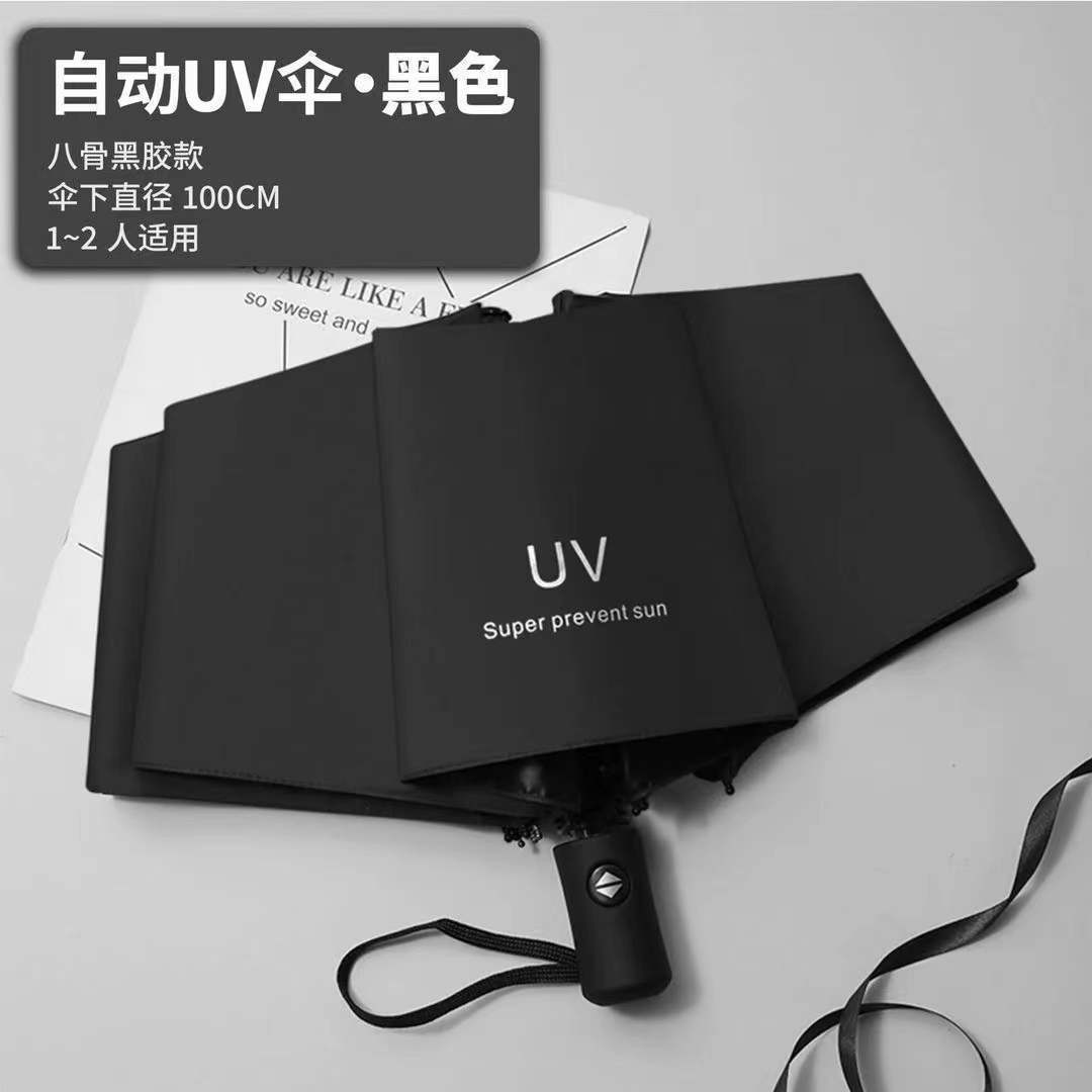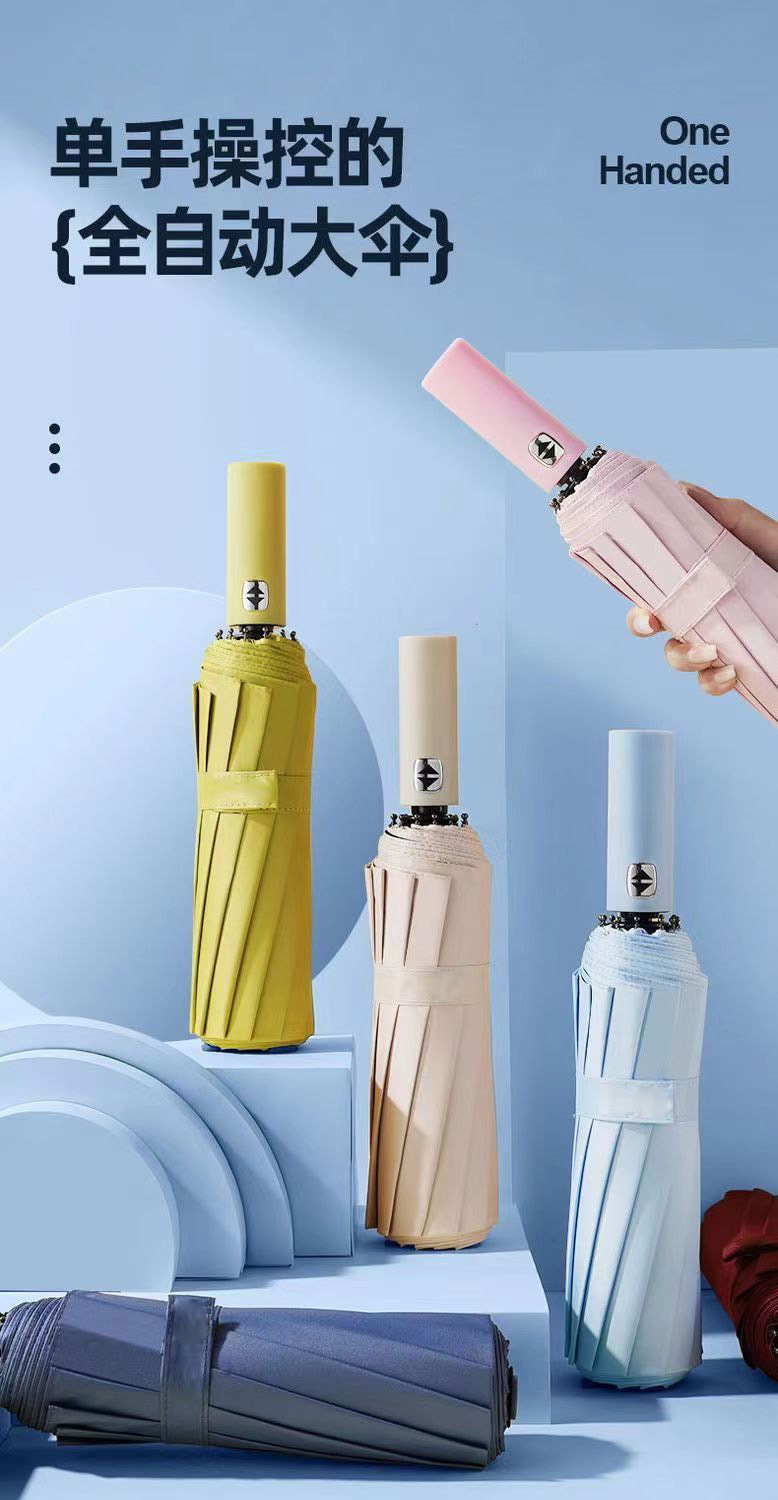 24-뼈 접히는 우산 고급 감각 완전 자동 검은 고무 햇빛 태양 우산 남자의 햇빛과 비 이중 사용 광고 우산스토어 가기