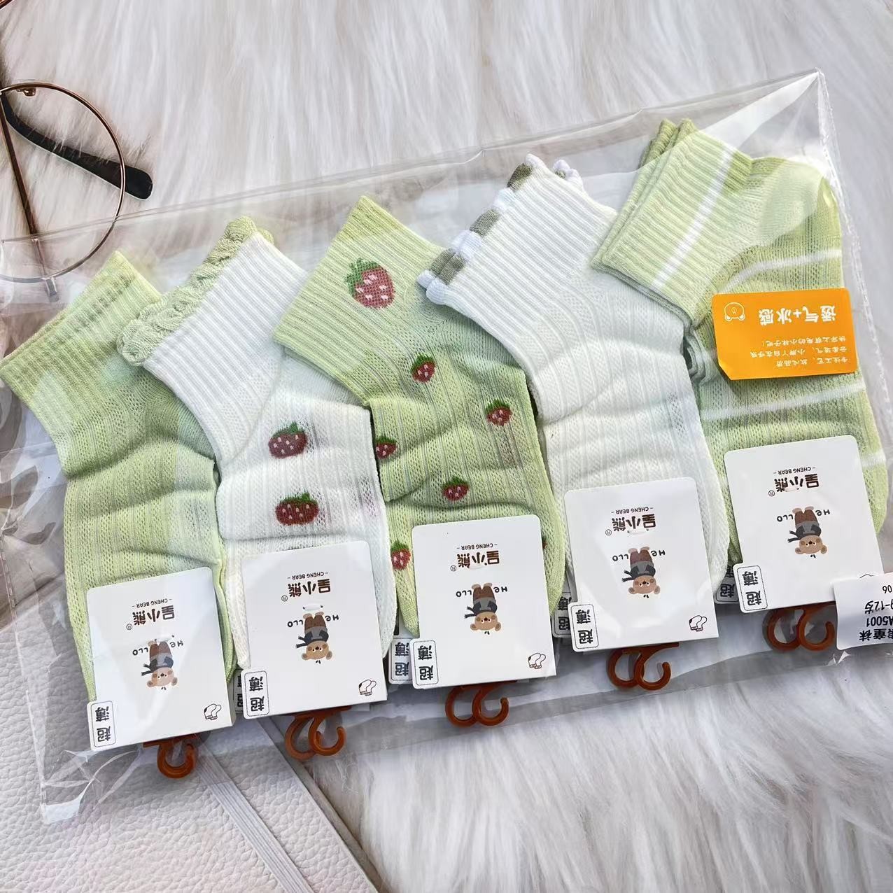곰 시리즈의 새로운 어린이용 중저 허리 트렌디 양말, 봄 여름용 코마 면 메쉬 만화 스포츠 땀 흡수 면 양말스토어 가기