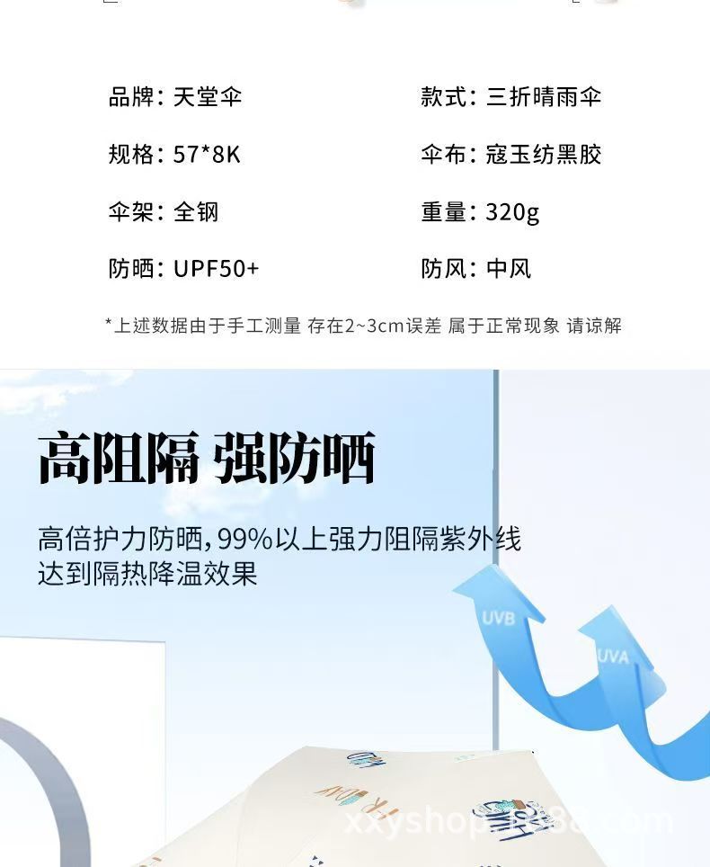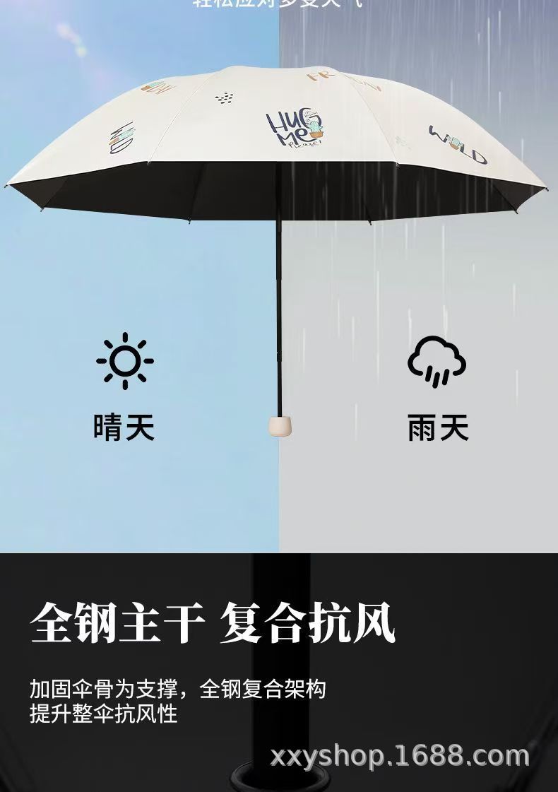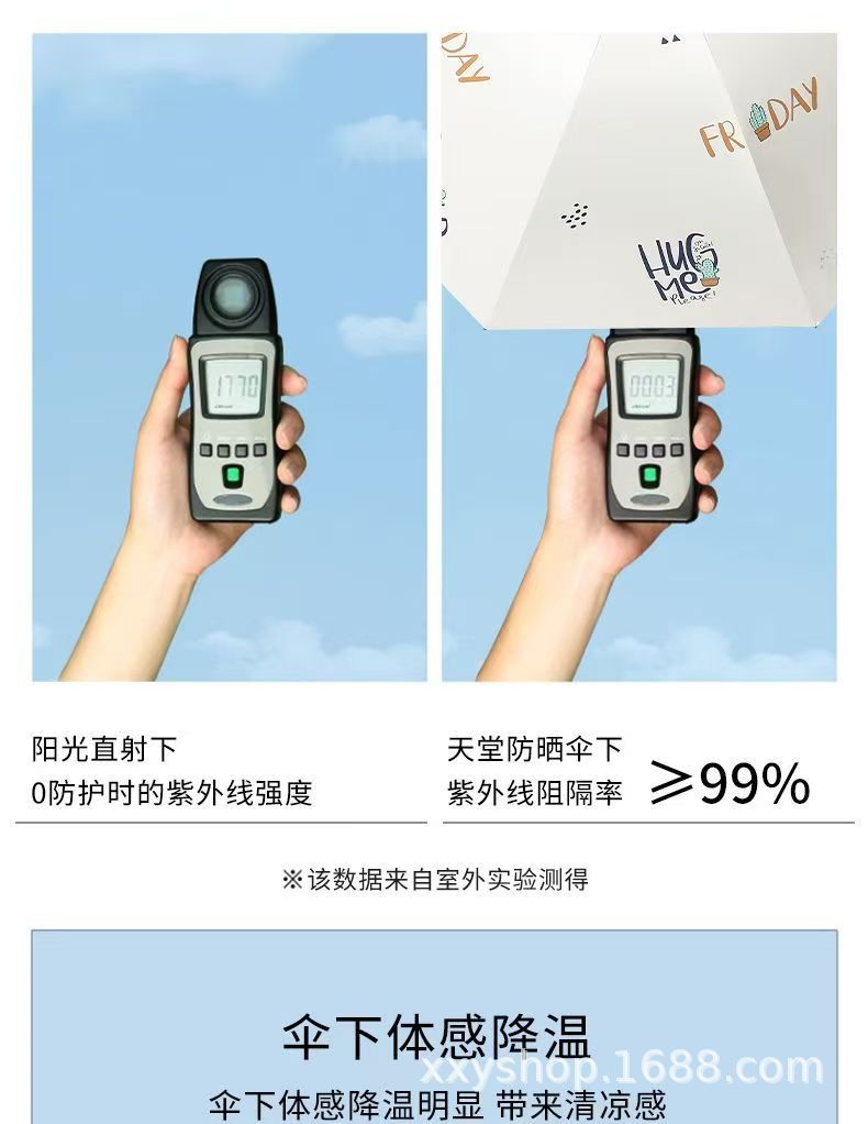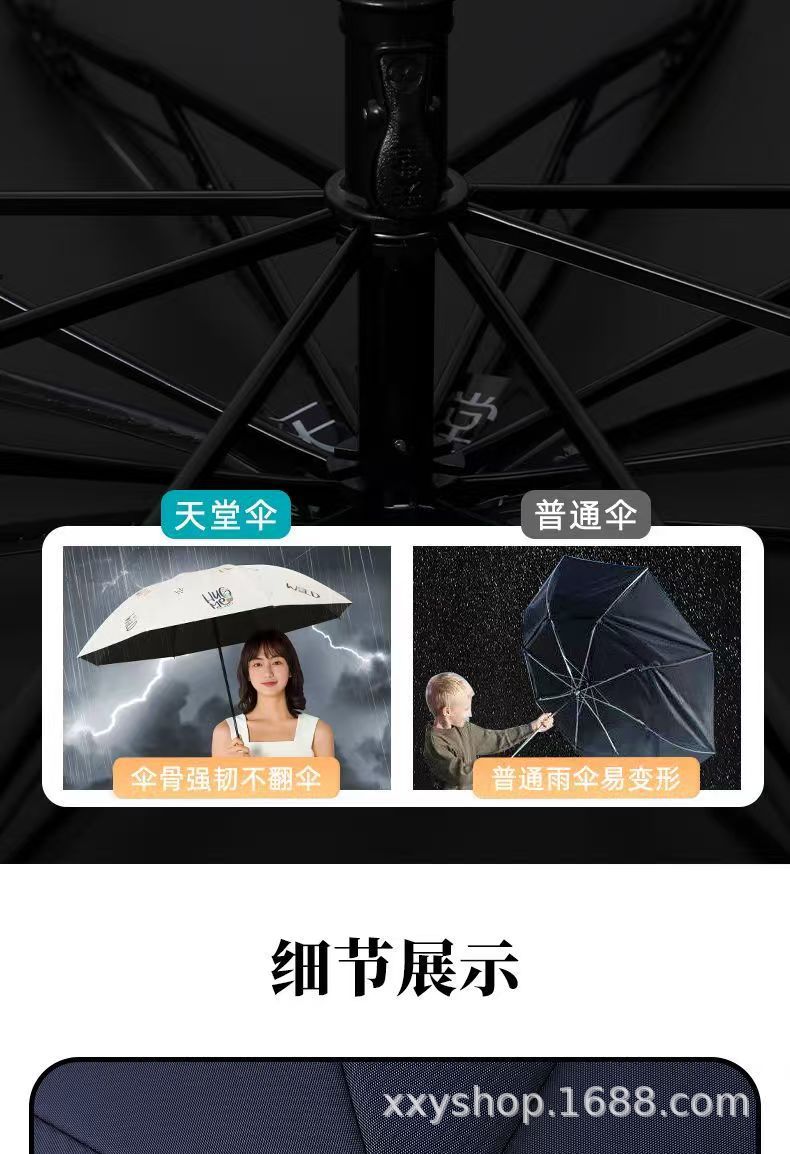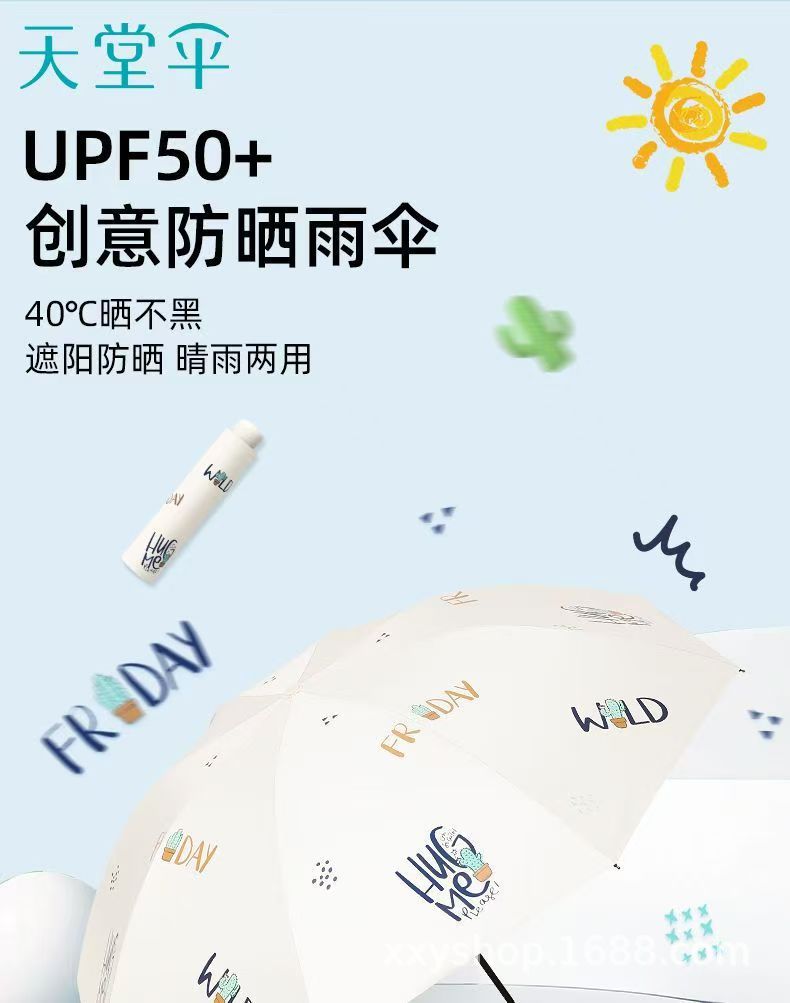 파라다이스 우산 도매 33933E 해피 금요일 새로운 태양 선 스크린 검은 고무 우산 3 배 우산 로고 인쇄스토어 가기