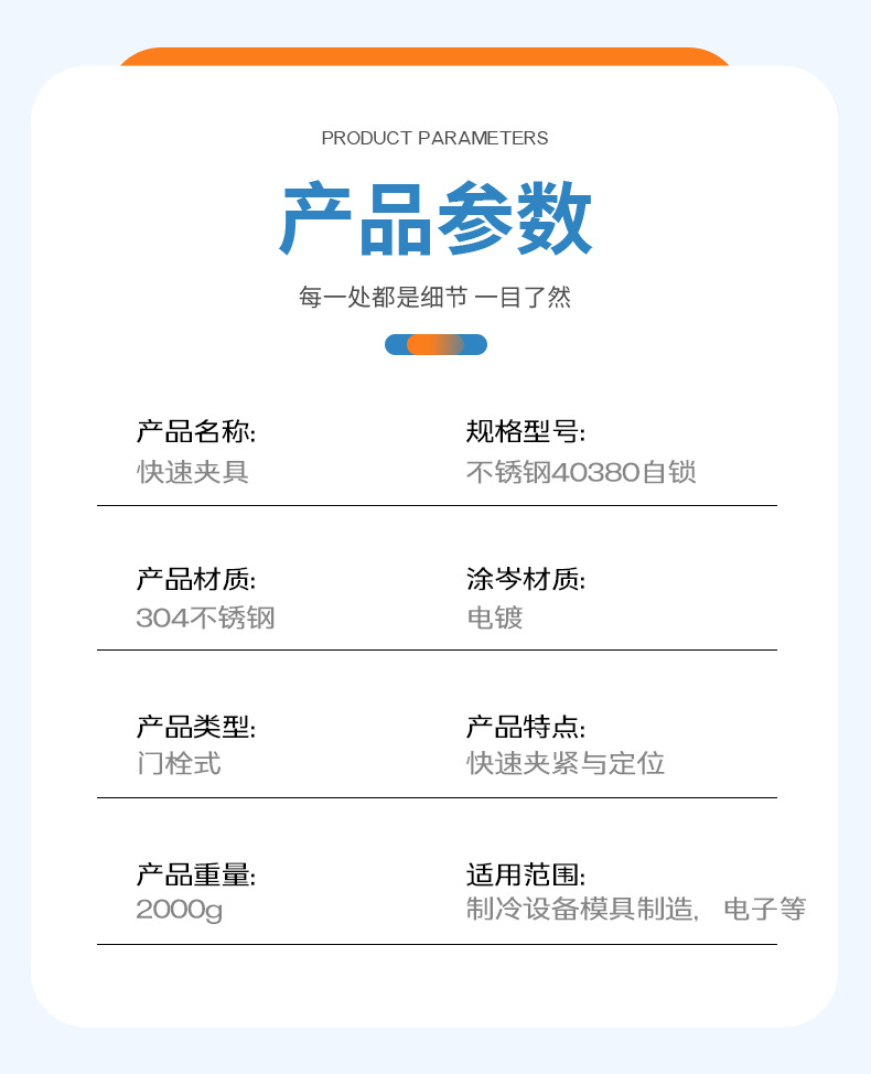 스테인리스 스틸 40380 자동 잠금식 퀵 클램프 도어 볼트형 304 스테인리스 스틸 퀵 클램프 고정기 퀵 클램프스토어 가기