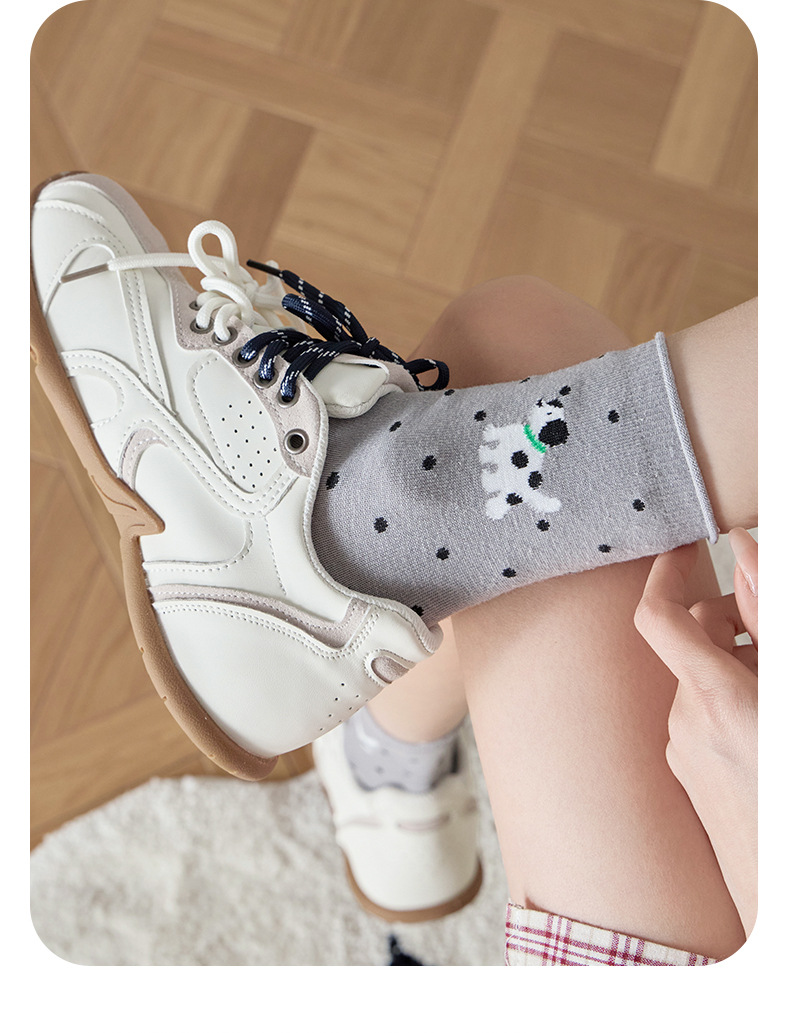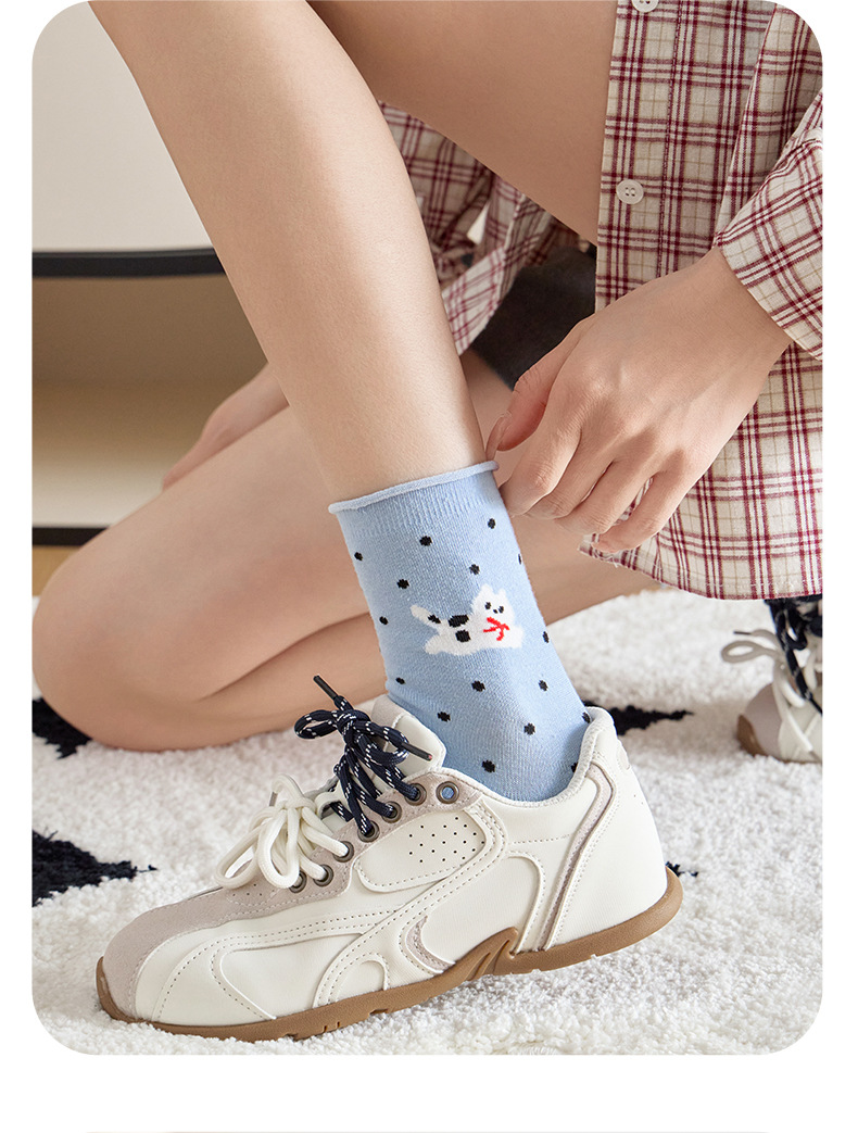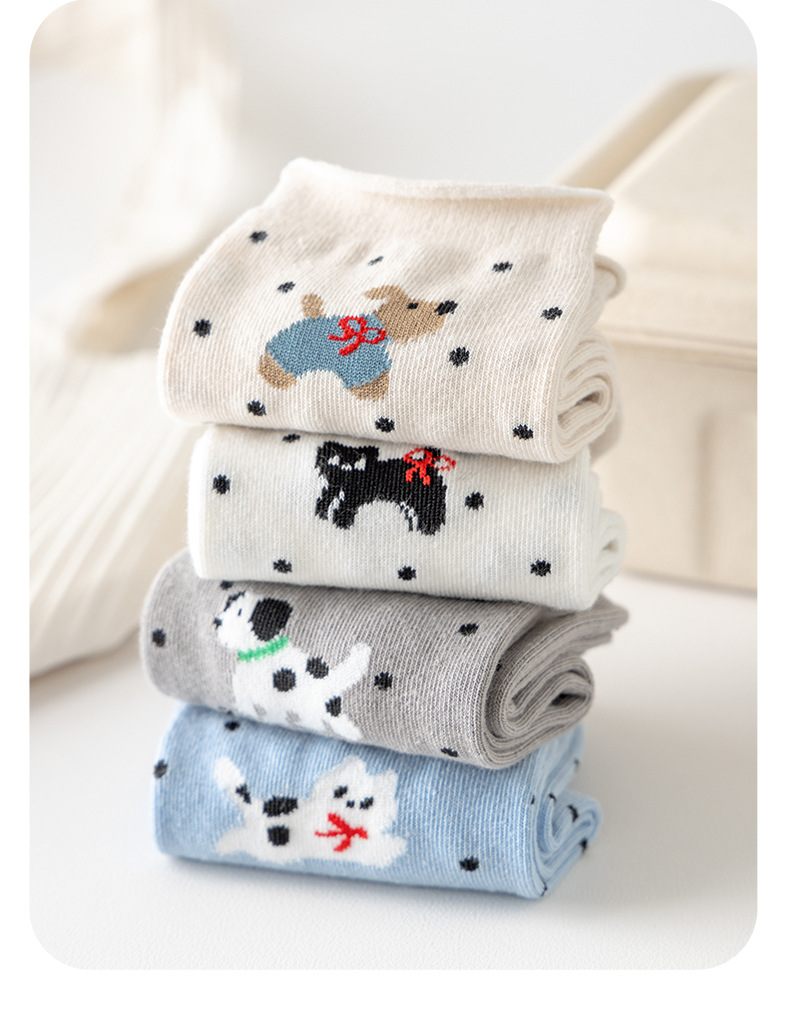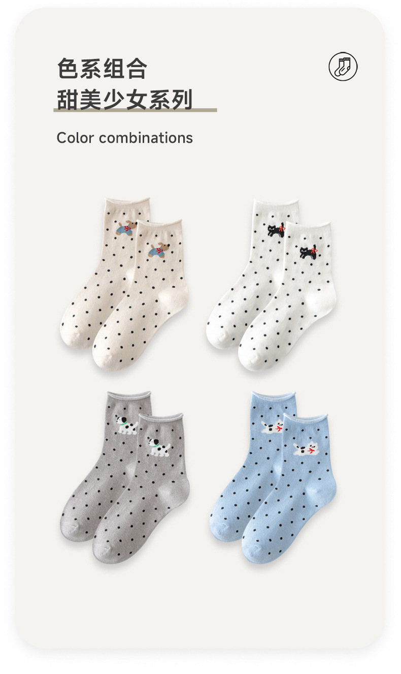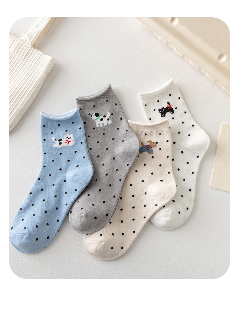 봄과 여름 양말 여성 미드 튜브 양말 통기성 모든 경기 컬 느슨한 문 양말 폴카 만화 강아지 귀여운 미드 튜브 양말스토어 가기