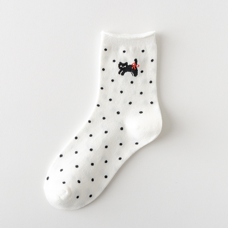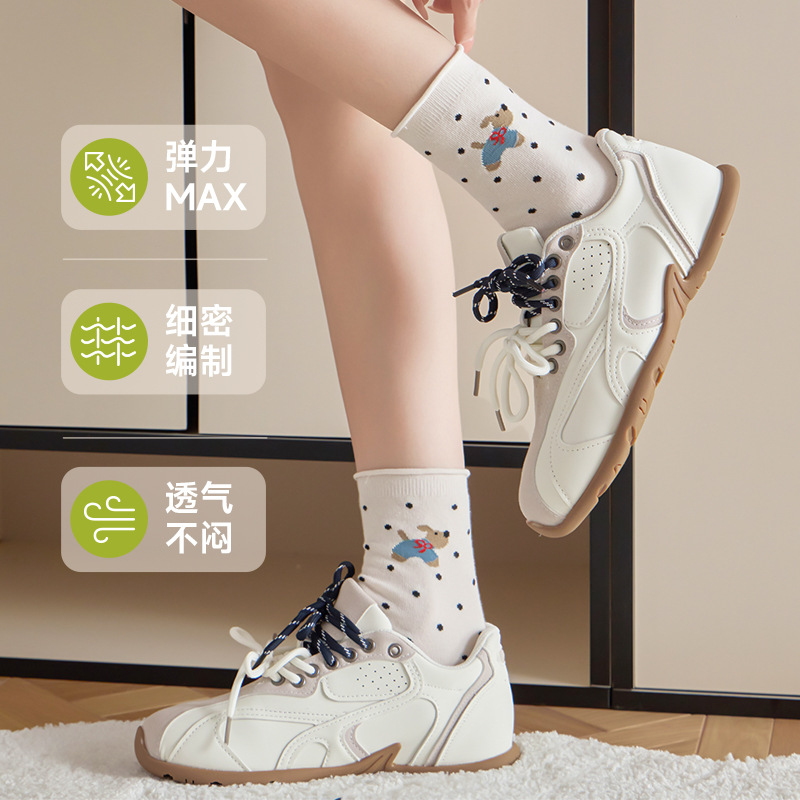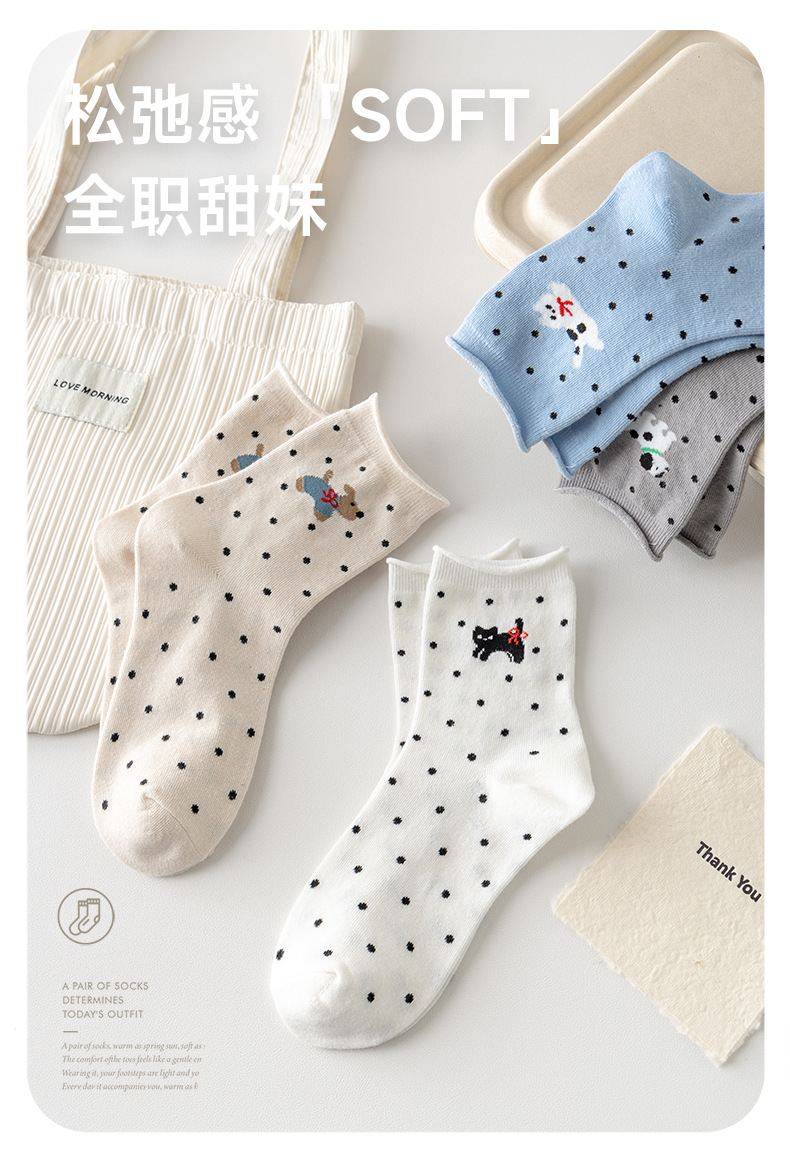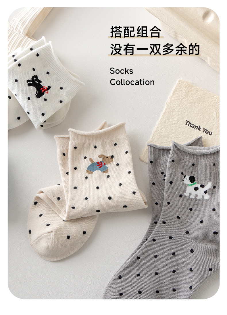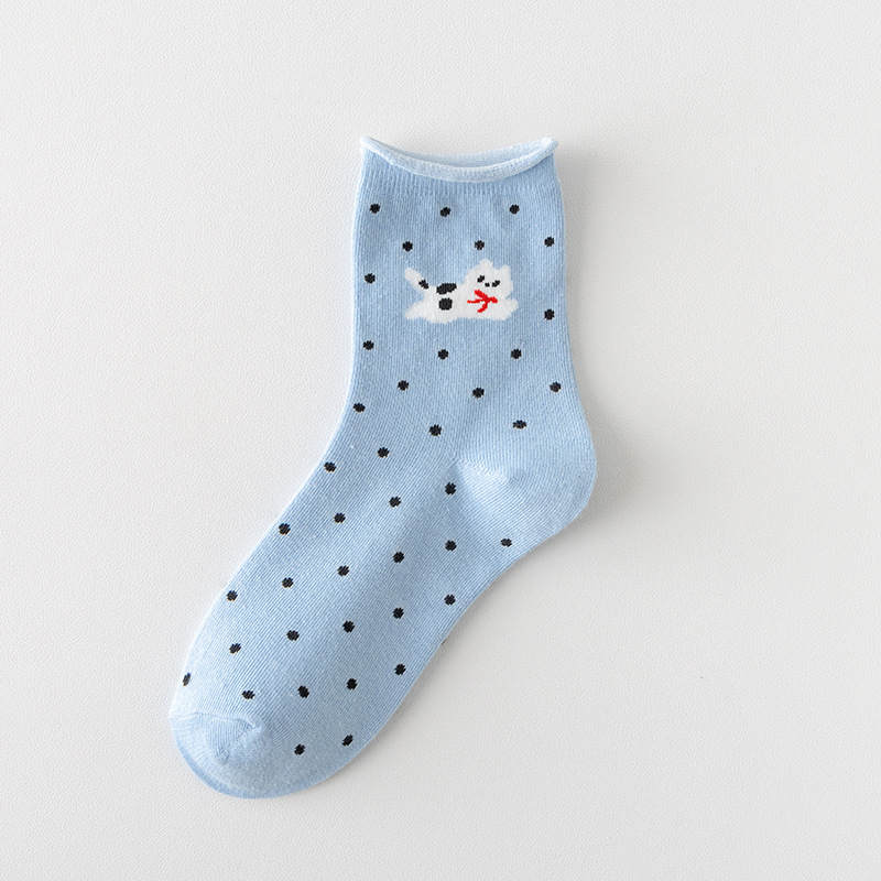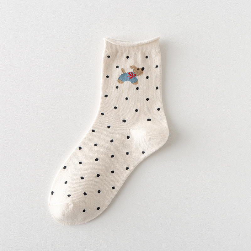 봄과 여름 양말 여성 미드 튜브 양말 통기성 모든 경기 컬 느슨한 문 양말 폴카 만화 강아지 귀여운 미드 튜브 양말