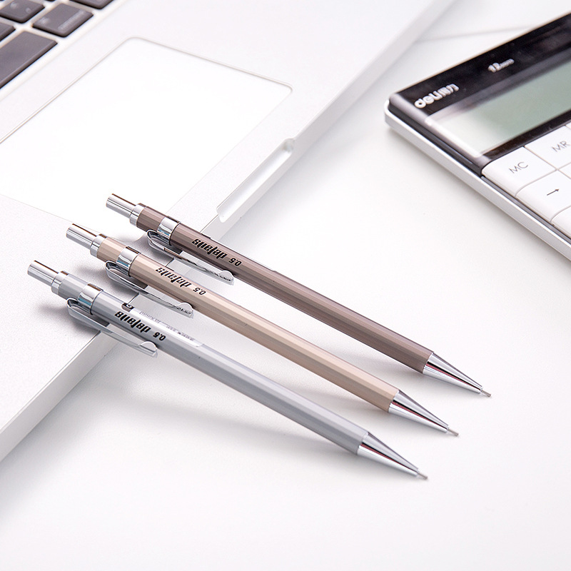 델리 금속 샤프 펜슬 학생 쓰기 시험 자동 펜 0.5 리드 샤프 펜 문구 용품 도매스토어 가기