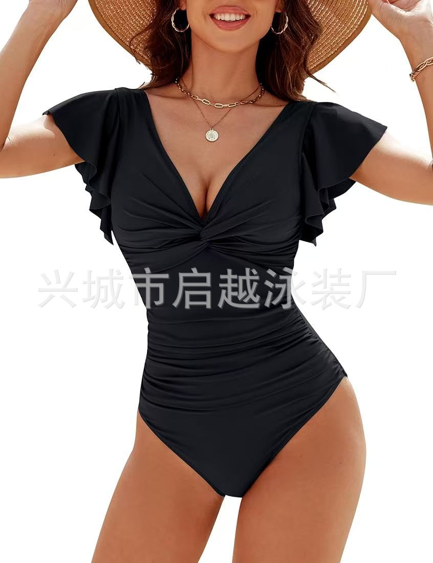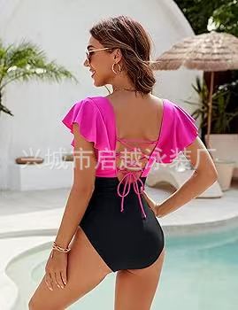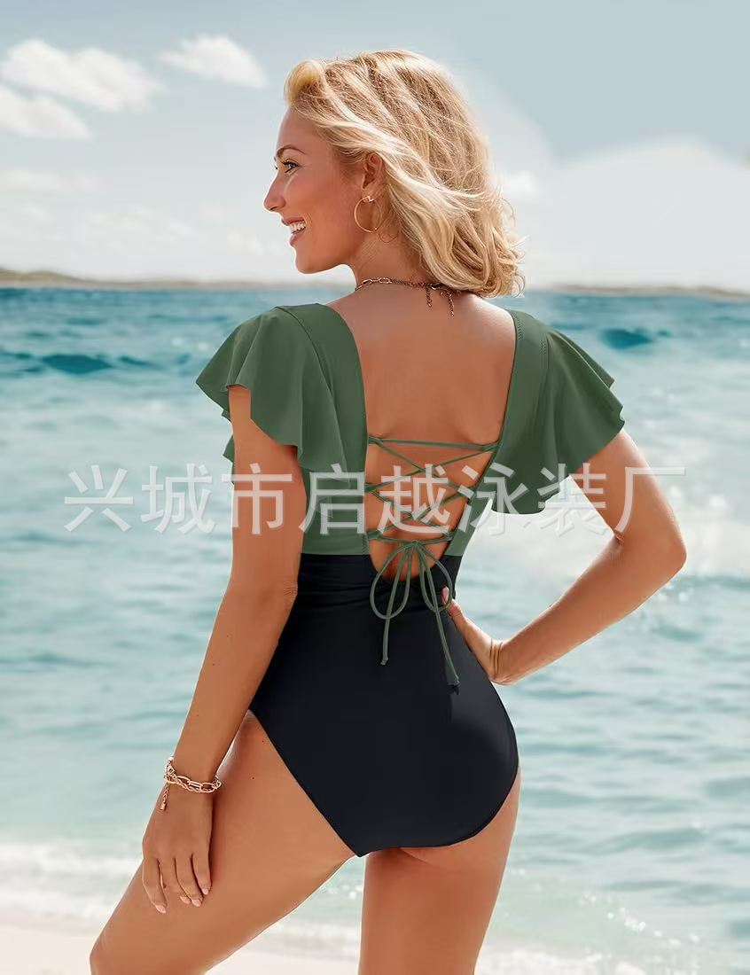 새로운 아마존 유럽과 미국의 국경 간 원피스 수영복이 배꼽으로 덮인 얇은 나일론 수영복 여성 활