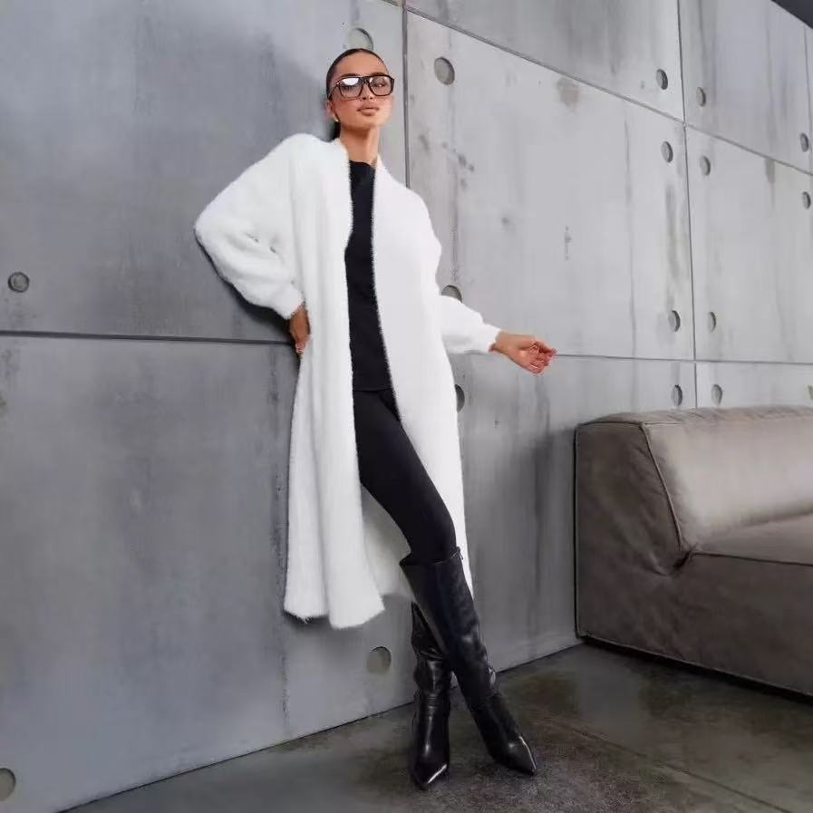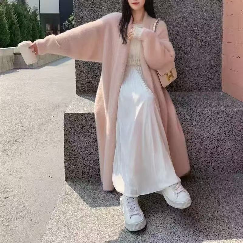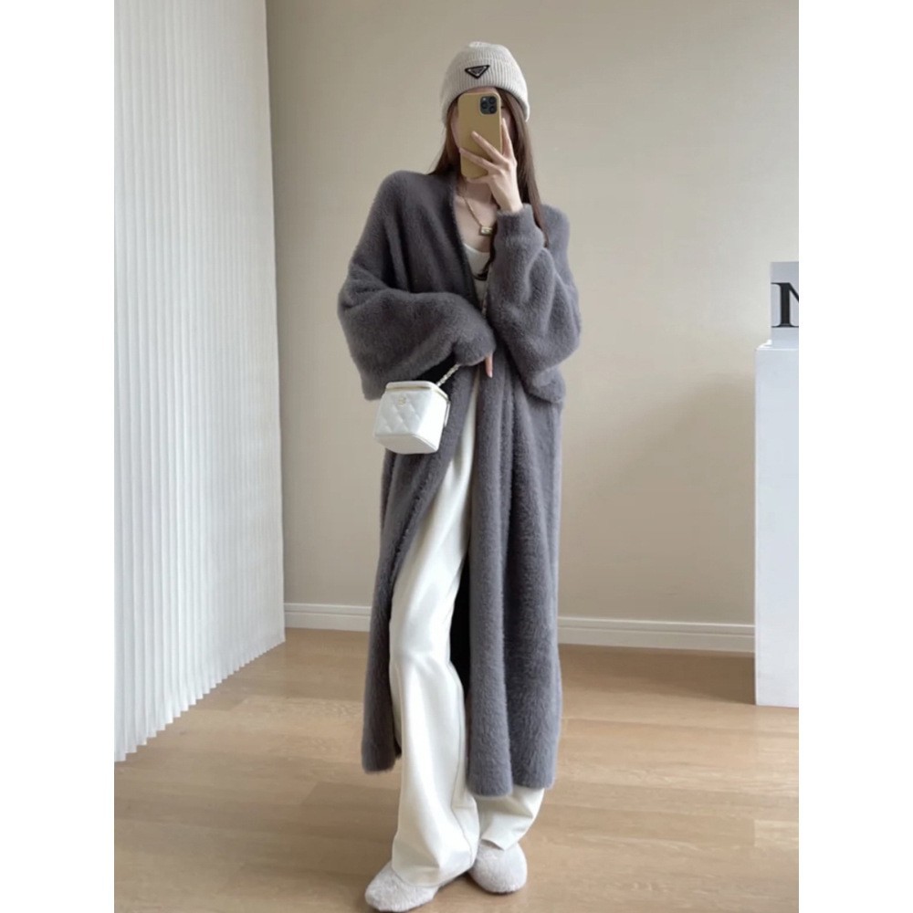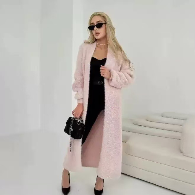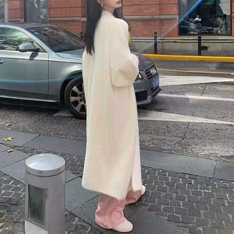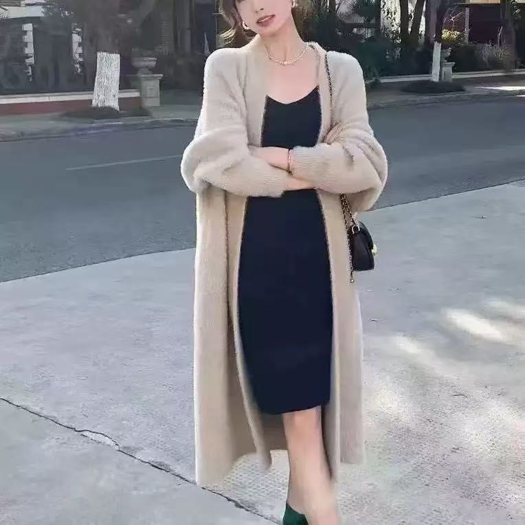 여성용 가을 겨울 신상 크로스보더 니트 가디건 스웨터, 루즈한 대형 사이즈, 슬림하고 나른한 스타일, 모조 밍크 벨벳 롱 코트스토어 가기