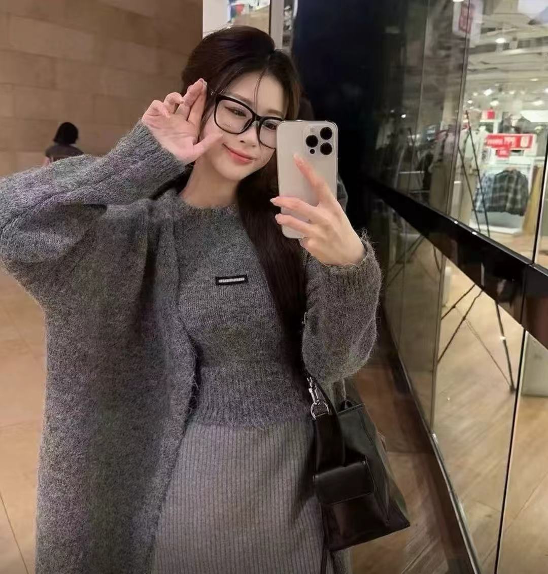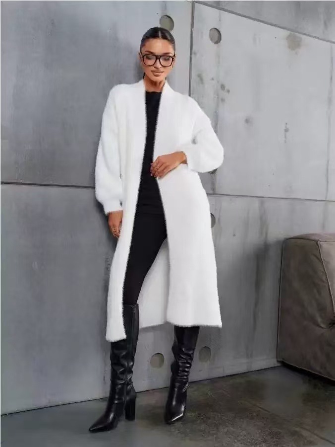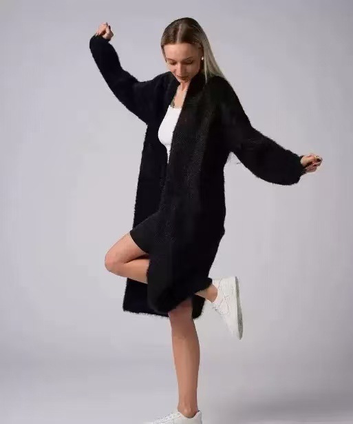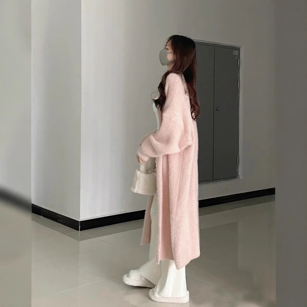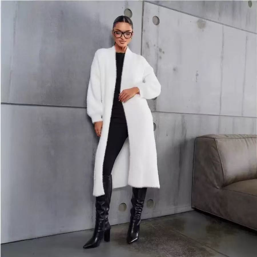 여성용 가을 겨울 신상 크로스보더 니트 가디건 스웨터, 루즈한 대형 사이즈, 슬림하고 나른한 스타일, 모조 밍크 벨벳 롱 코트스토어 가기