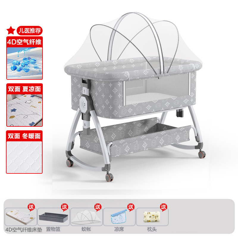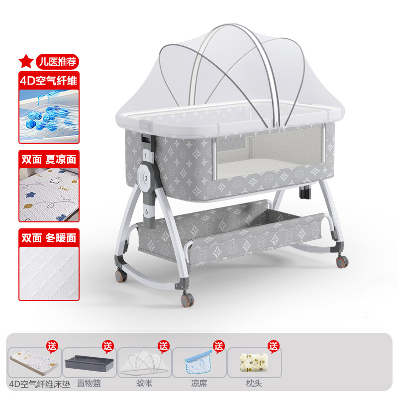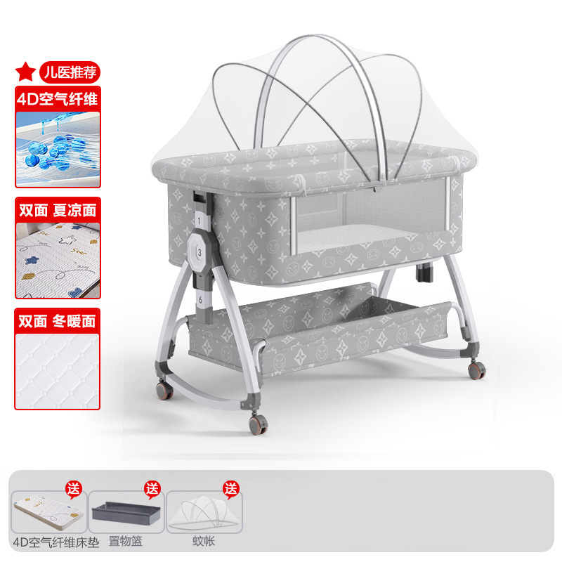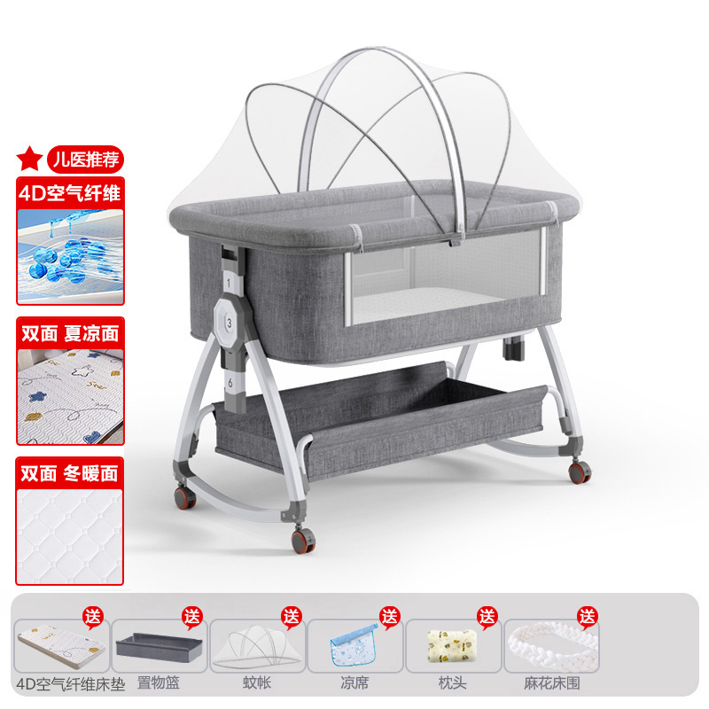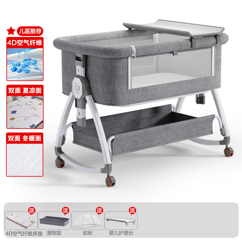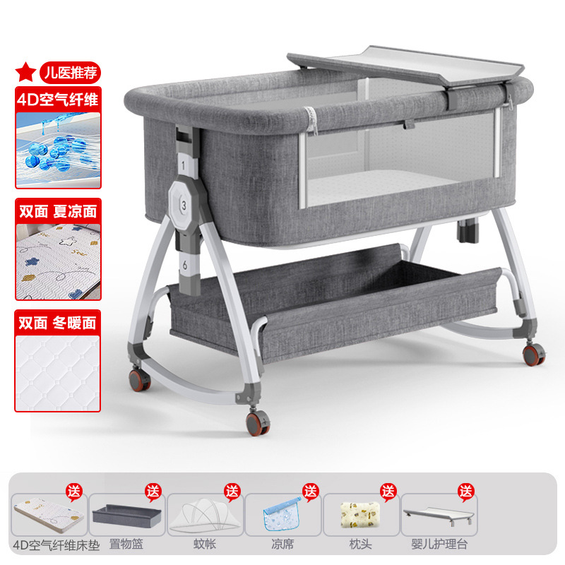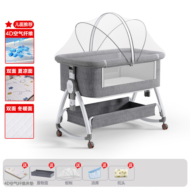 • 고탄소강 전용 클라우드 그레이 [사계절 양면 4D 에어파이버 매트리스] 수납바구니 + 모기장 + 매트 + 베개 + 기저귀교환대