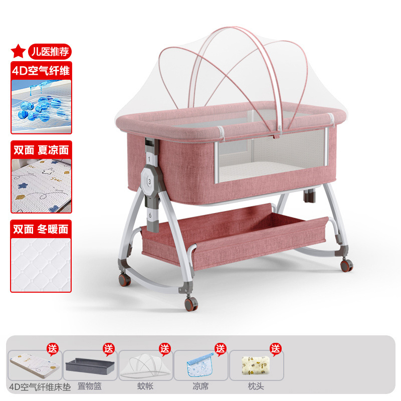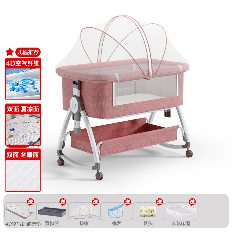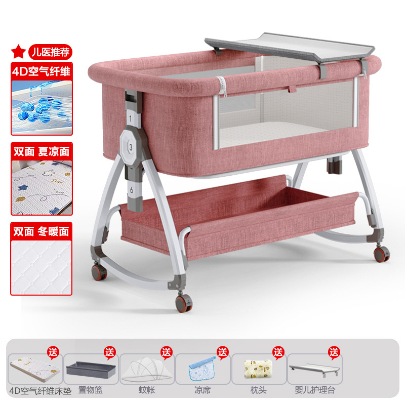 • 고탄소강 드림빌딩 피치 파우더 [사계절 양면 4D 에어파이버 매트리스] 수납바구니 + 모기장 + 매트 + 베개 + 기저귀교환대 + 트위스트 침대 서라운드