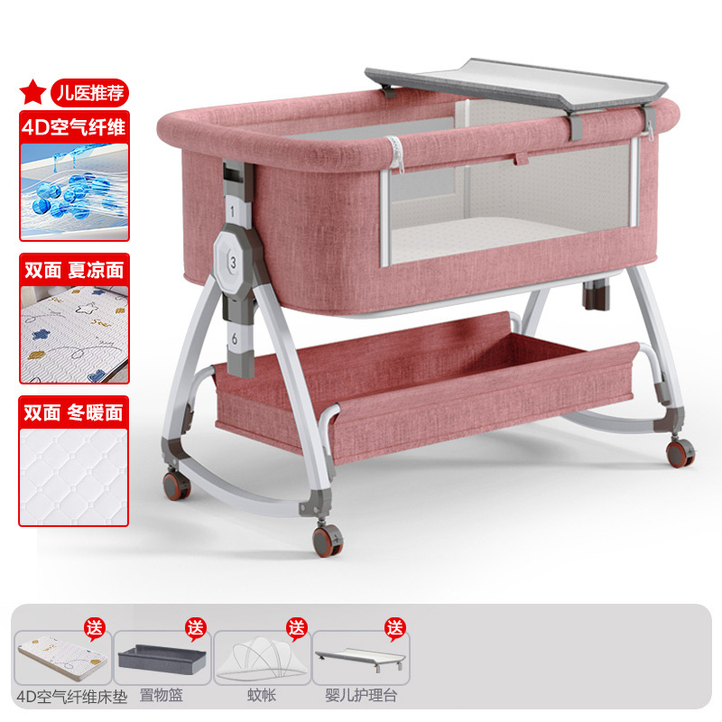 • 고탄소강 - 기저귀교환대 스타일 피치핑크 [사계절 양면 4D 에어파이버 매트리스] 수납바구니 + 모기장 + 기저귀교환대