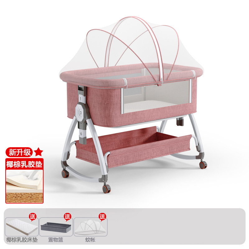 • 고탄소강 드림빌딩 피치 파우더 [코코넛 브라운 라텍스 매트] 수납바구니 + 모기장 + 매트 + 베개 + 기저귀 교환대 + 트위스트 침대 서라운드