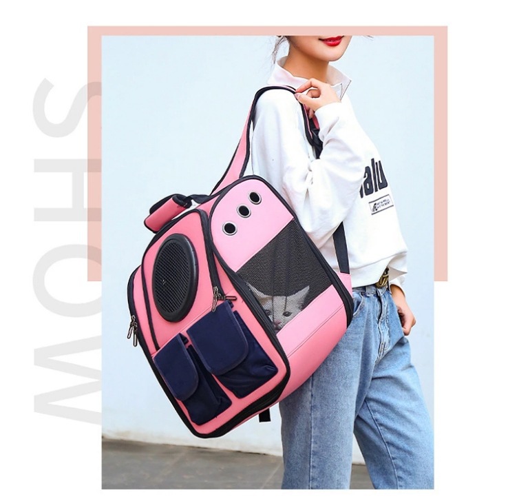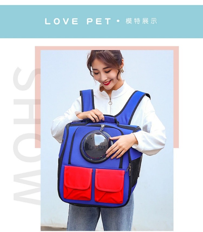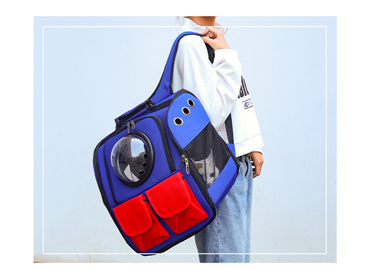 고양이 가방 애완 동물 가방 새로운 패션 대비 컬러 더블 포켓 캐주얼 웨스턴 스타일 투명 공간 캡슐 개 배낭