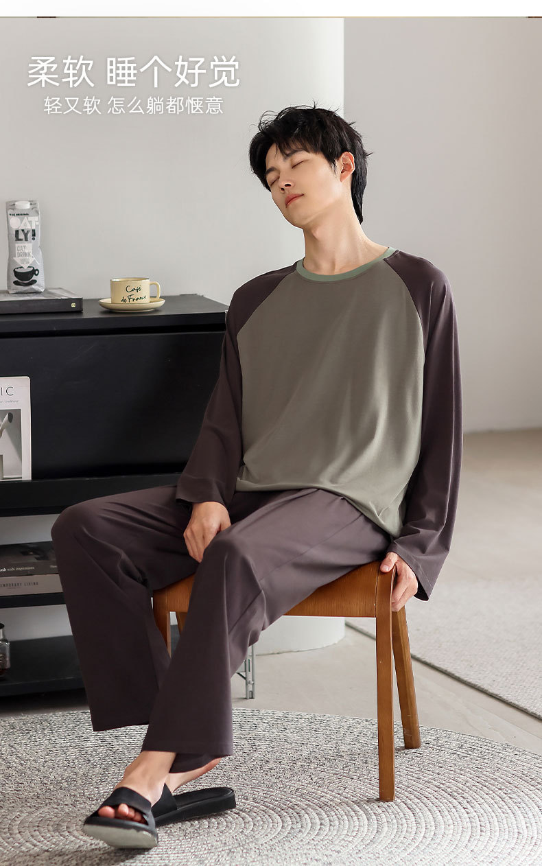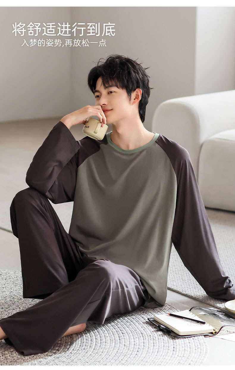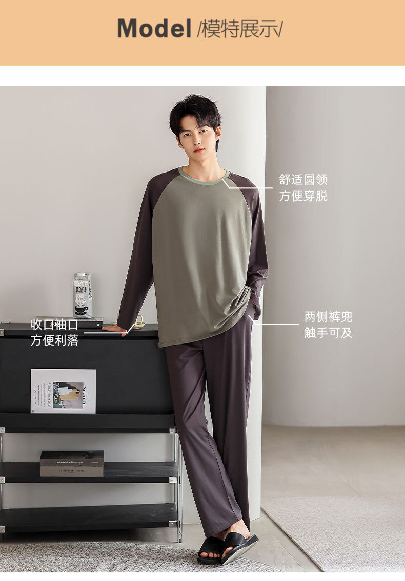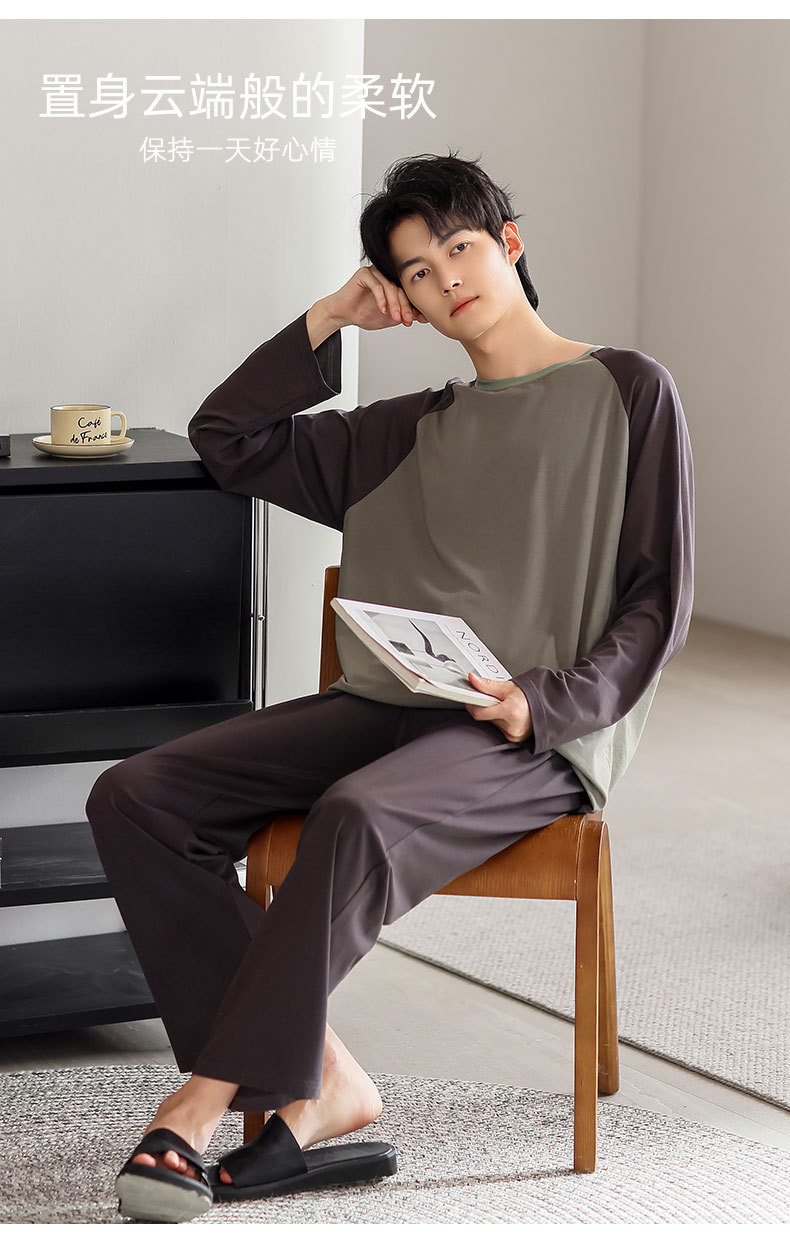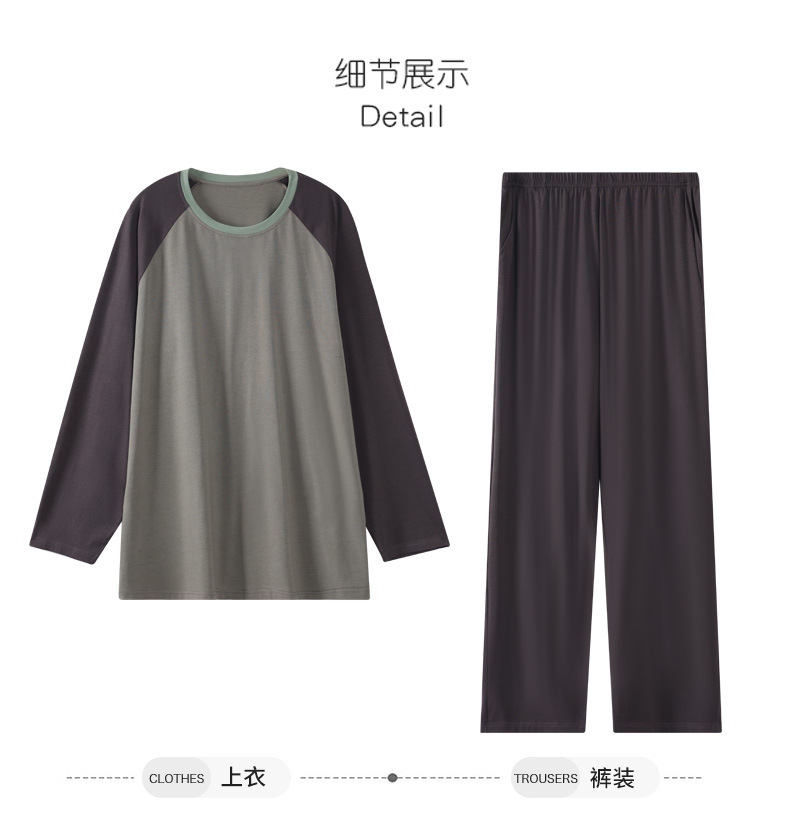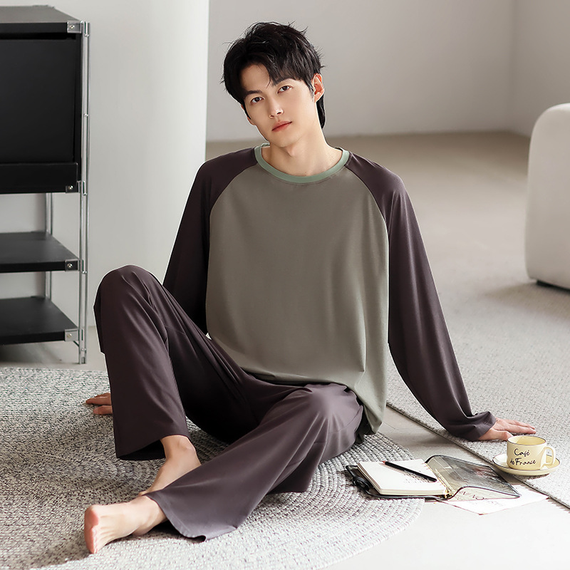 남성용 도매 잠옷, 여름용 긴팔 라운드넥 풀오버, 심플하고 캐주얼한 청소년용 얇은 홈웨어 세트, 외출복으로도 착용 가능스토어 가기