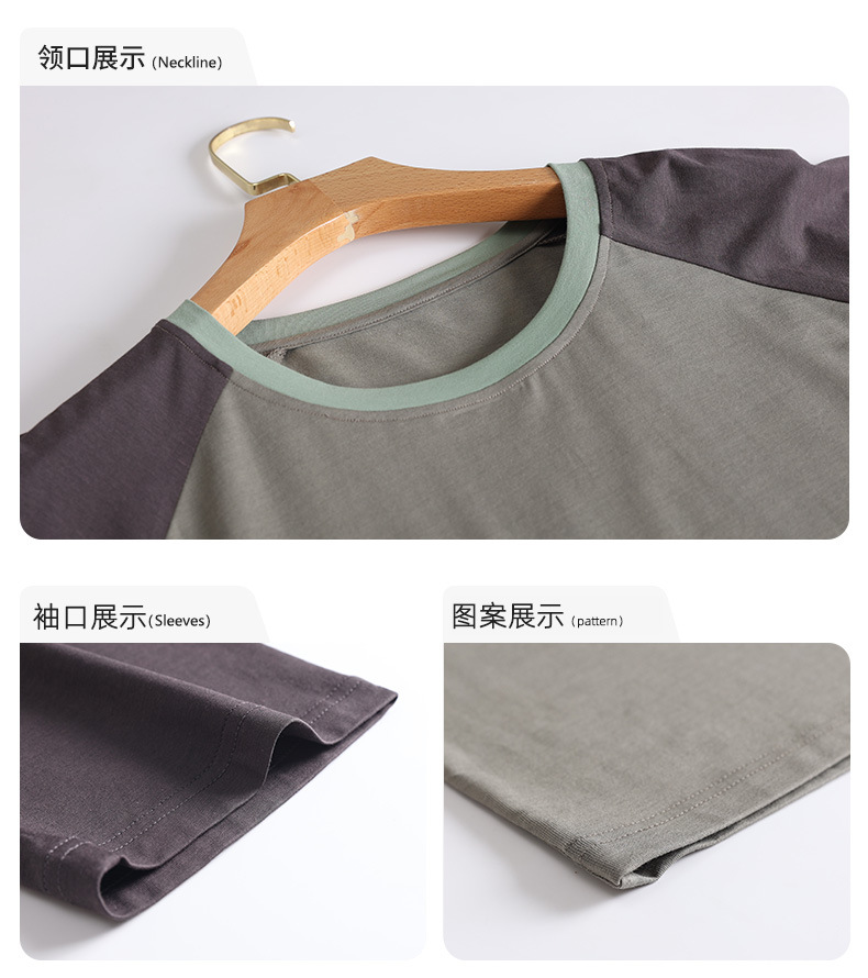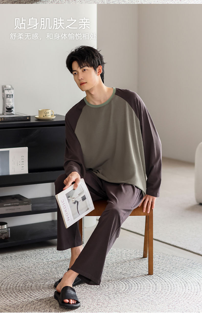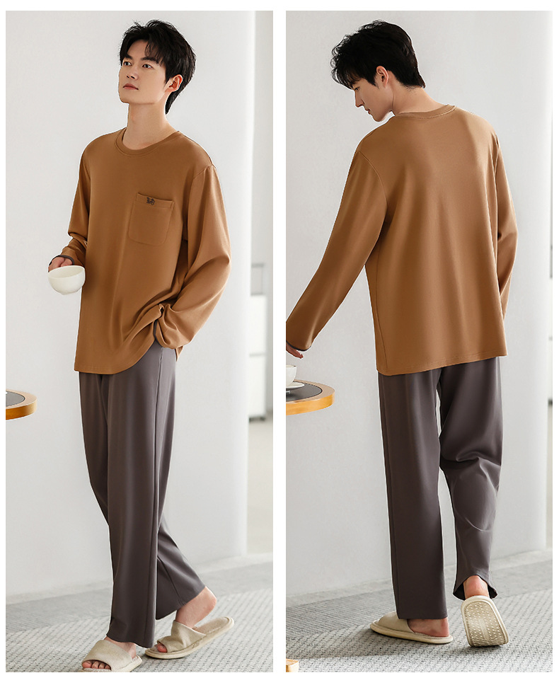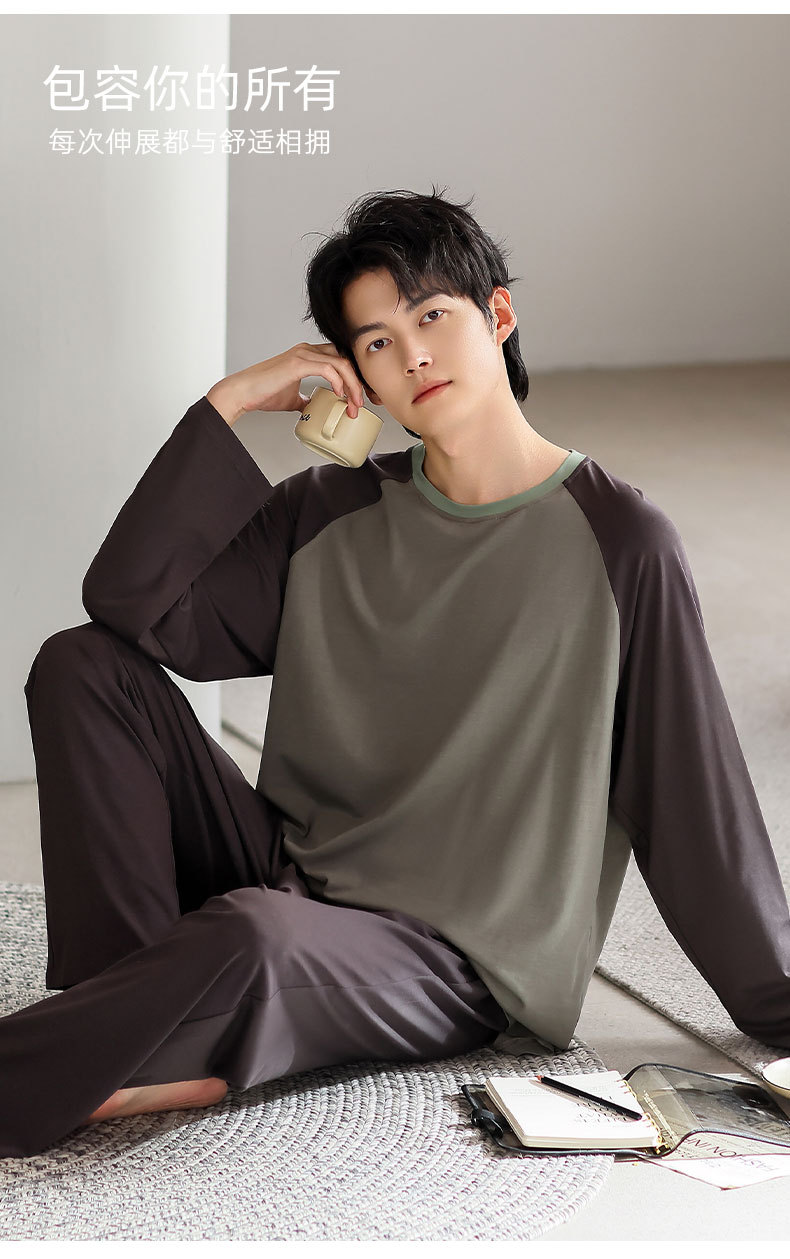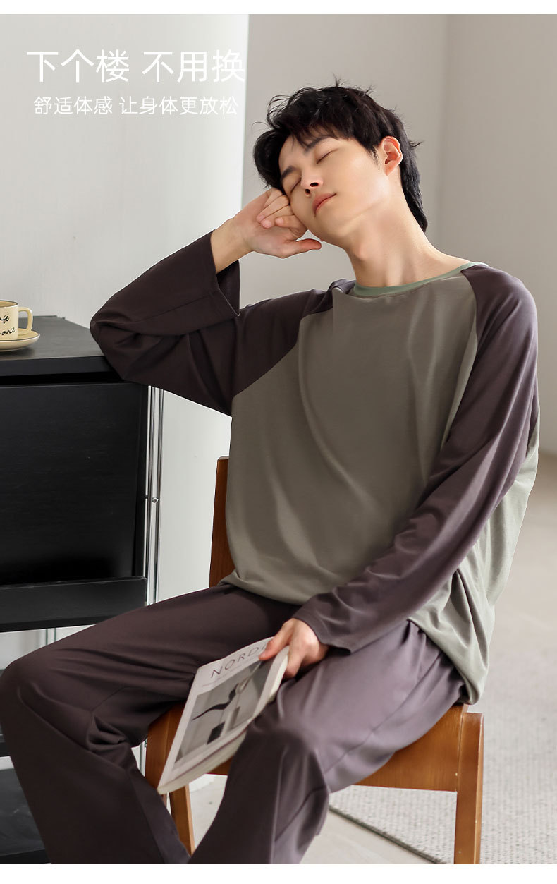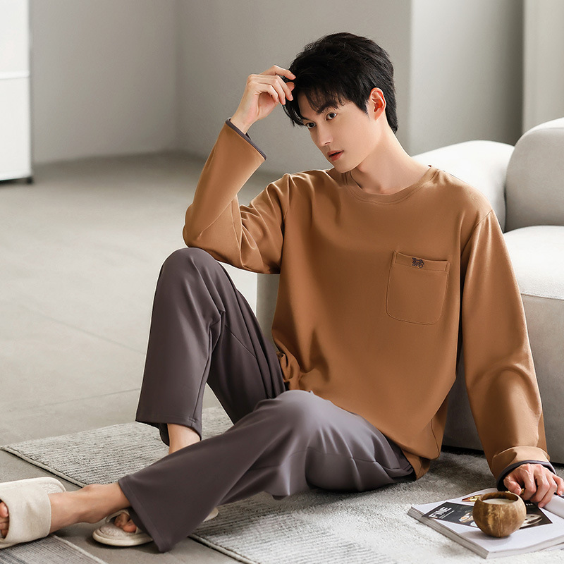 남성용 도매 잠옷, 여름용 긴팔 라운드넥 풀오버, 심플하고 캐주얼한 청소년용 얇은 홈웨어 세트, 외출복으로도 착용 가능스토어 가기