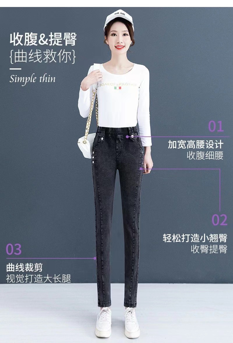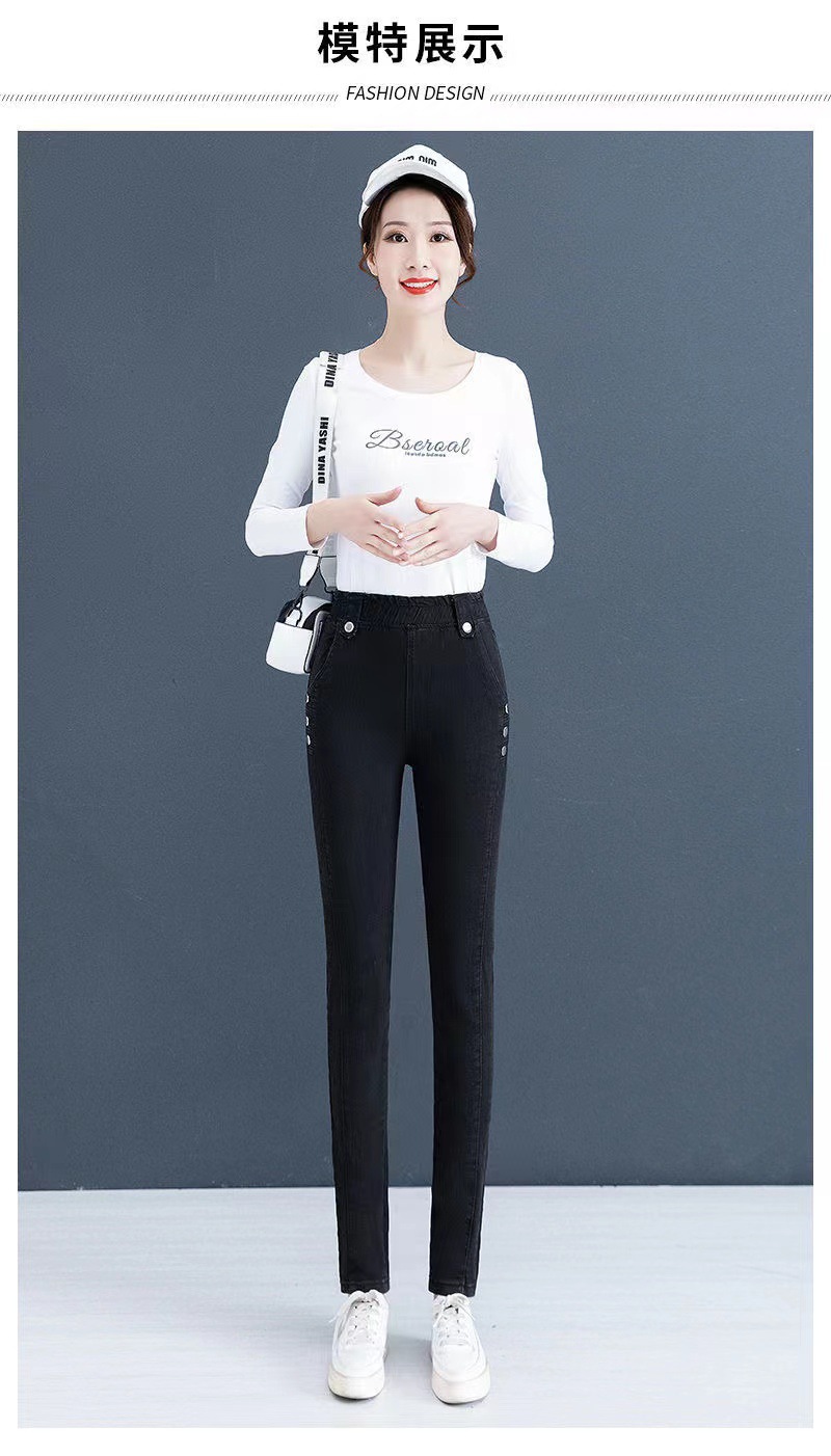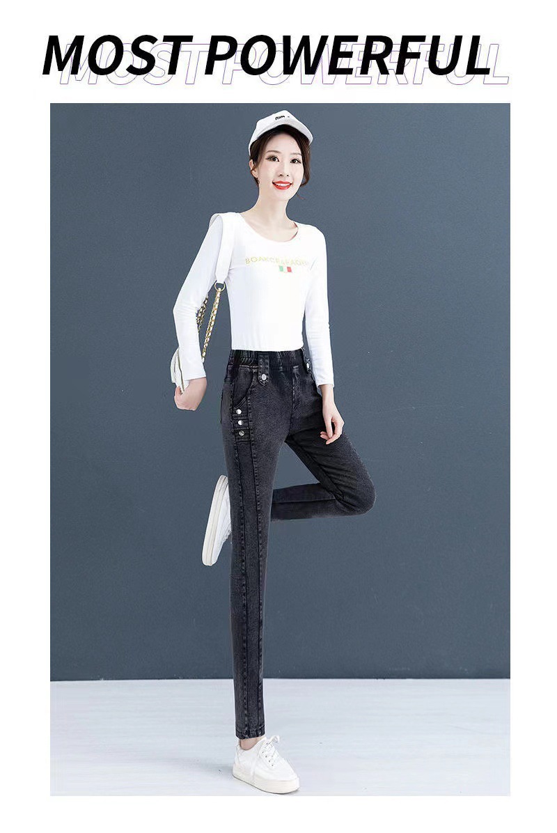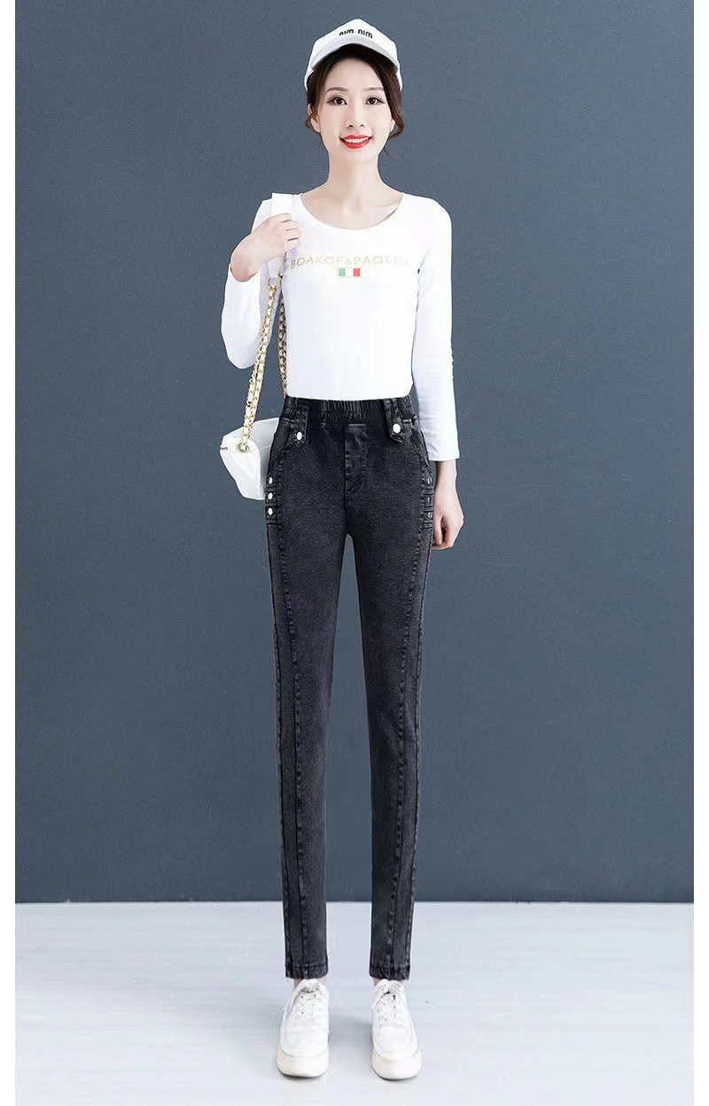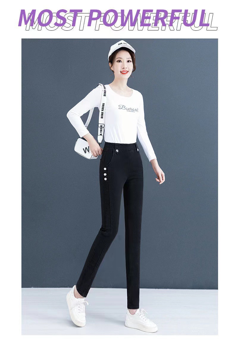 여성용 하이웨이스트 신축성 데님 팬츠 2025 가을 겨울 신상 슬림핏 다용도 따뜻한 신축성 허리 펜슬 팬츠스토어 가기