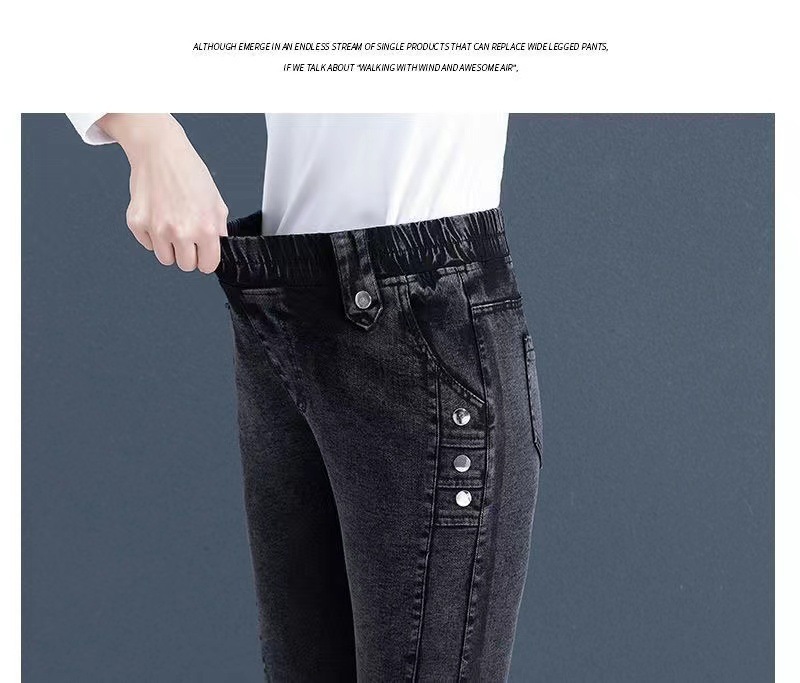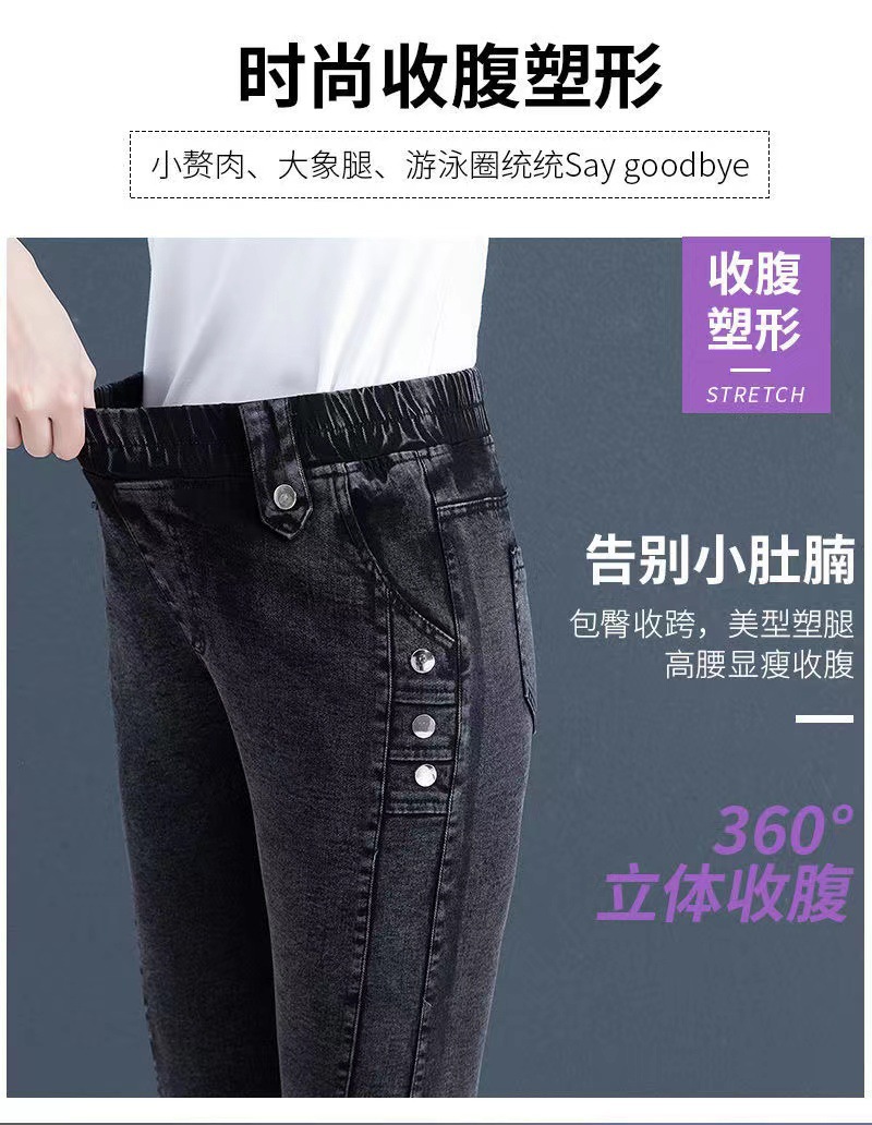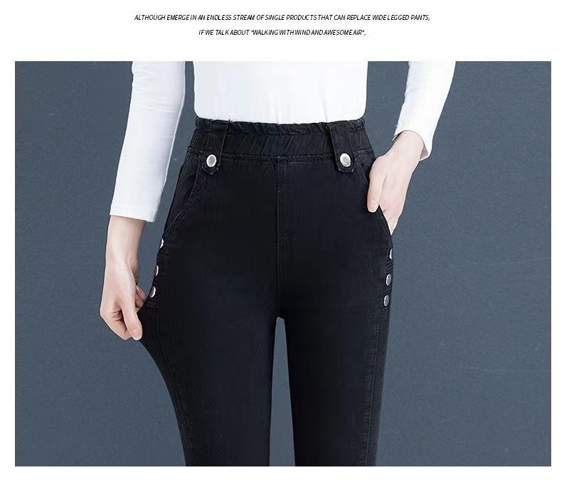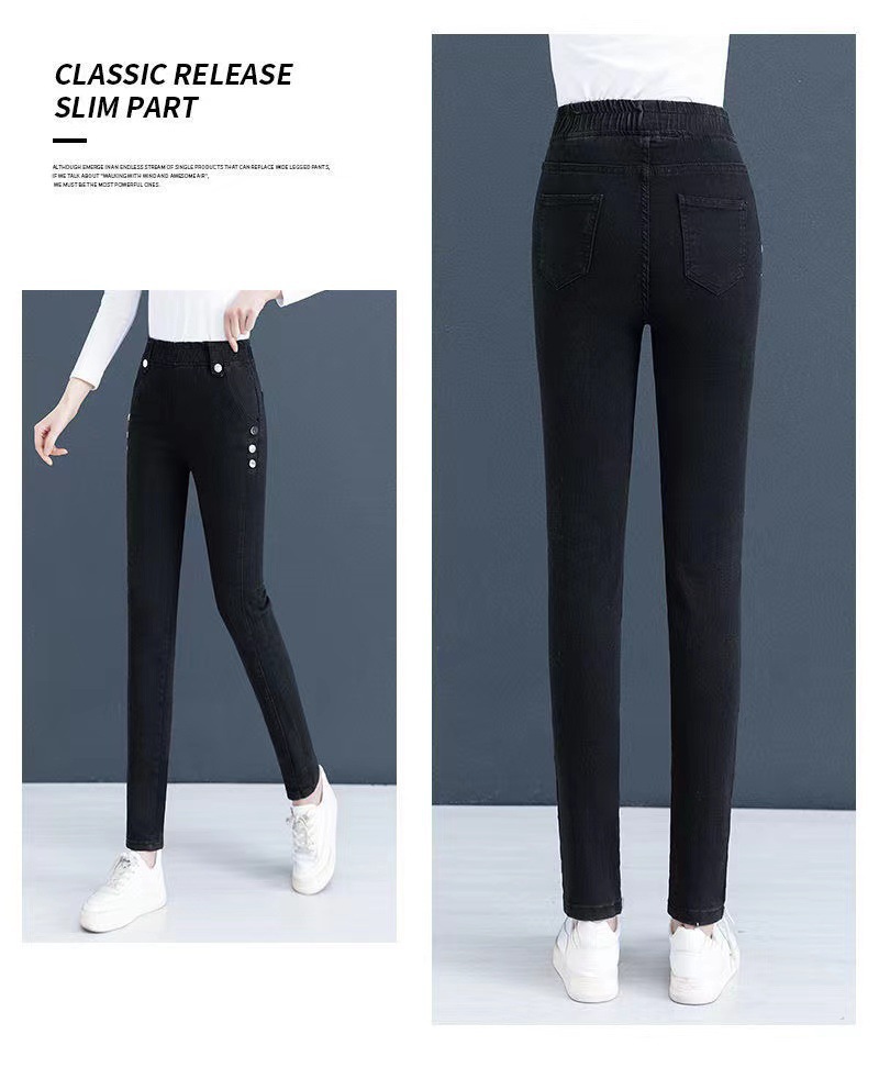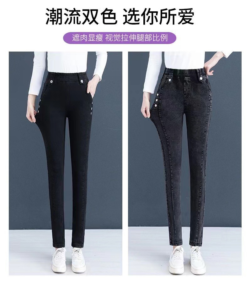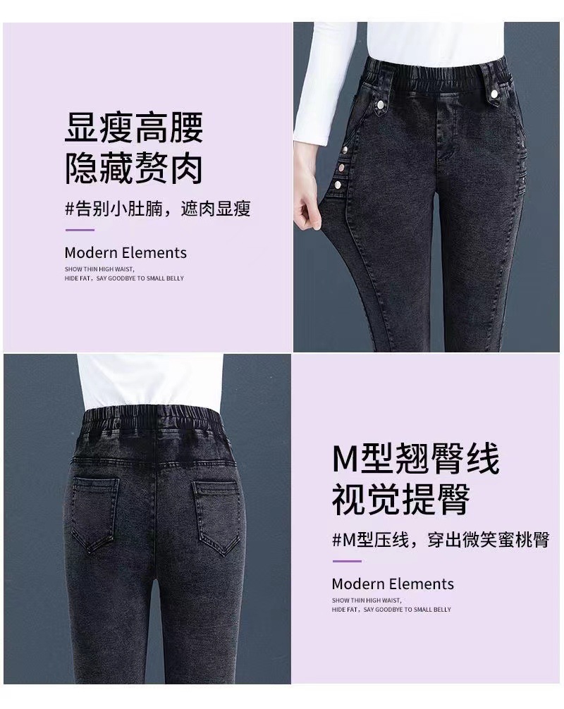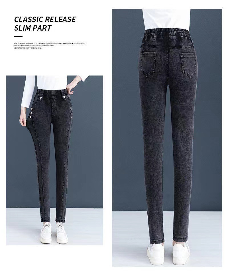 여성용 하이웨이스트 신축성 데님 팬츠 2025 가을 겨울 신상 슬림핏 다용도 따뜻한 신축성 허리 펜슬 팬츠