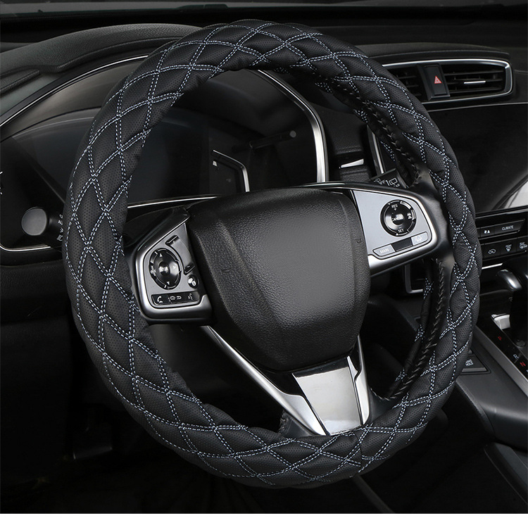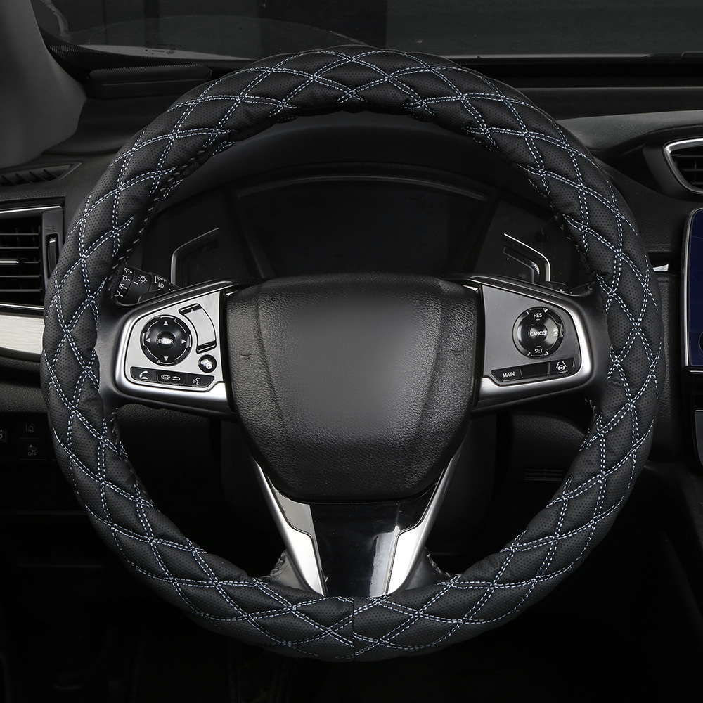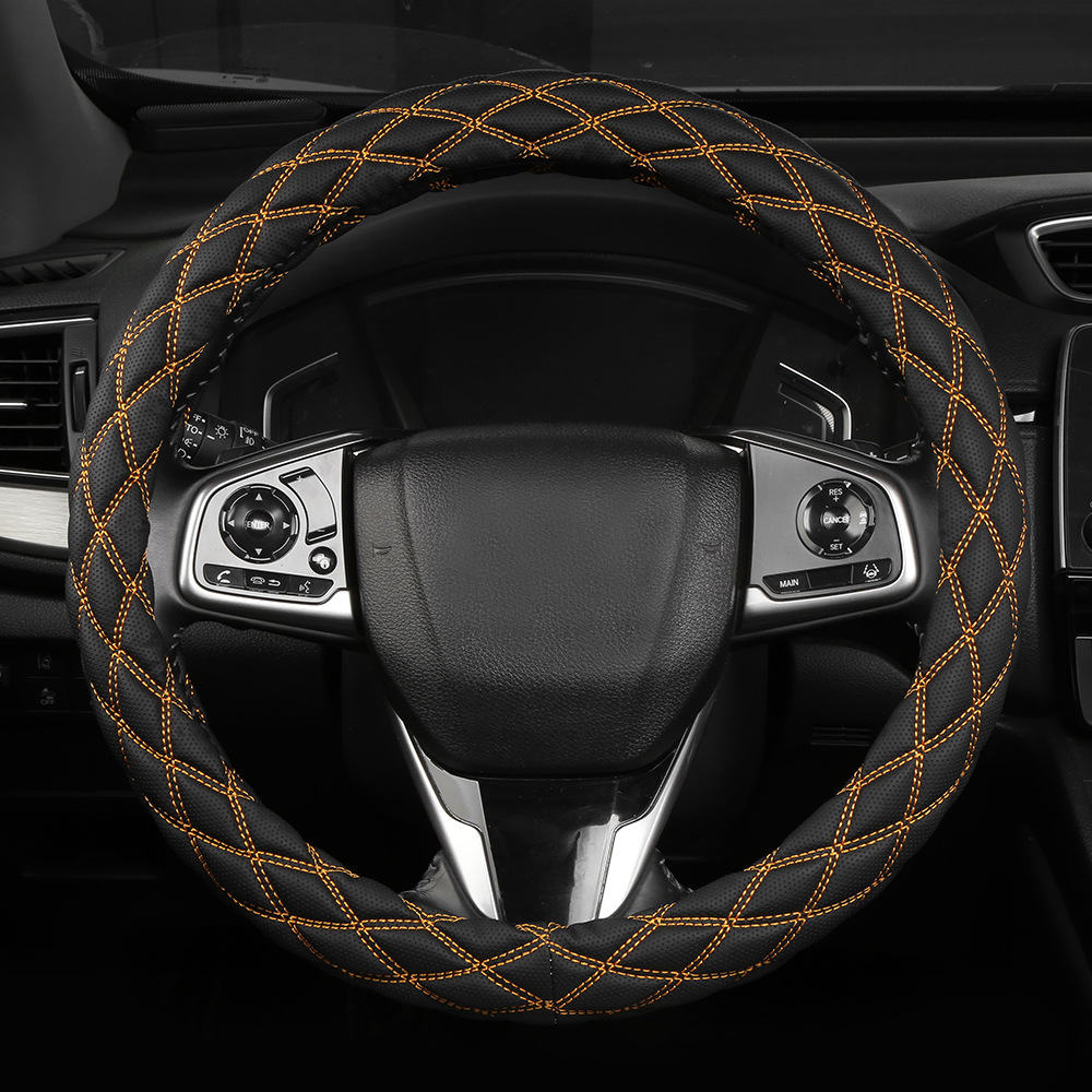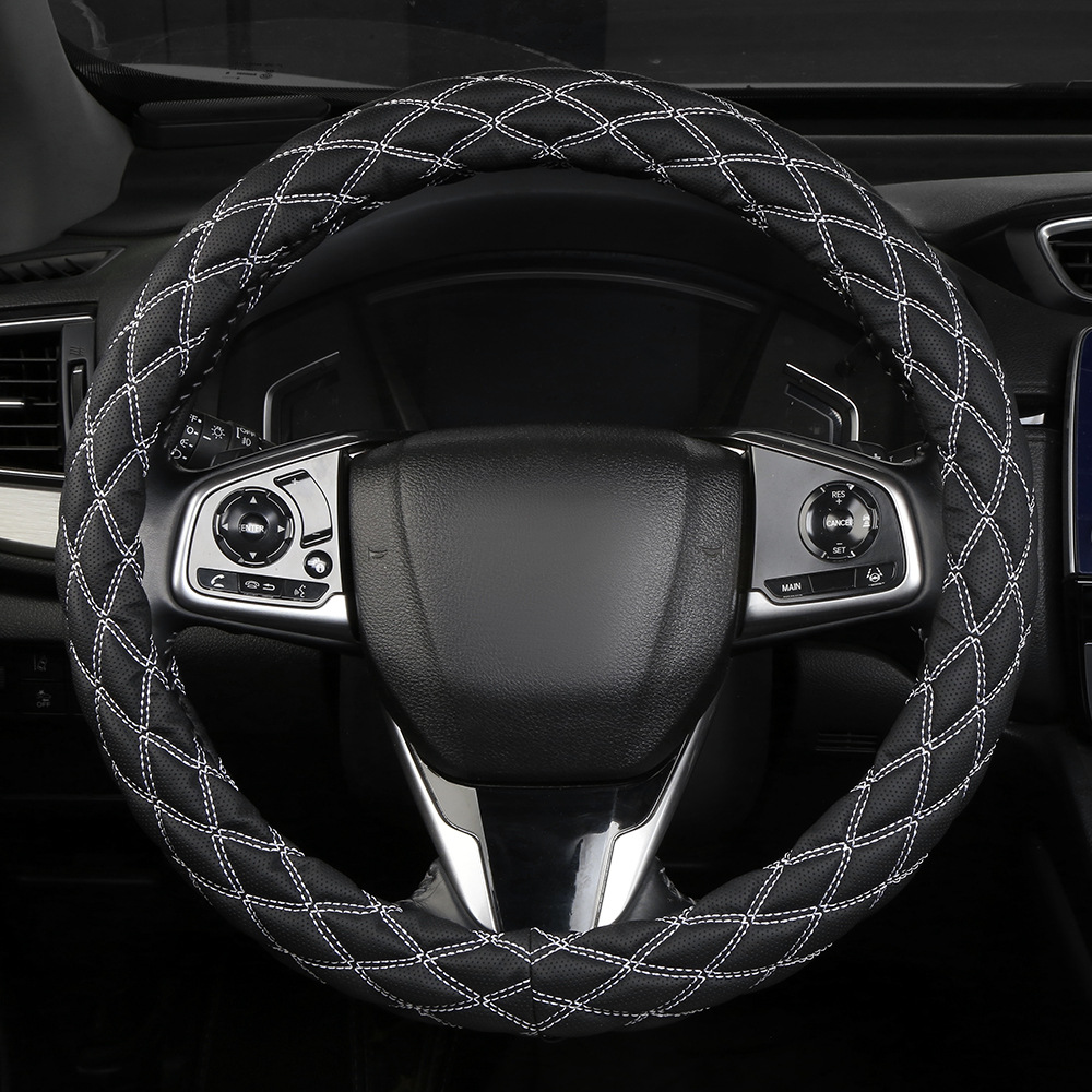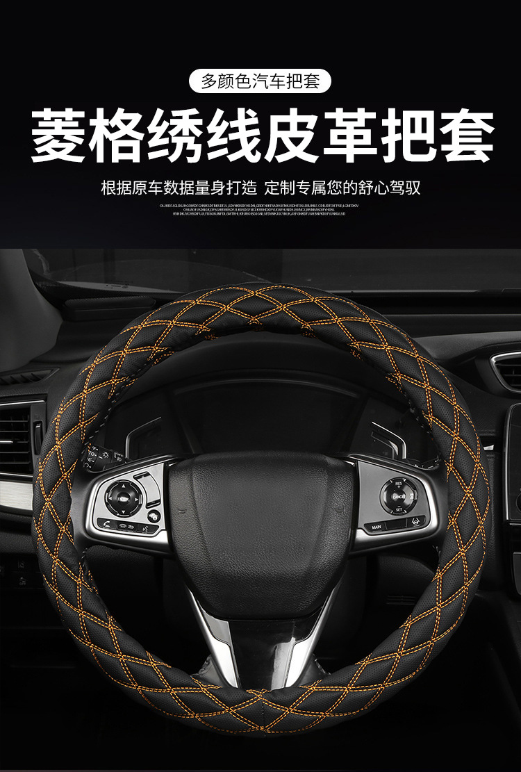국경 간 아마존 자수 가죽 마름모 자동차 스티어링 휠 커버 사계절 유니버설 미끄럼 방지 자동차 핸들 커버 도매스토어 가기