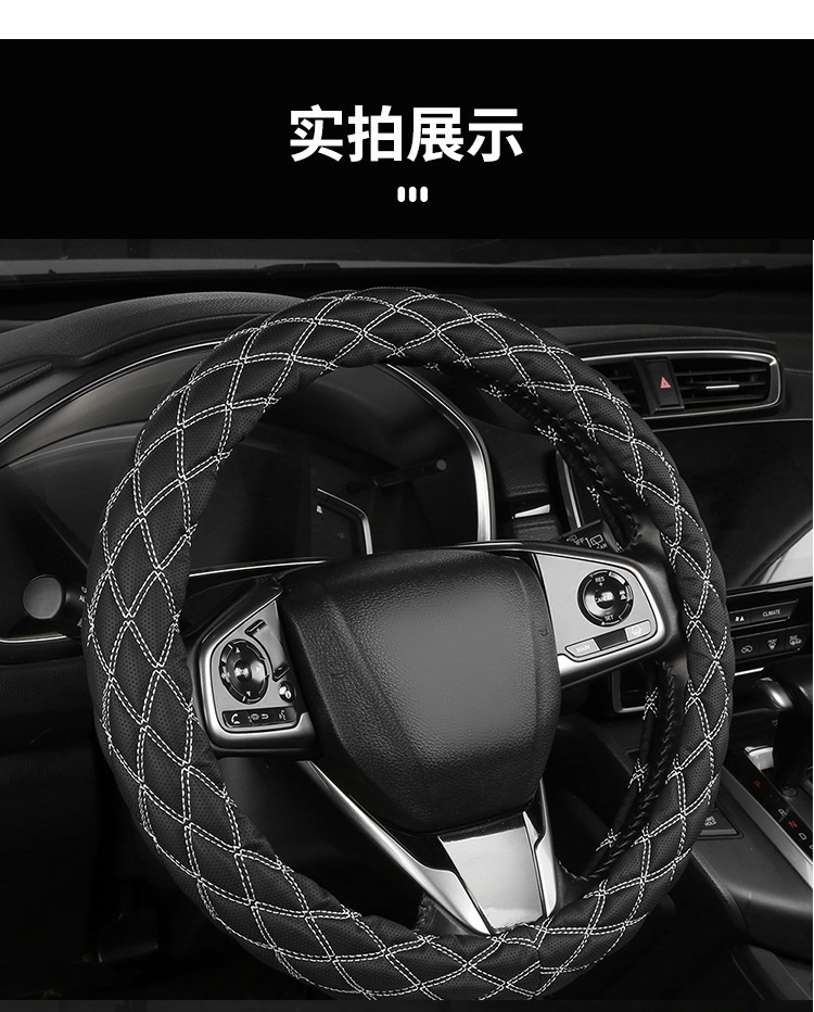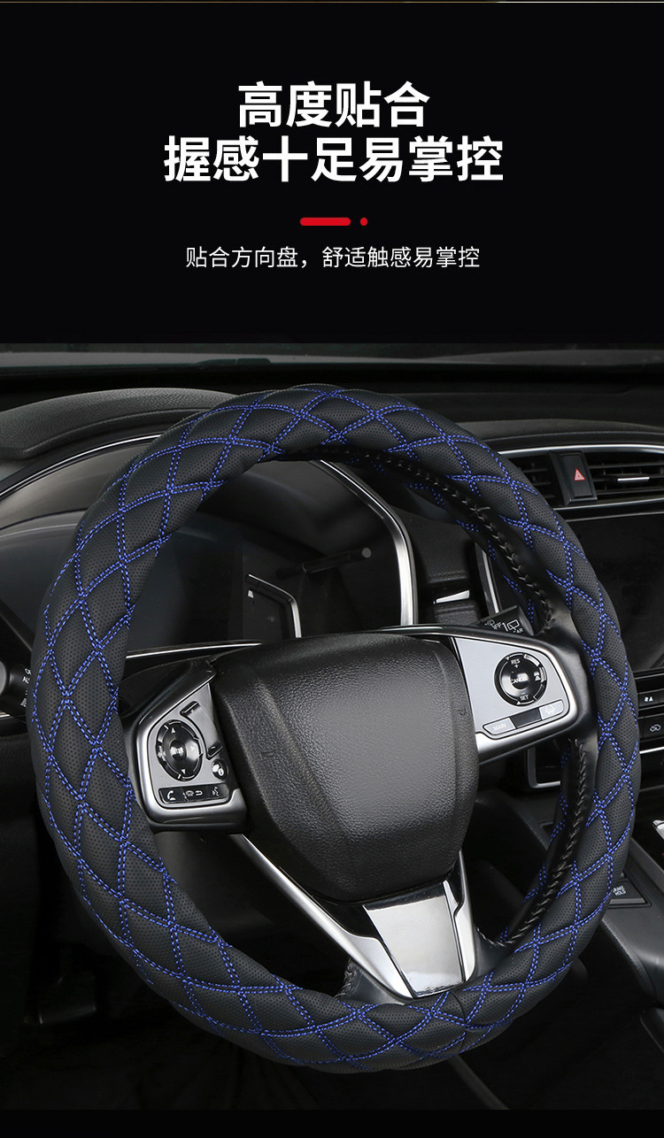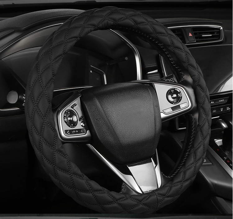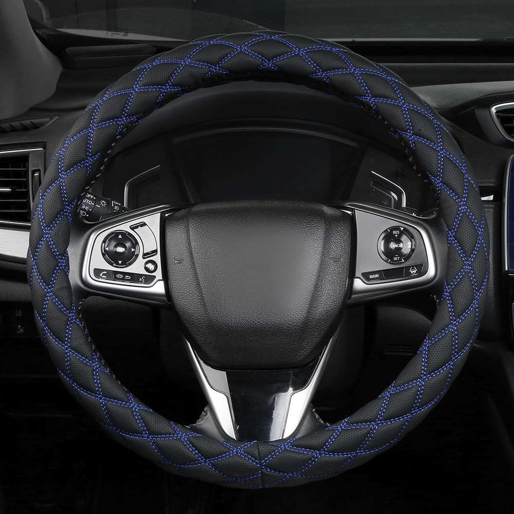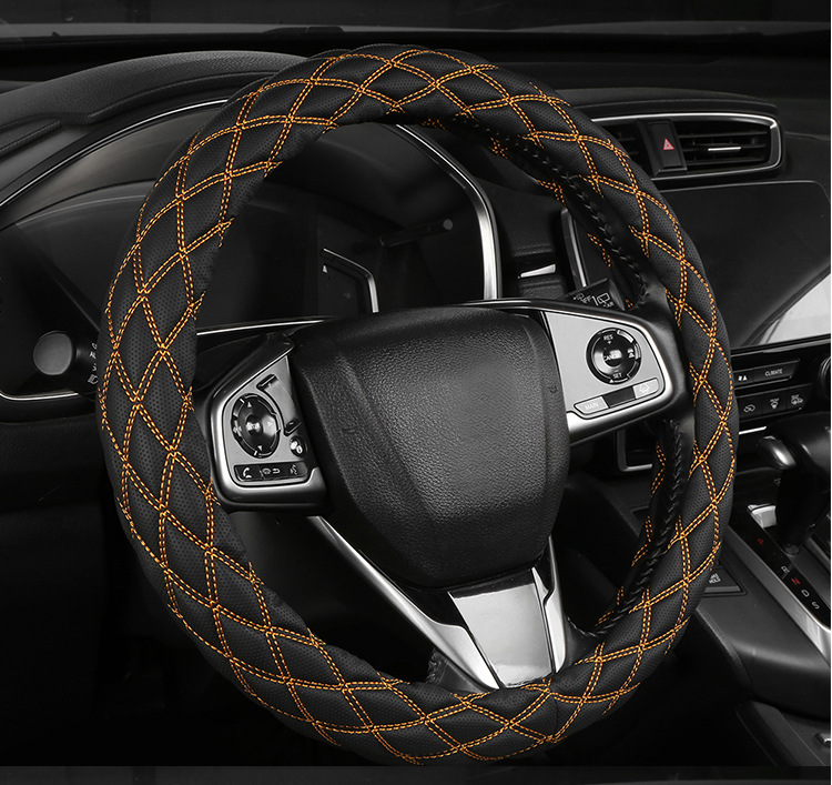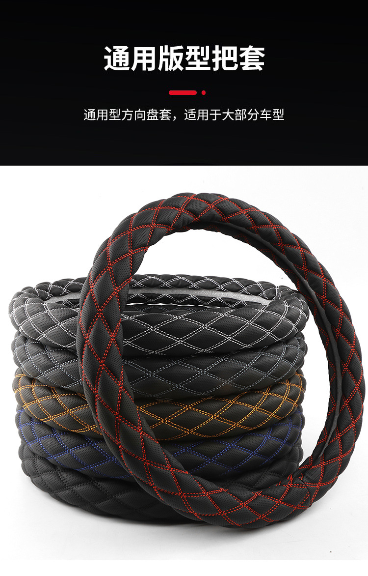 국경 간 아마존 자수 가죽 마름모 자동차 스티어링 휠 커버 사계절 유니버설 미끄럼 방지 자동차 핸들 커버 도매스토어 가기