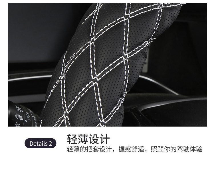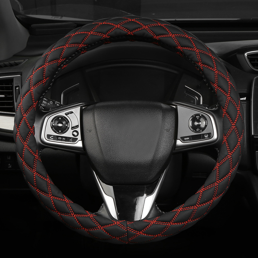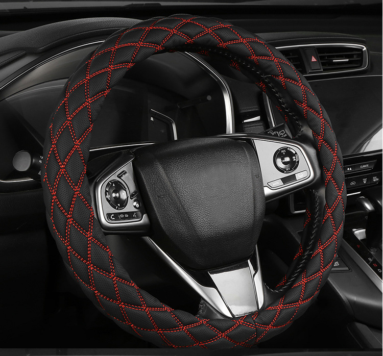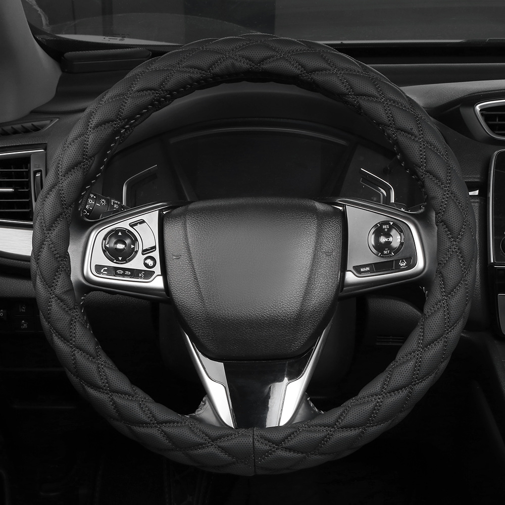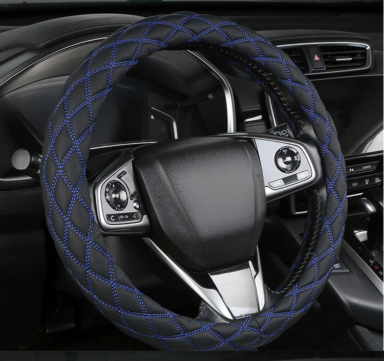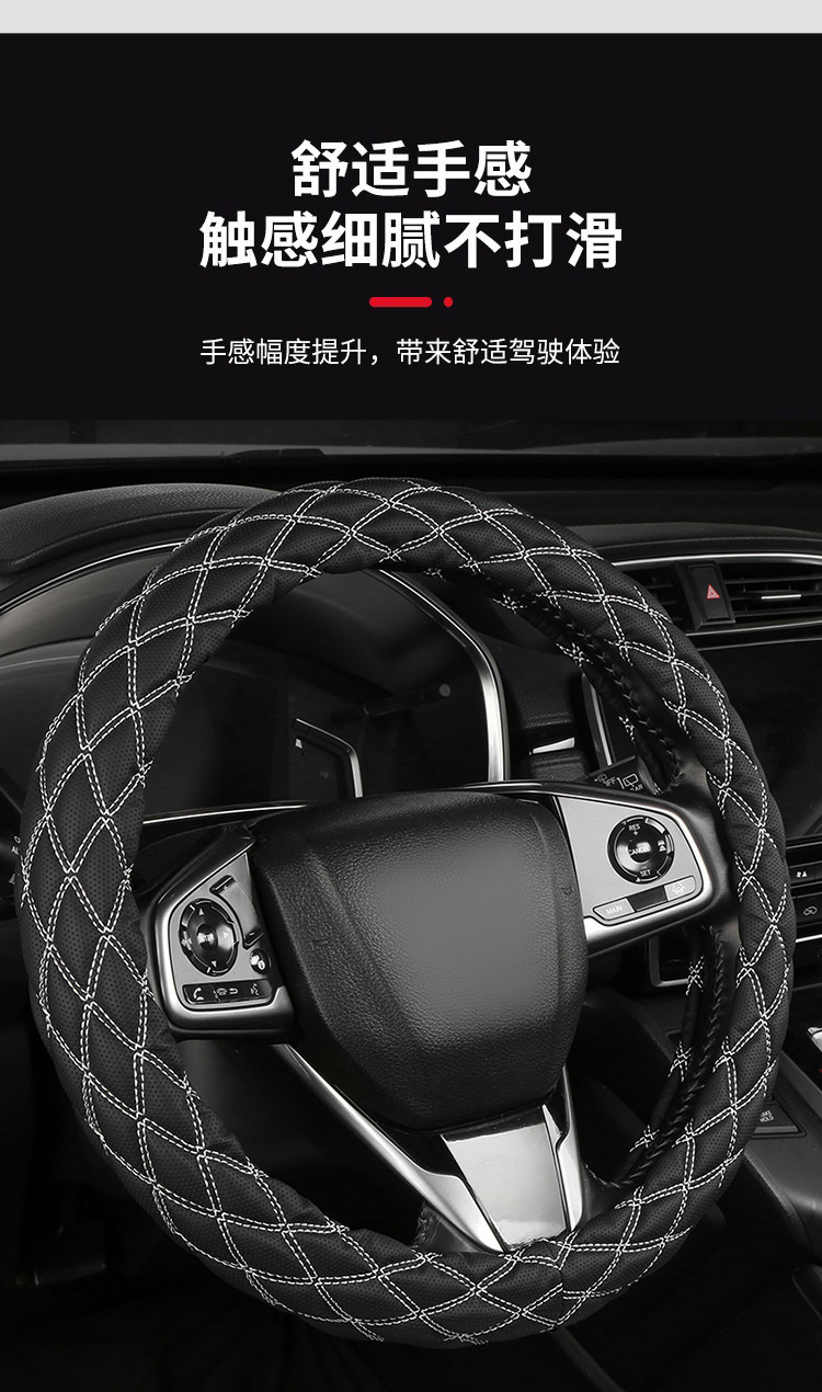 국경 간 아마존 자수 가죽 마름모 자동차 스티어링 휠 커버 사계절 유니버설 미끄럼 방지 자동차 핸들 커버 도매스토어 가기