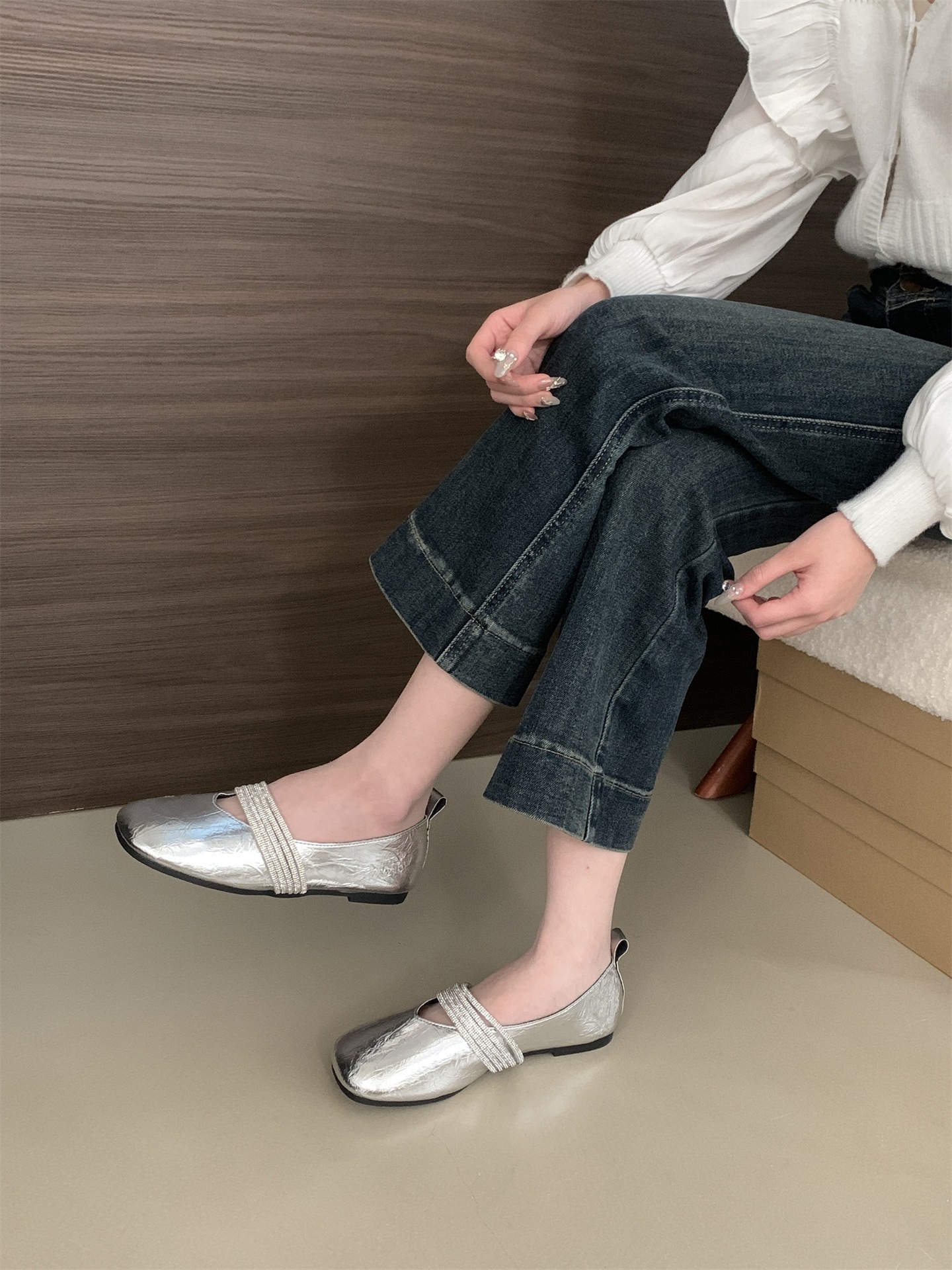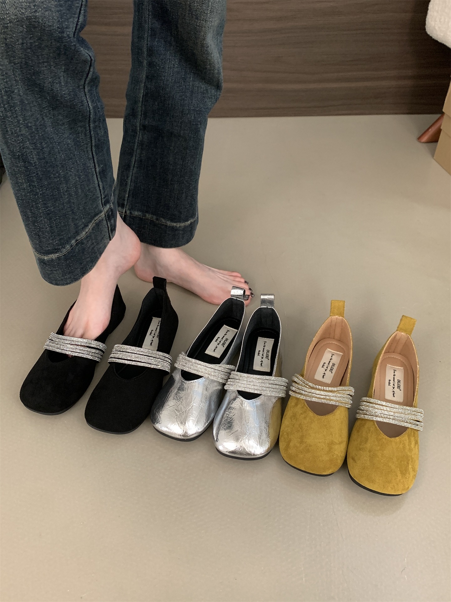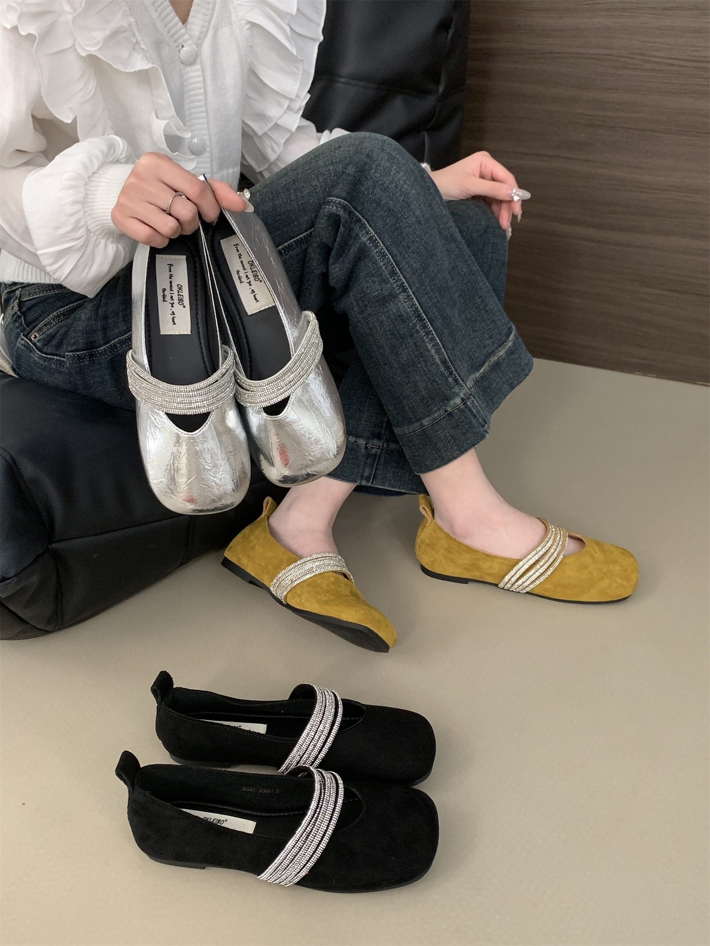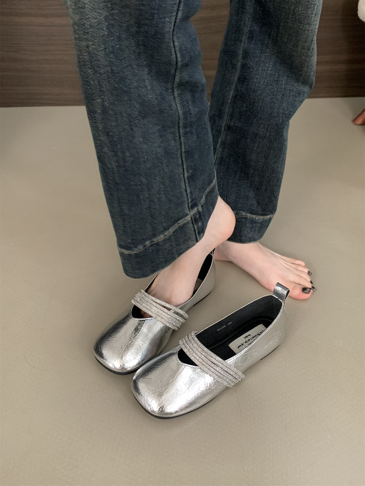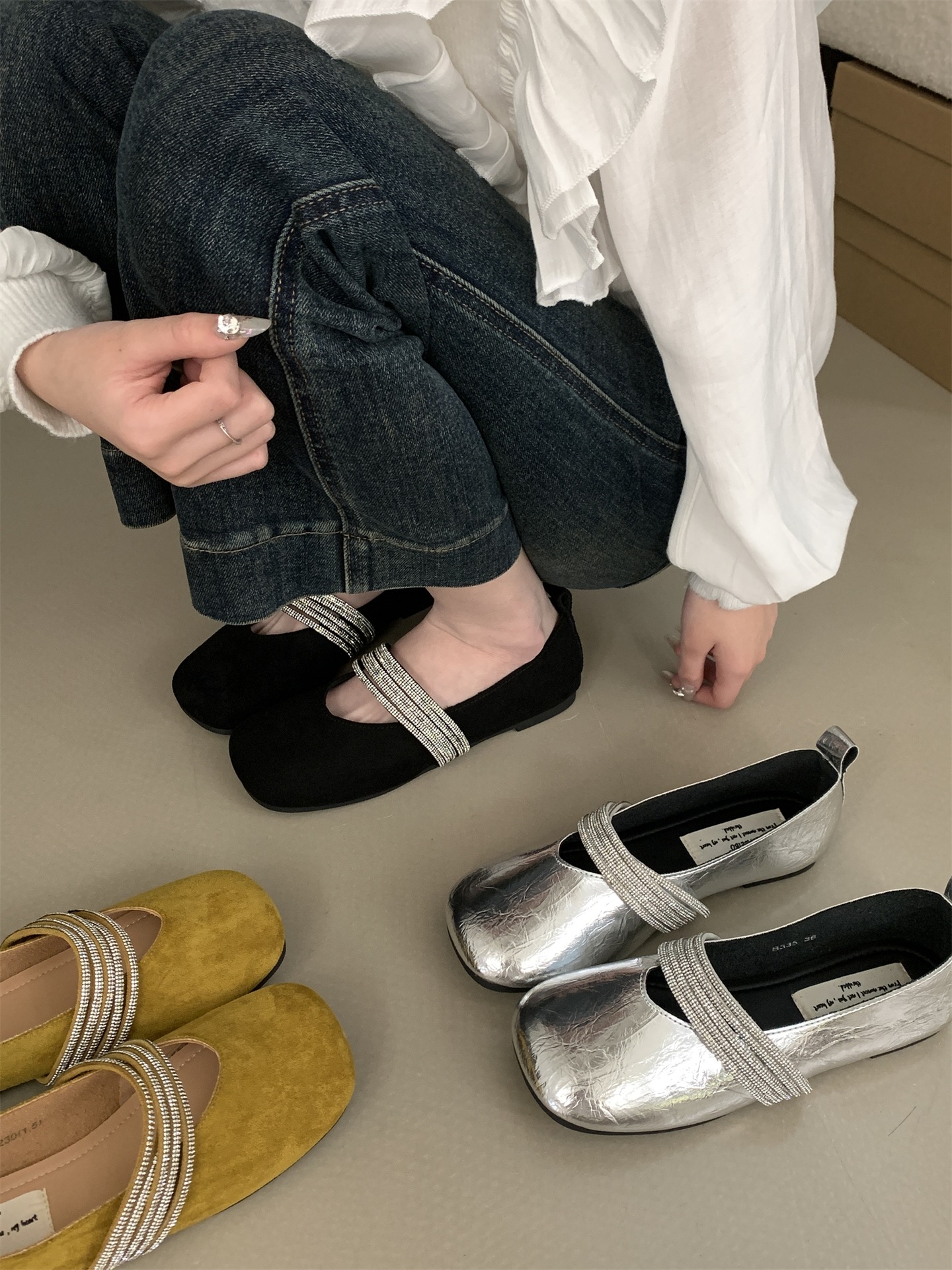 늦은 저녁 부드러운 얕은 입 라인스톤 소프트 솔 신발 여성의 2025 새로운 평면 프랑스 스파클링 요정 메리 제인 신발스토어 가기