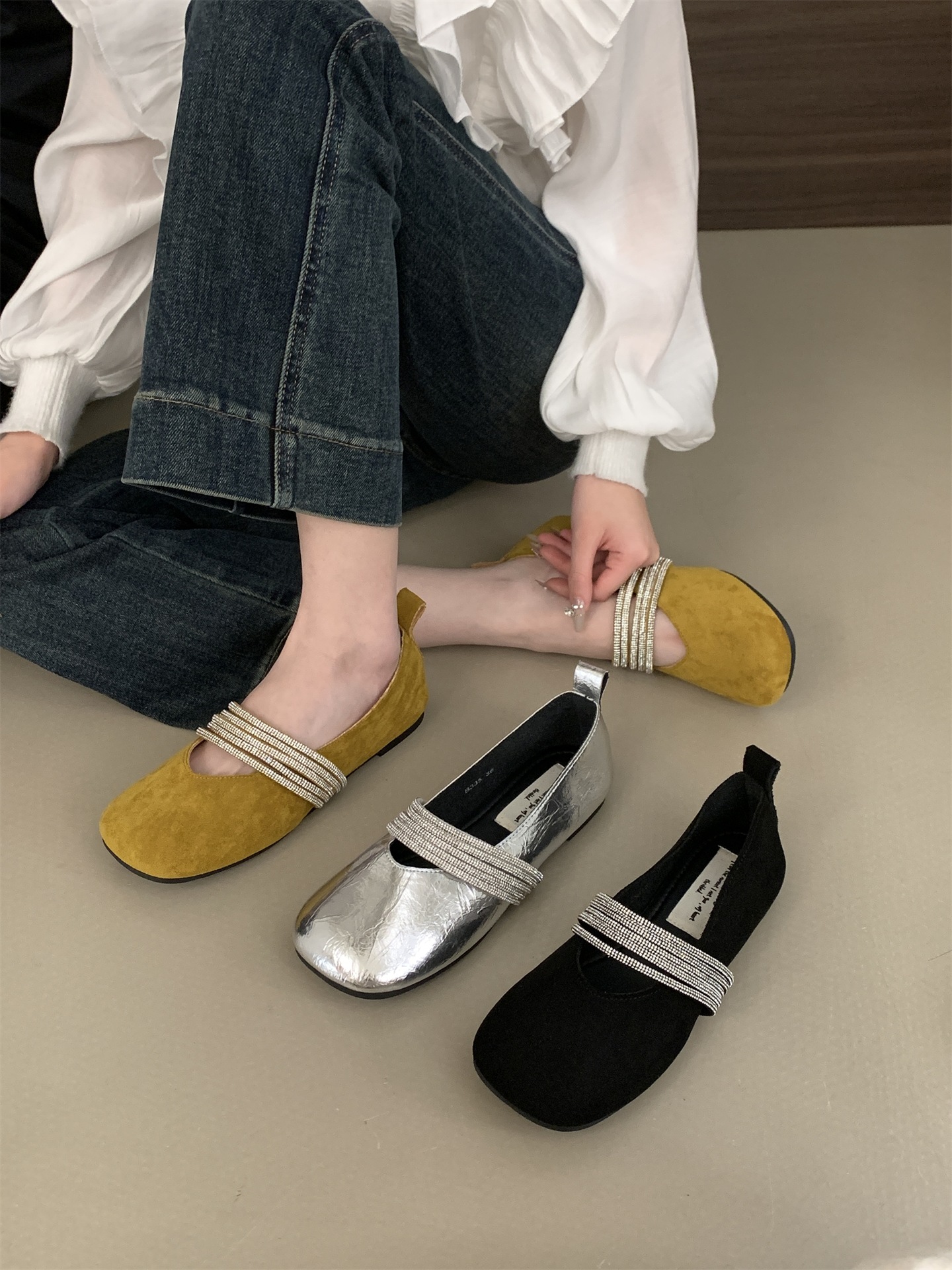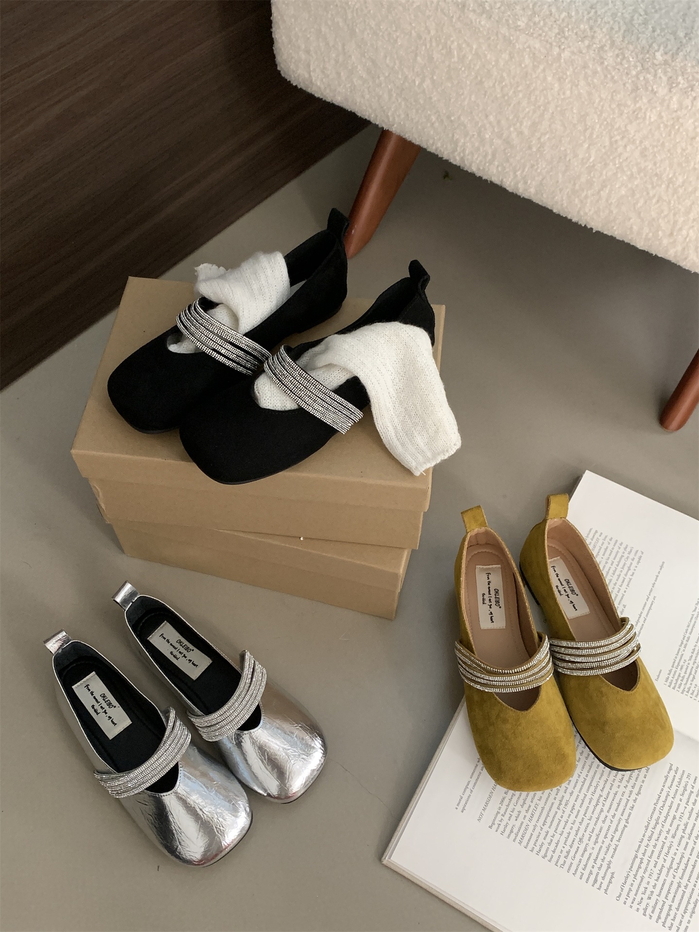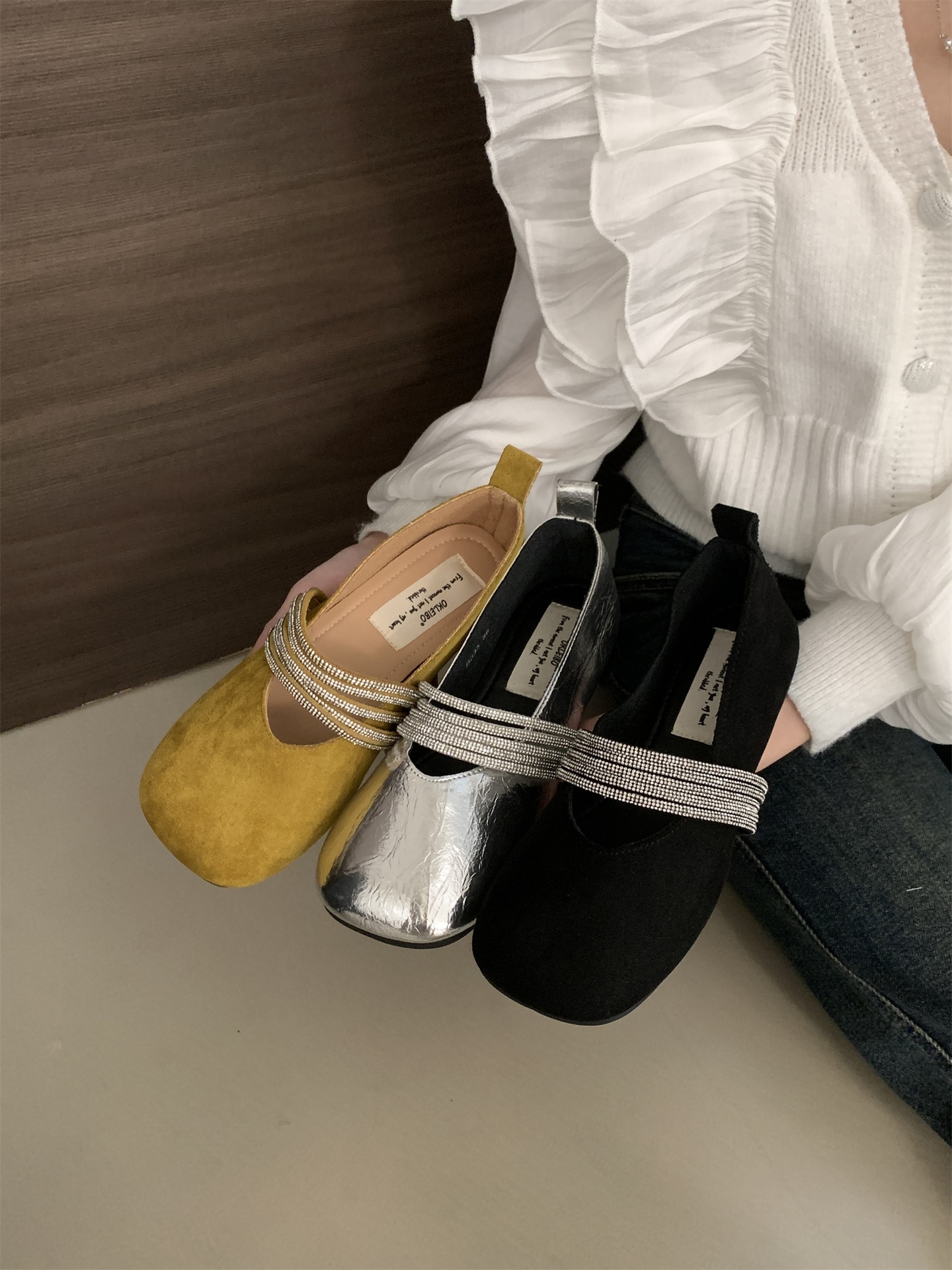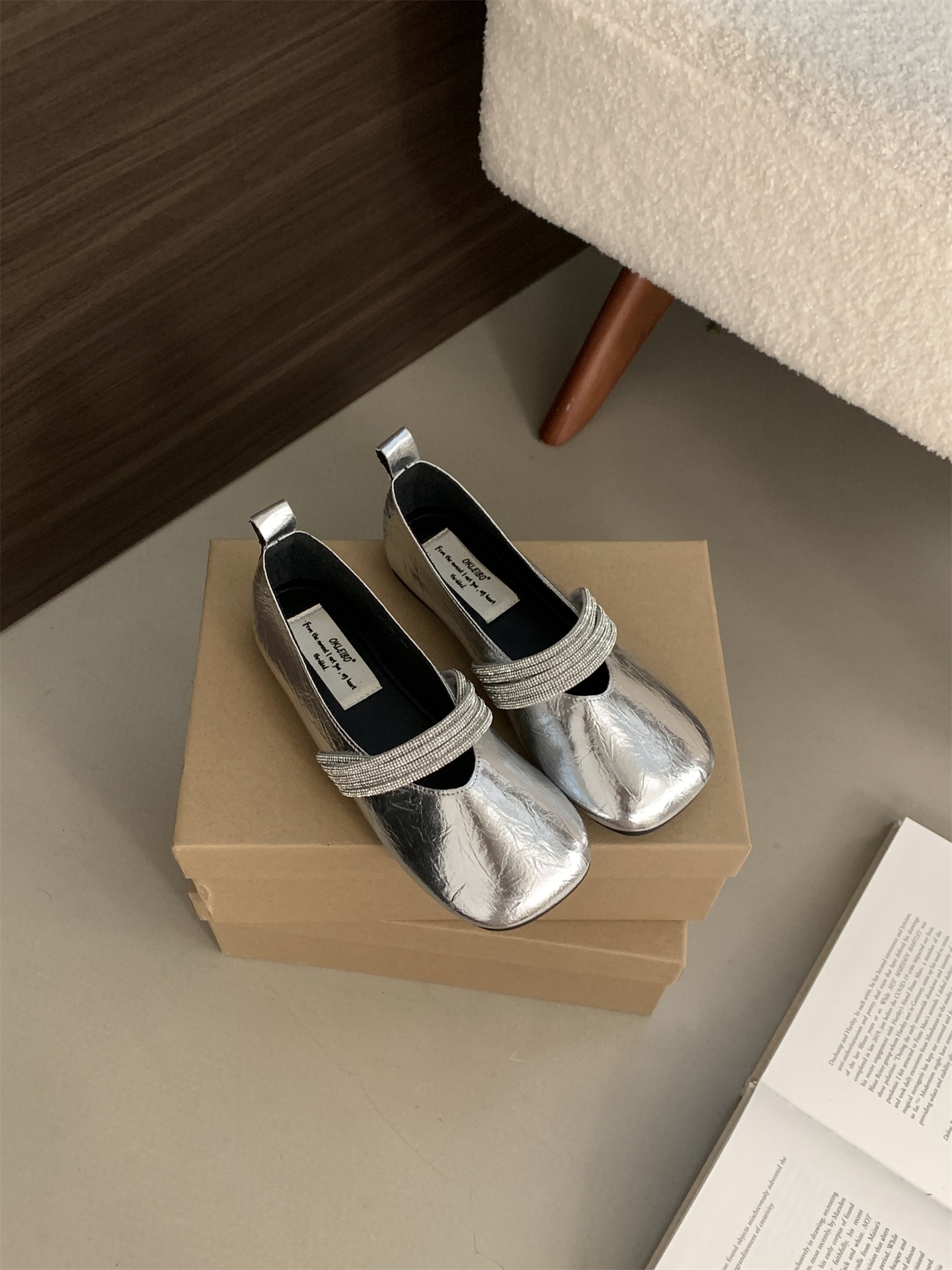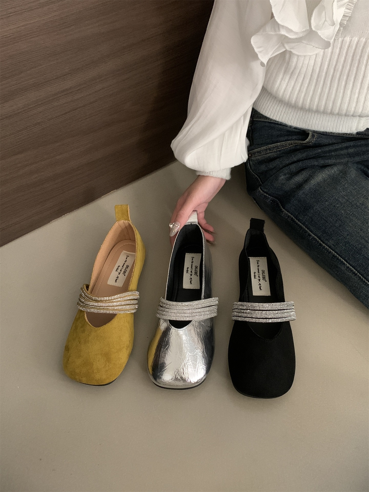 늦은 저녁 부드러운 얕은 입 라인스톤 소프트 솔 신발 여성의 2025 새로운 평면 프랑스 스파클링 요정 메리 제인 신발스토어 가기