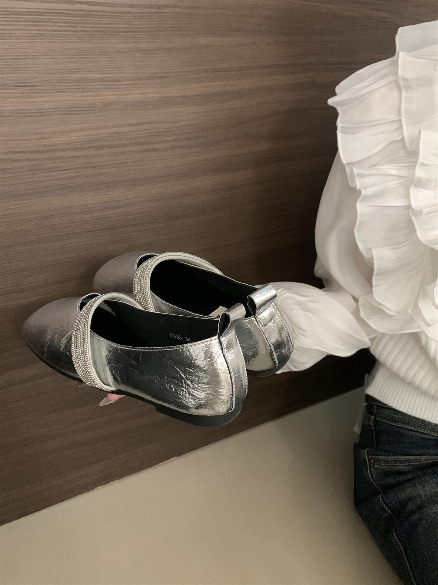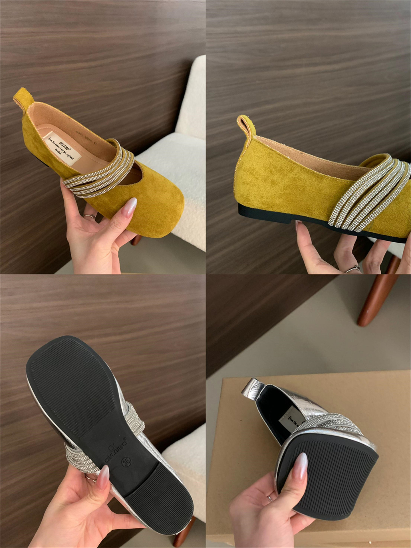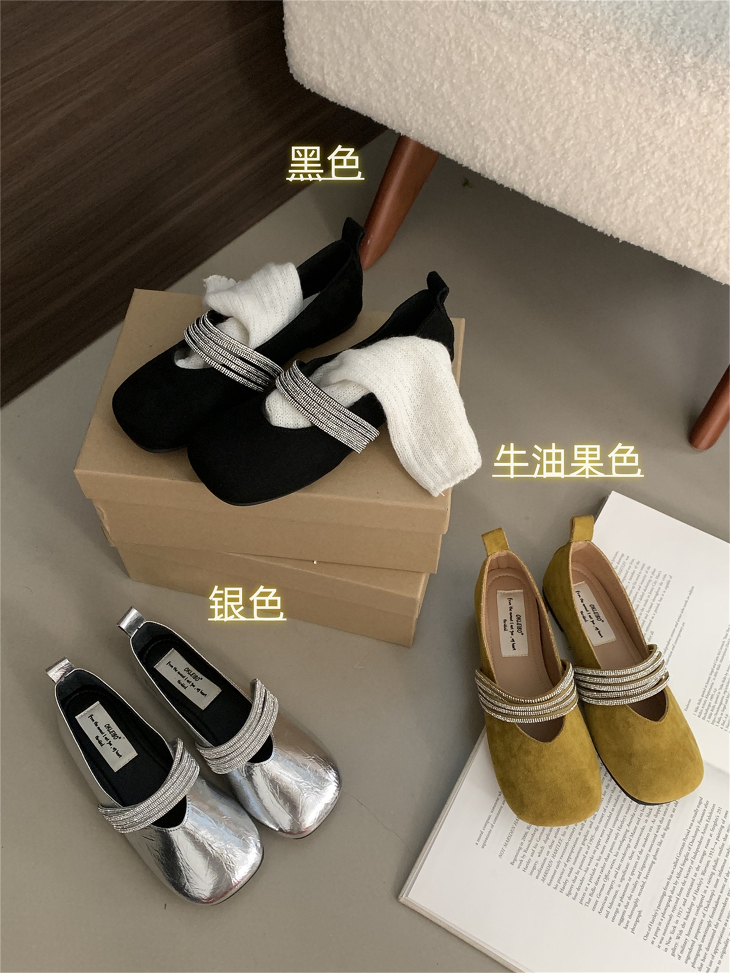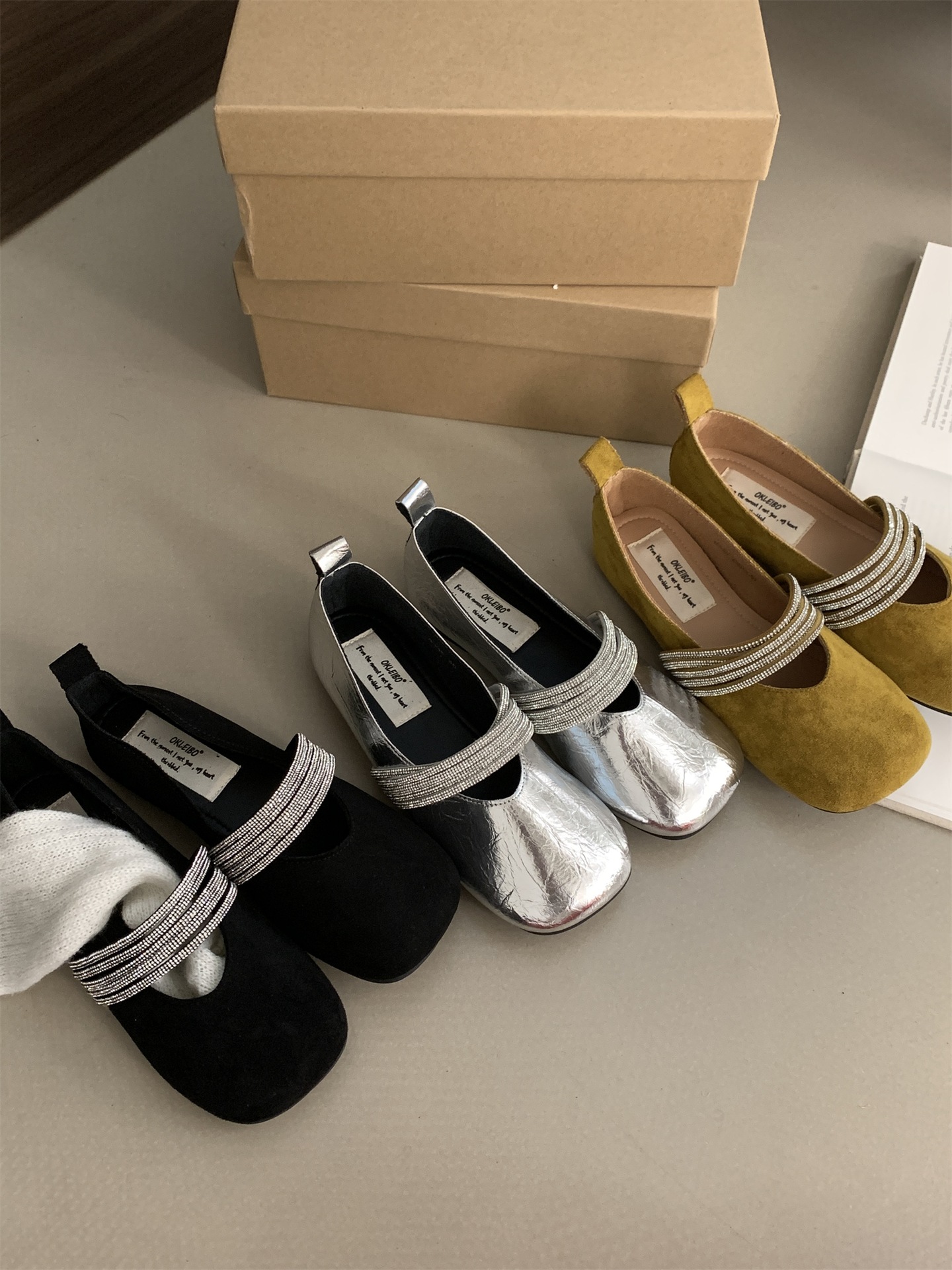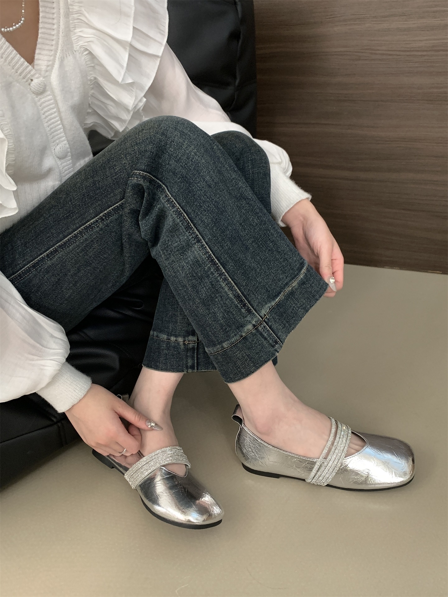 늦은 저녁 부드러운 얕은 입 라인스톤 소프트 솔 신발 여성의 2025 새로운 평면 프랑스 스파클링 요정 메리 제인 신발스토어 가기