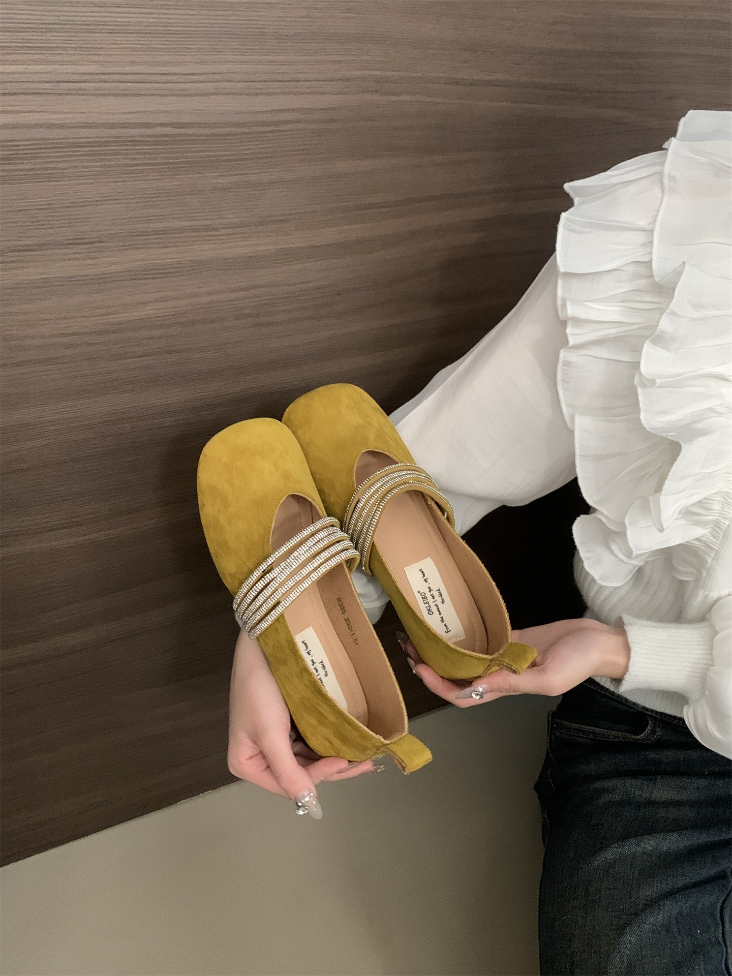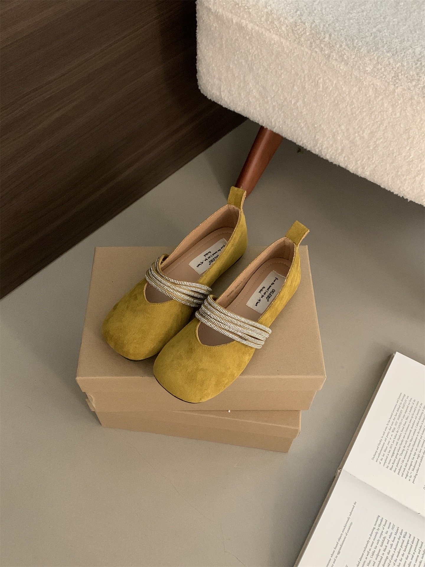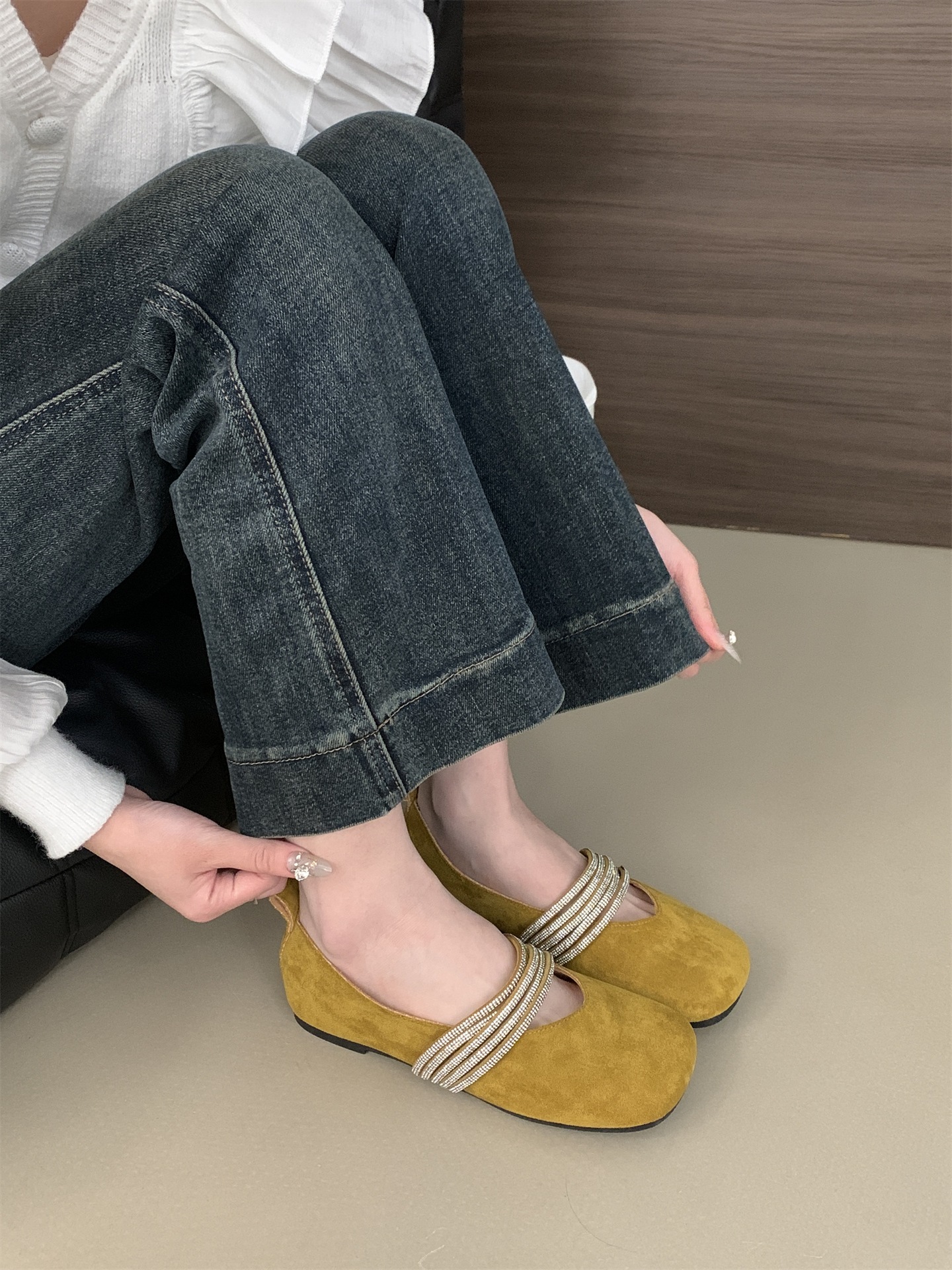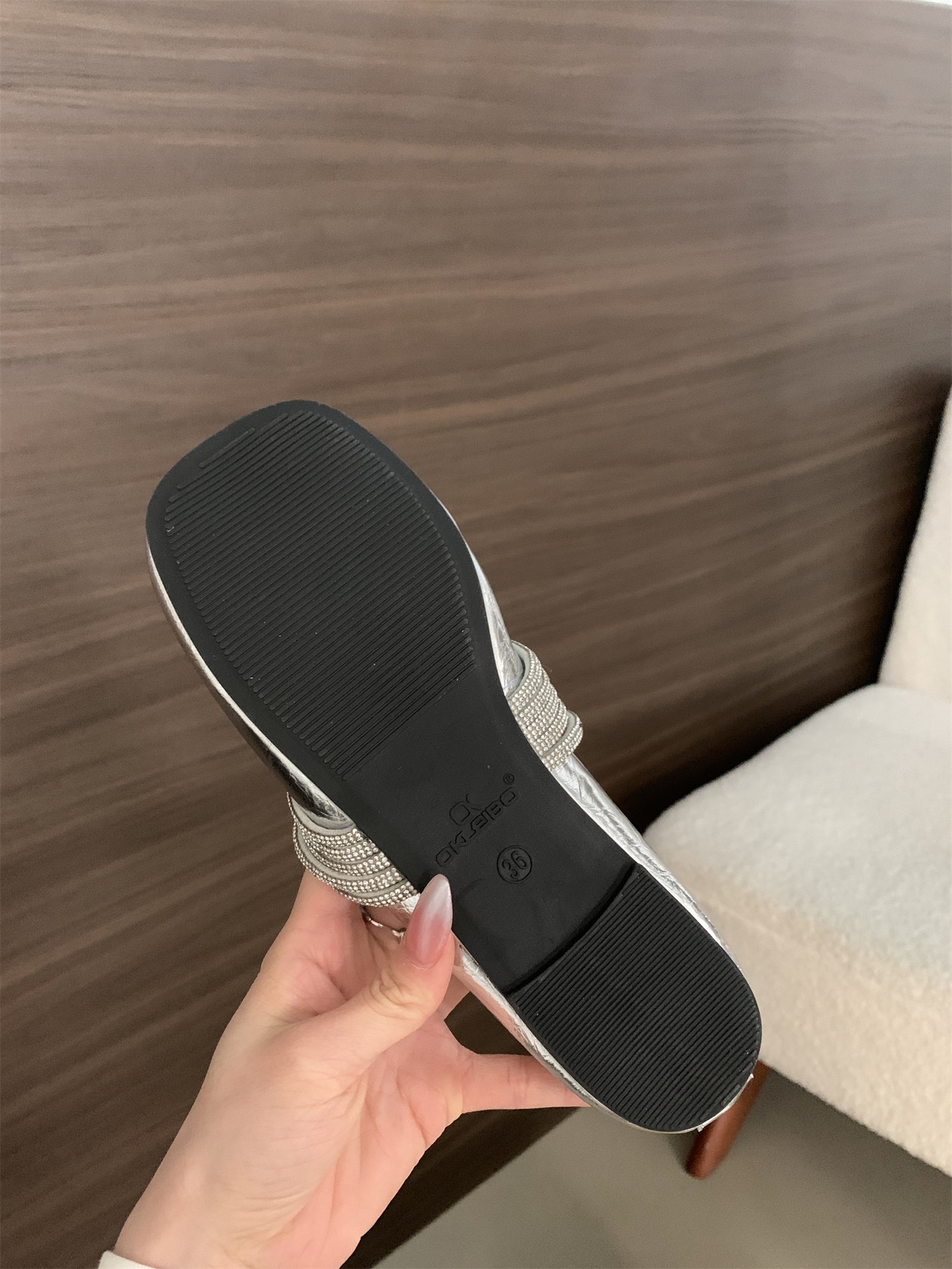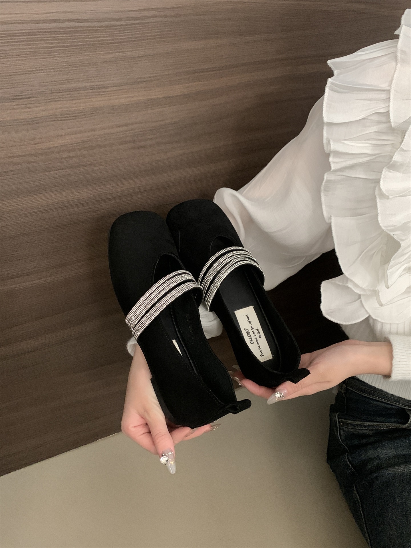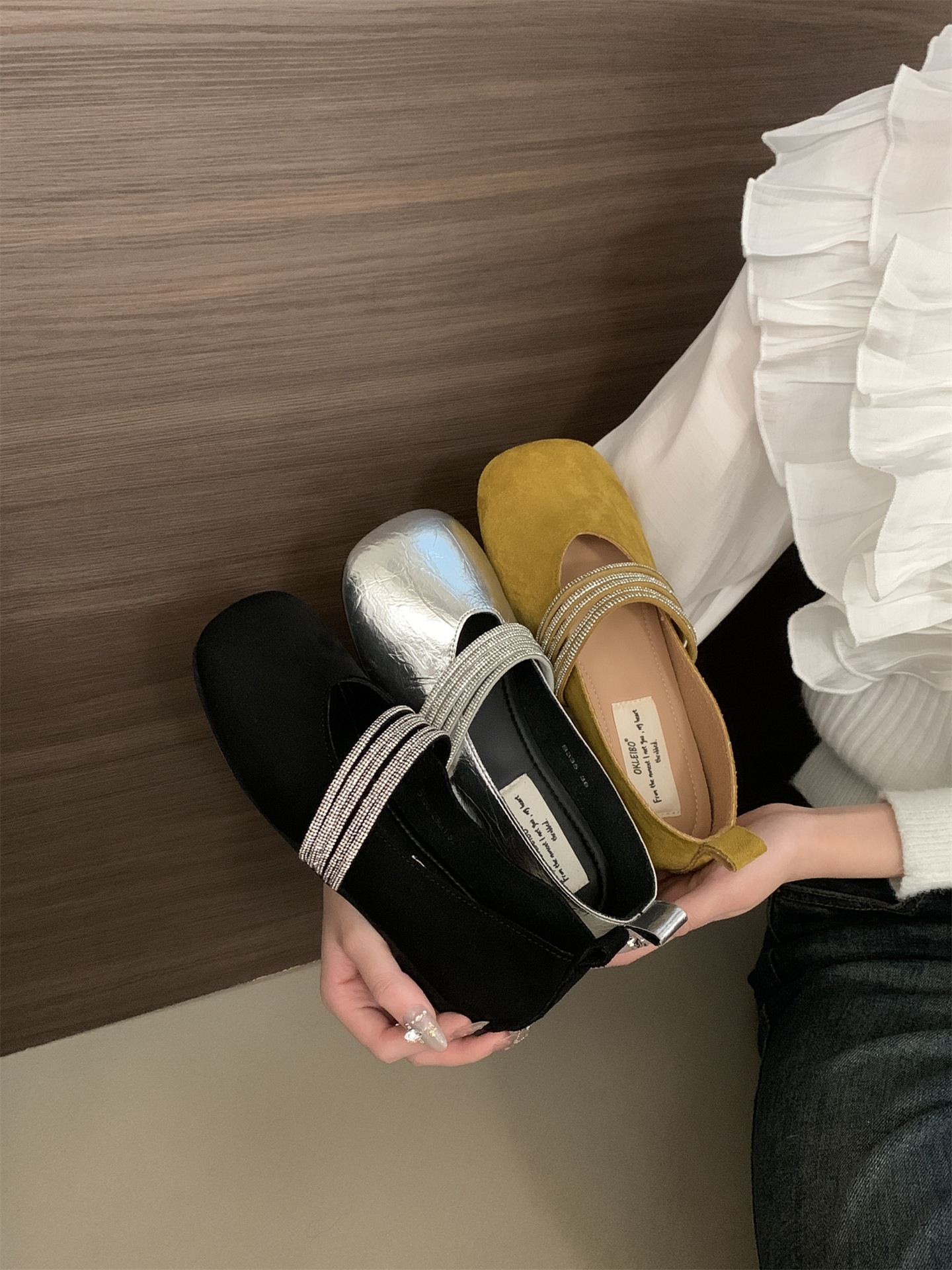 늦은 저녁 부드러운 얕은 입 라인스톤 소프트 솔 신발 여성의 2025 새로운 평면 프랑스 스파클링 요정 메리 제인 신발스토어 가기