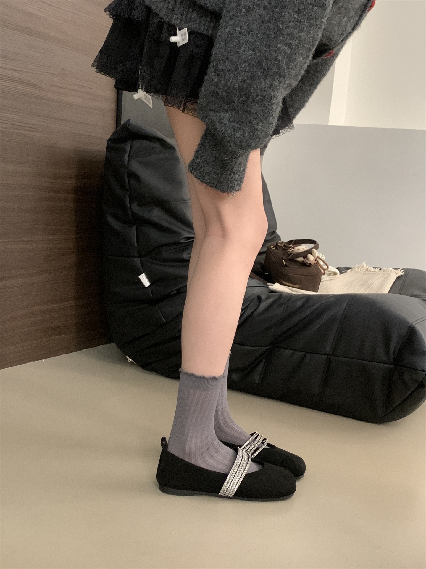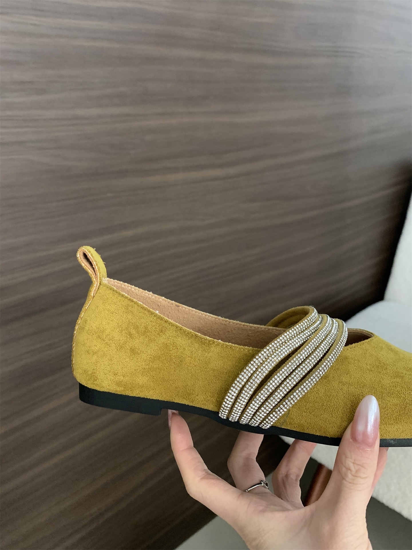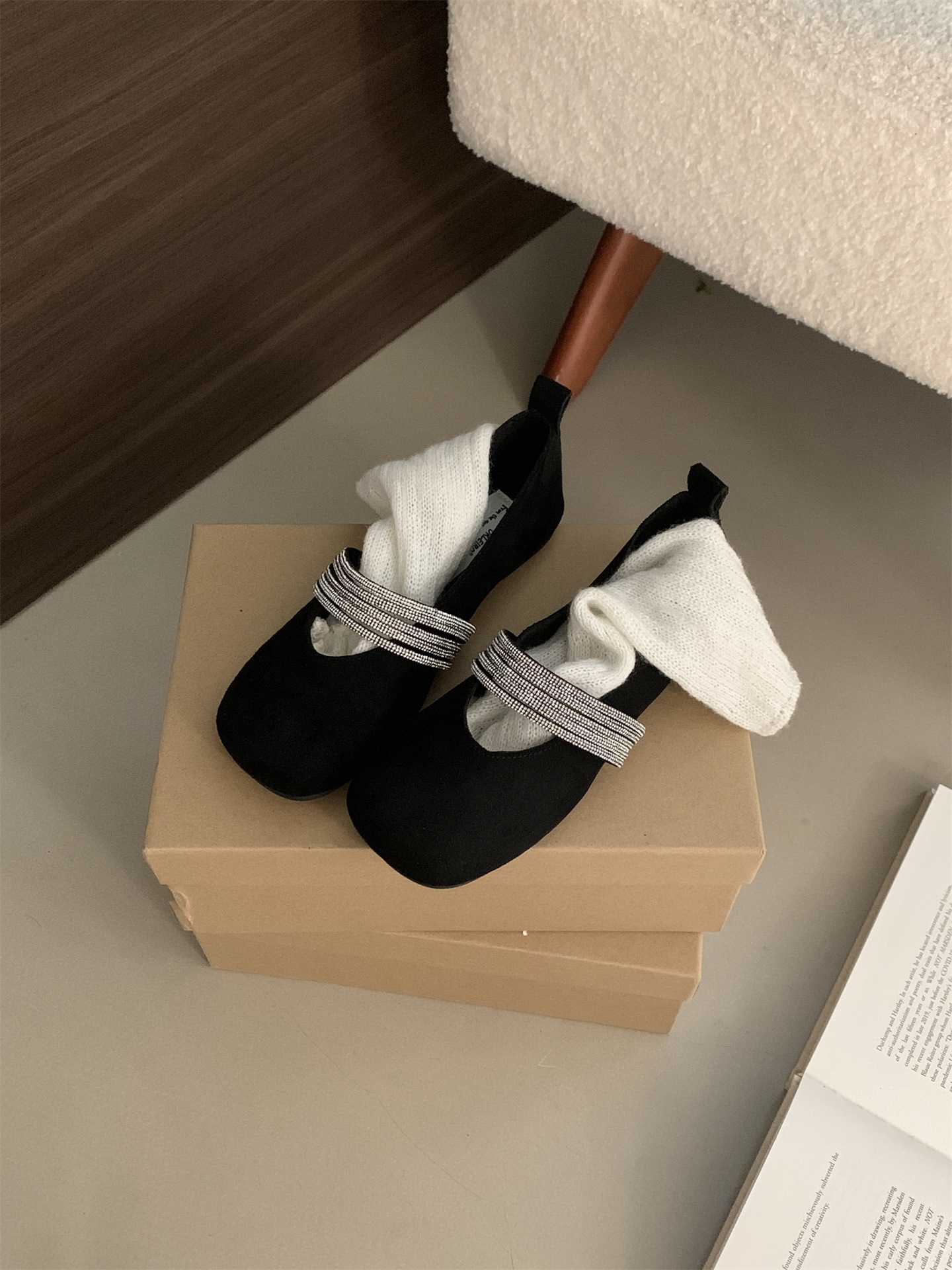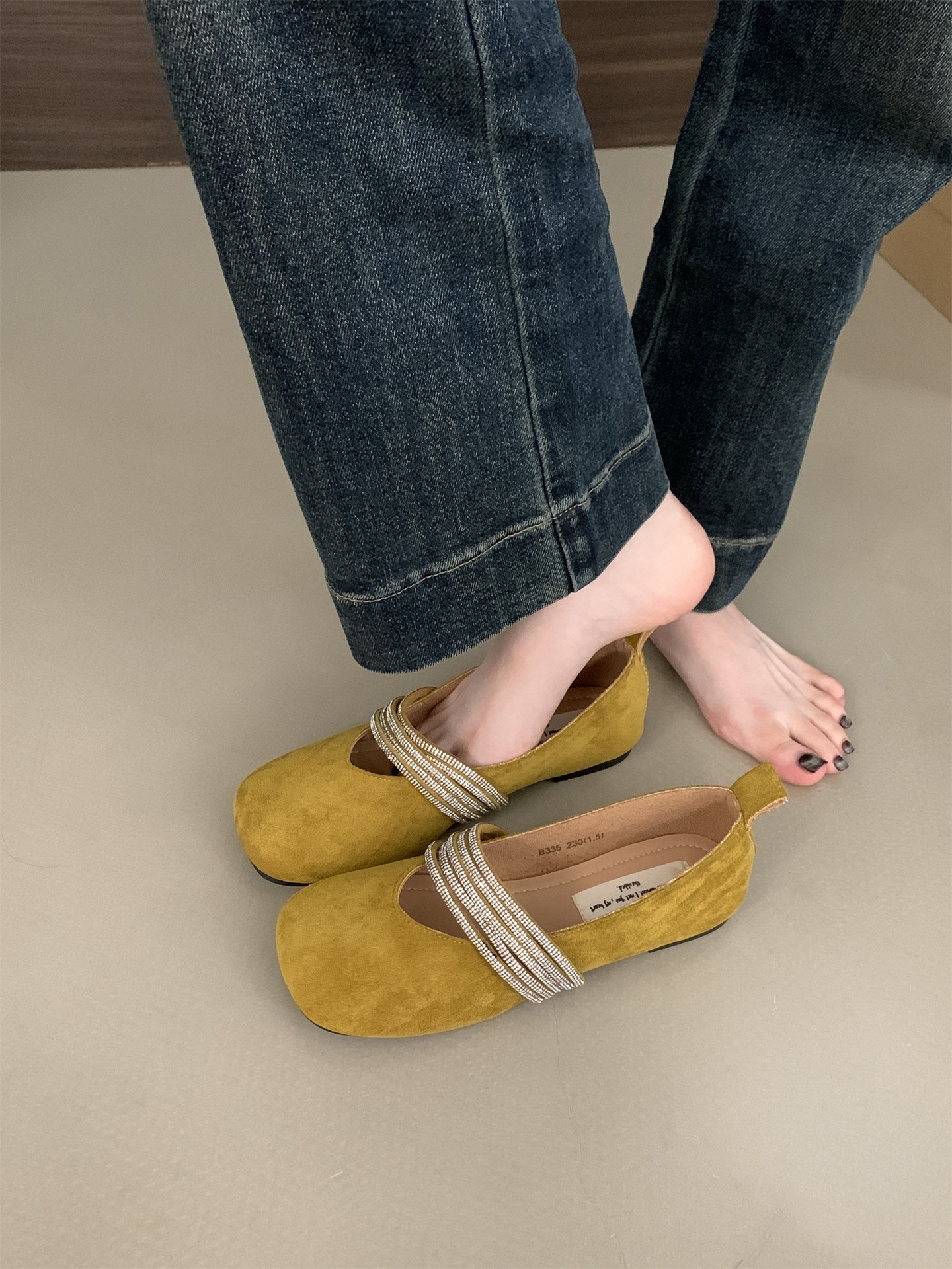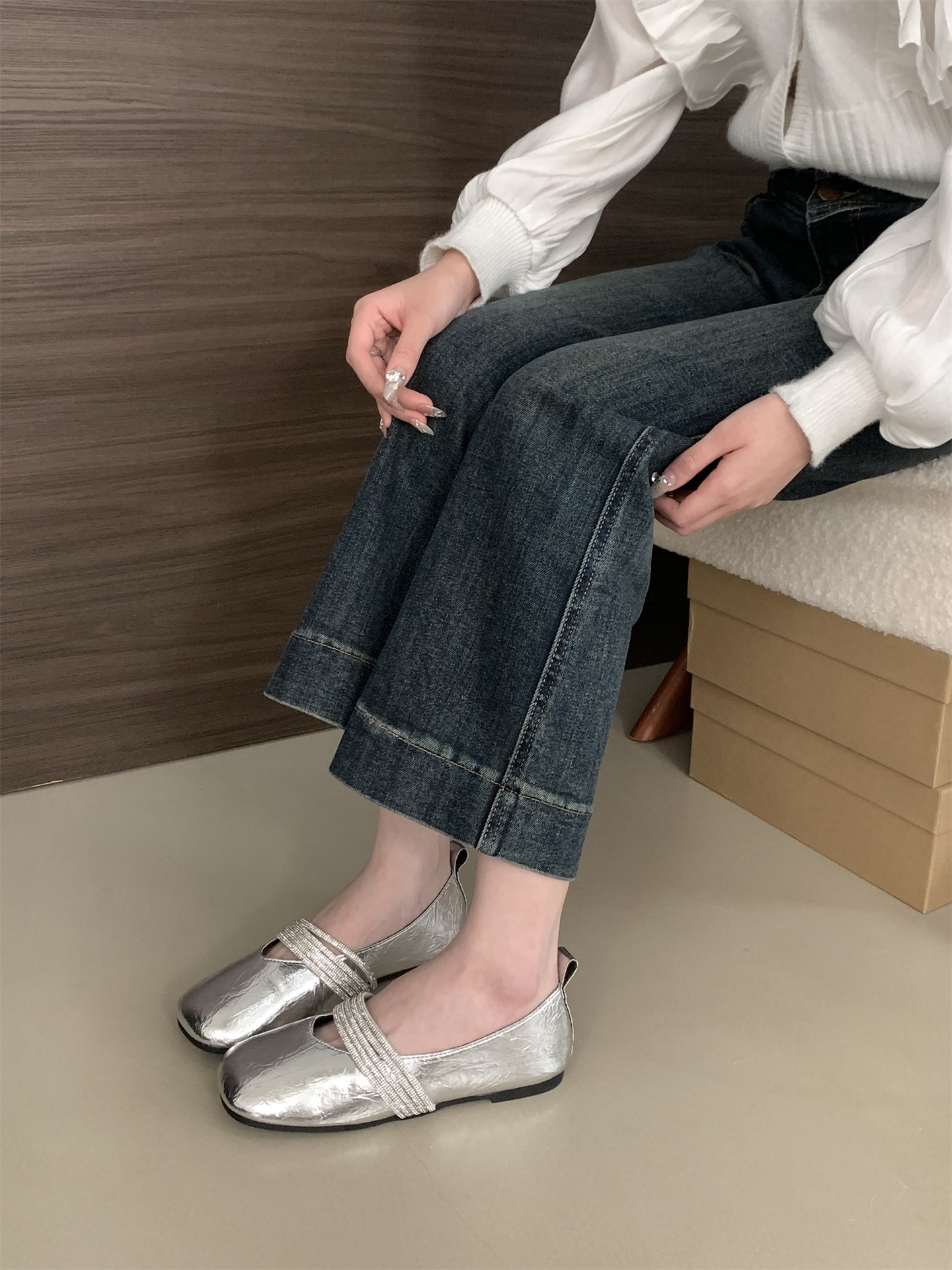 늦은 저녁 부드러운 얕은 입 라인스톤 소프트 솔 신발 여성의 2025 새로운 평면 프랑스 스파클링 요정 메리 제인 신발스토어 가기