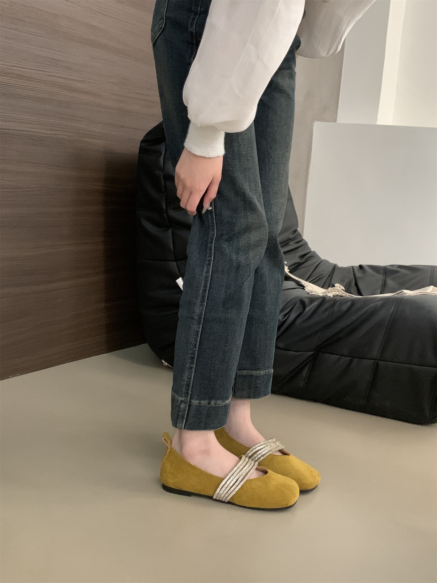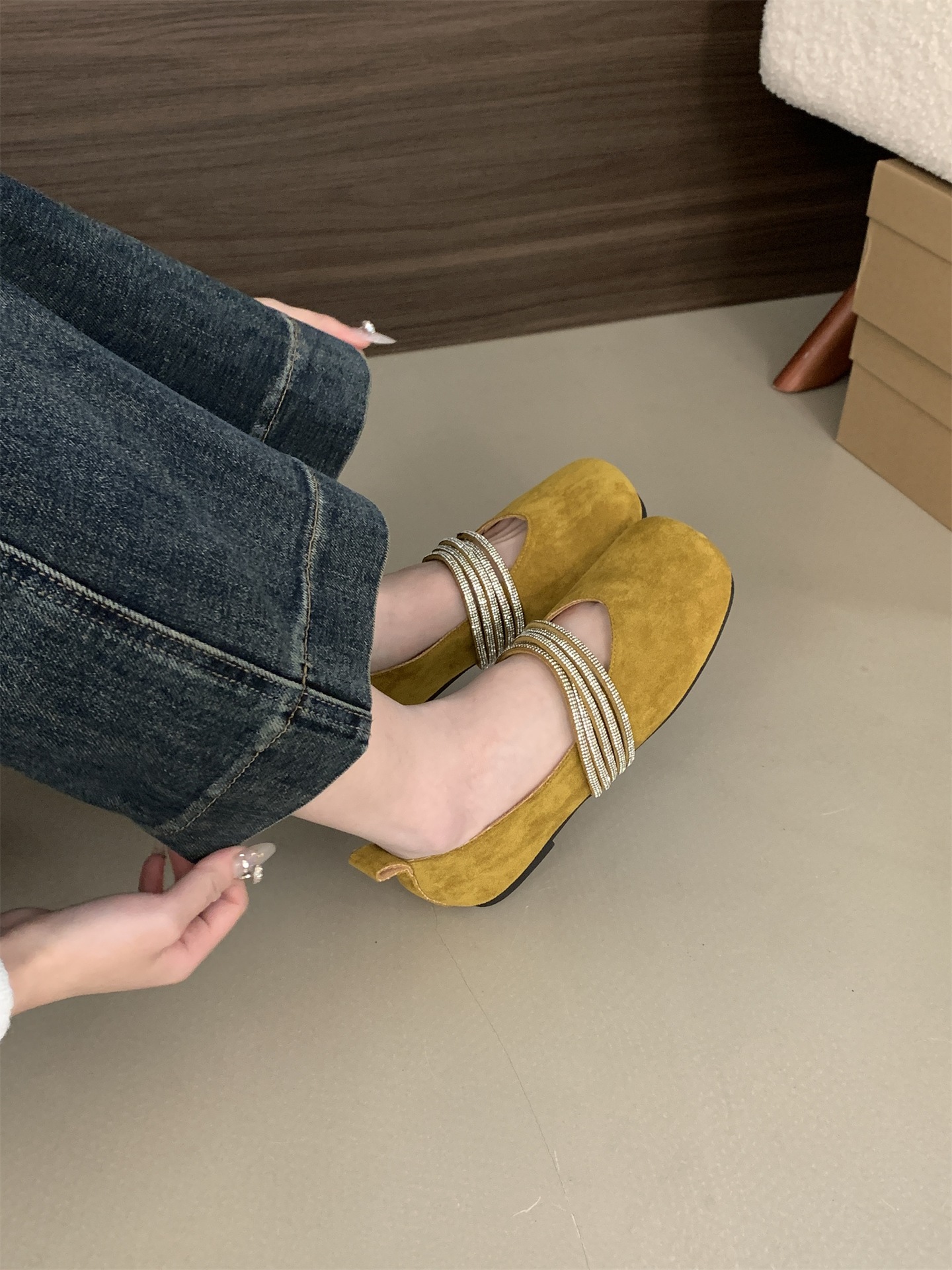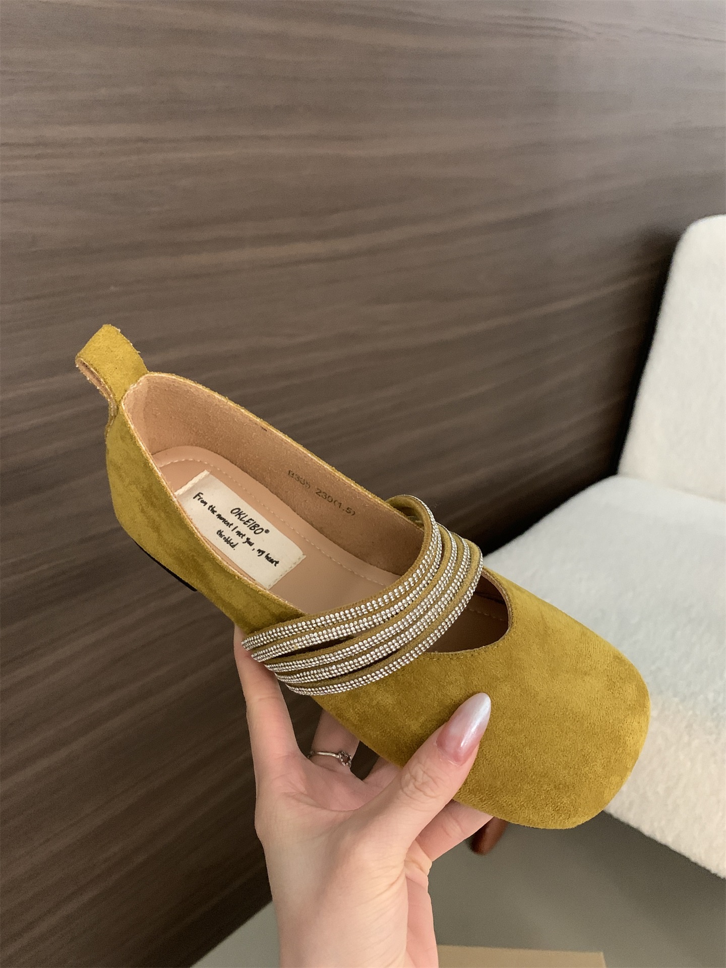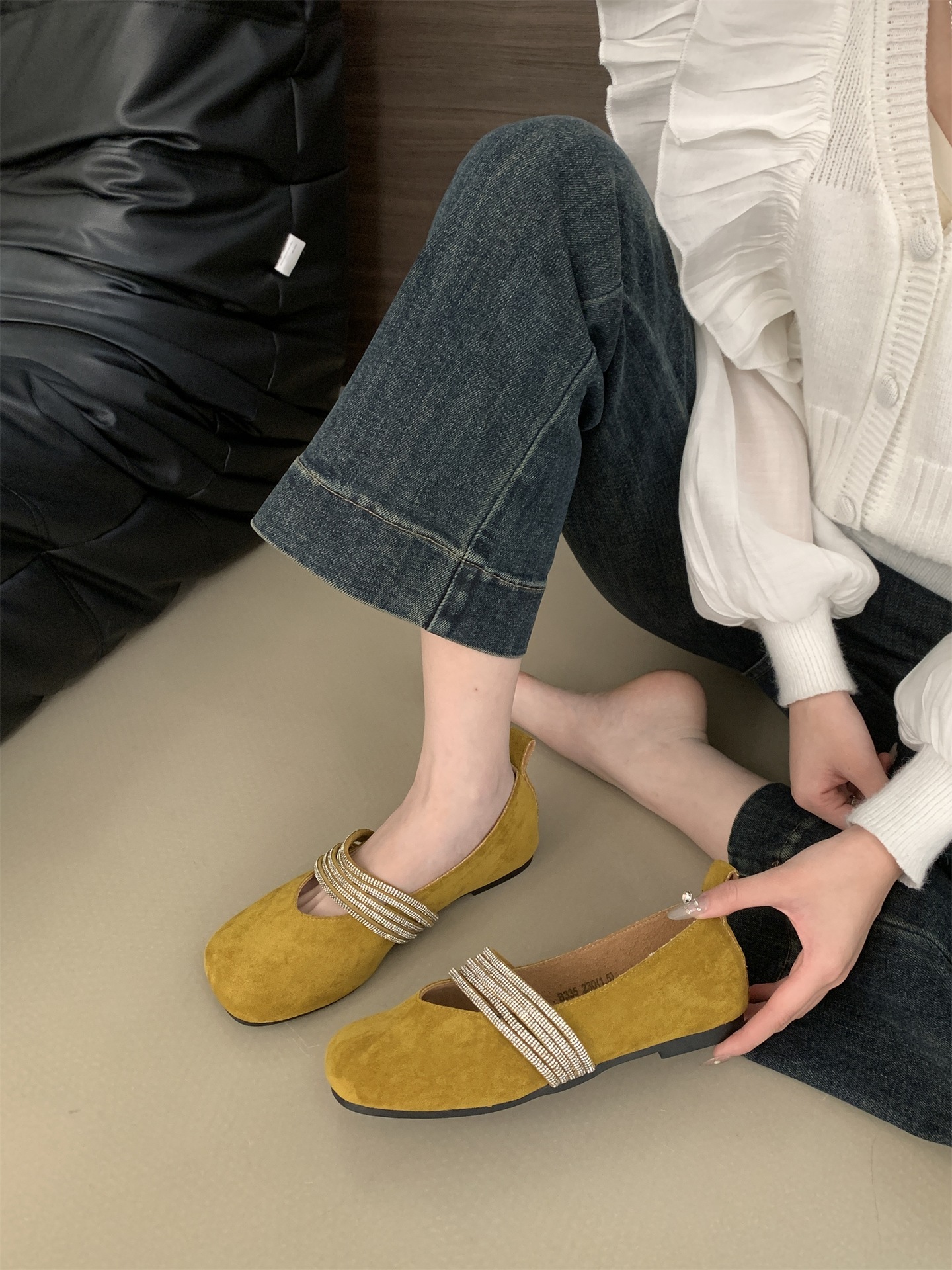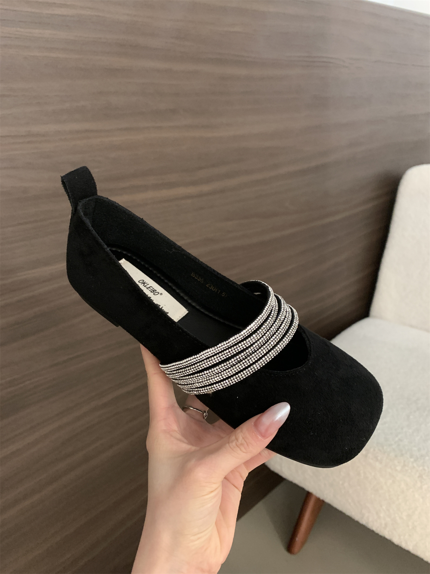 늦은 저녁 부드러운 얕은 입 라인스톤 소프트 솔 신발 여성의 2025 새로운 평면 프랑스 스파클링 요정 메리 제인 신발스토어 가기