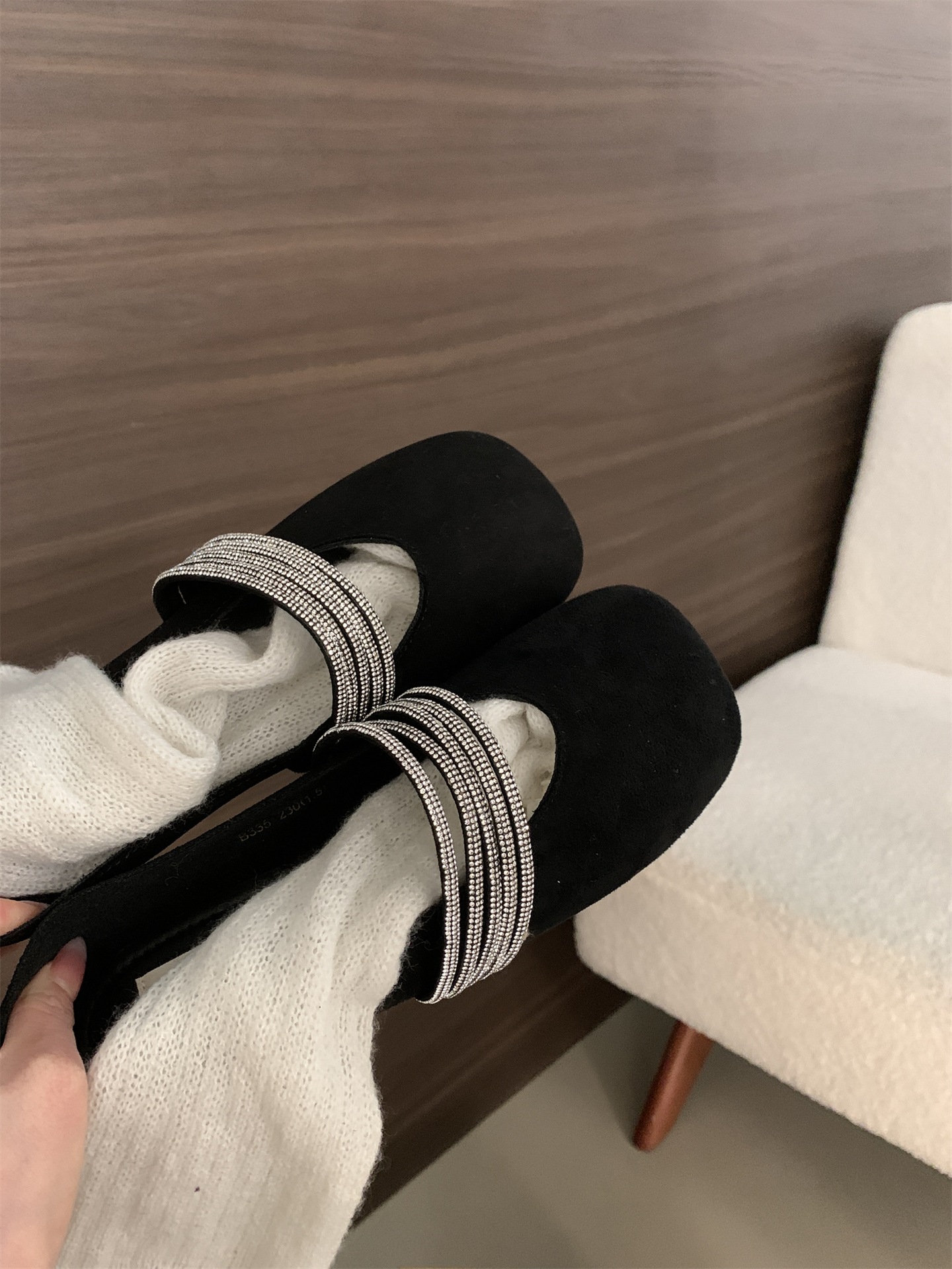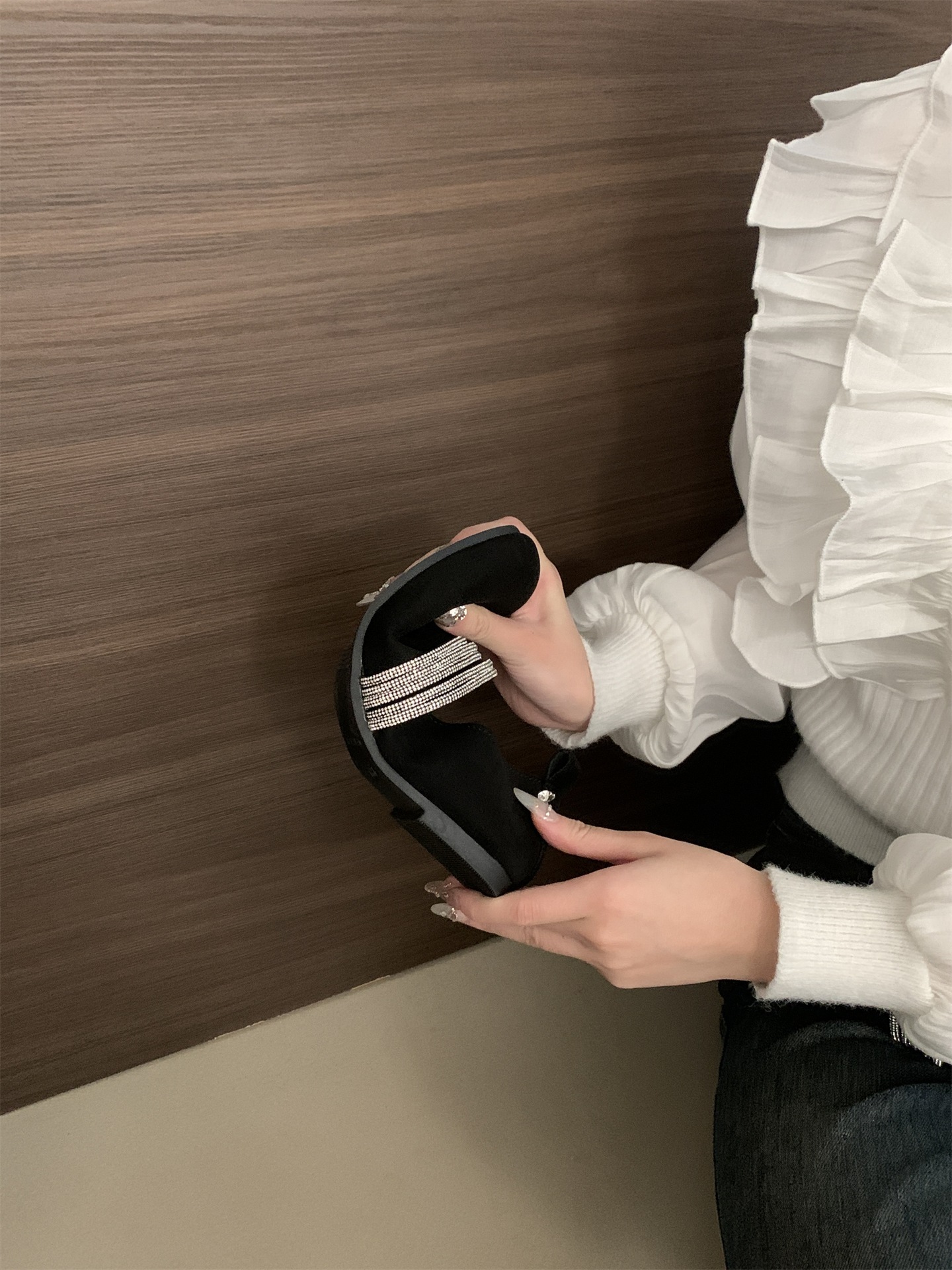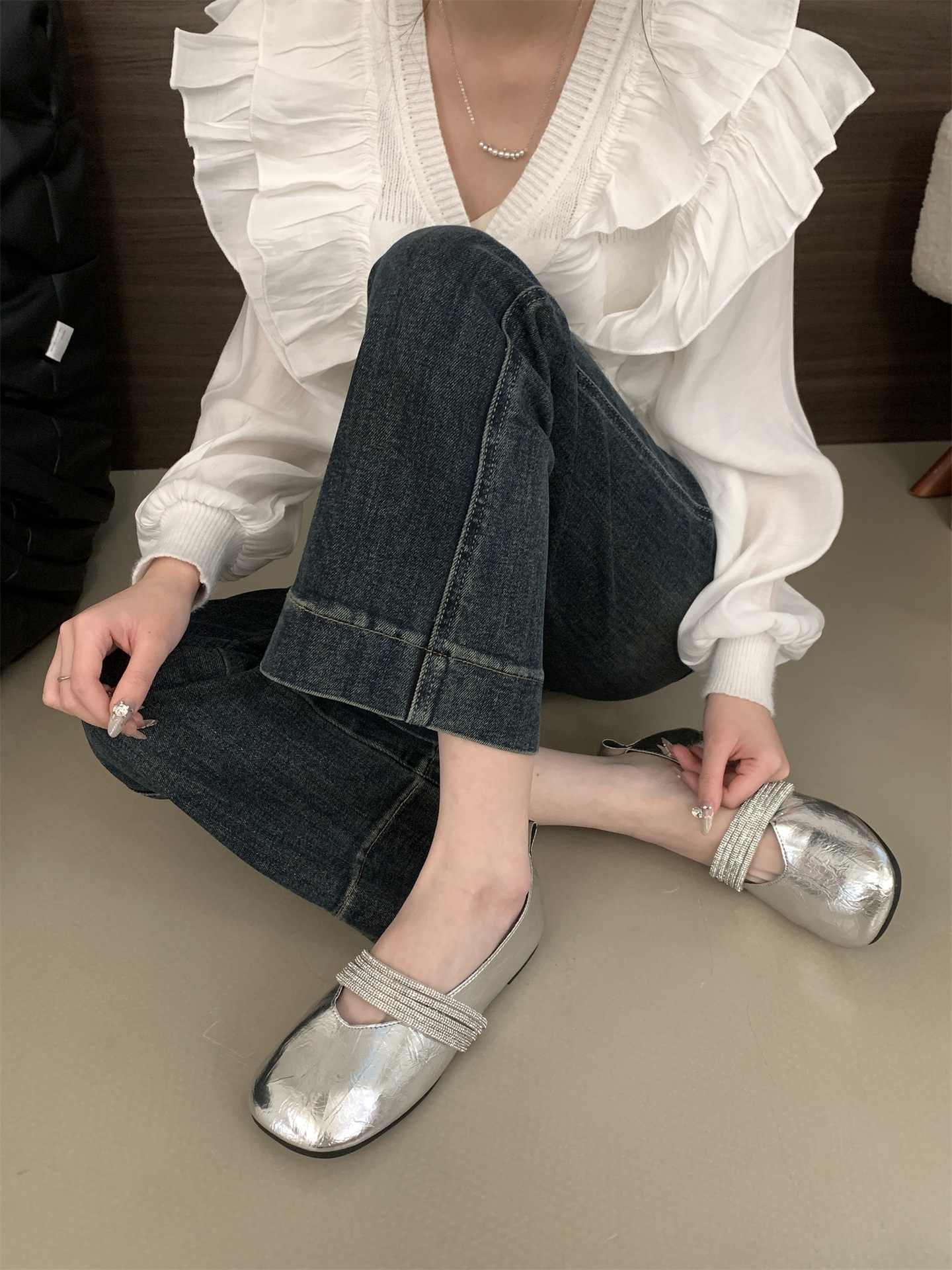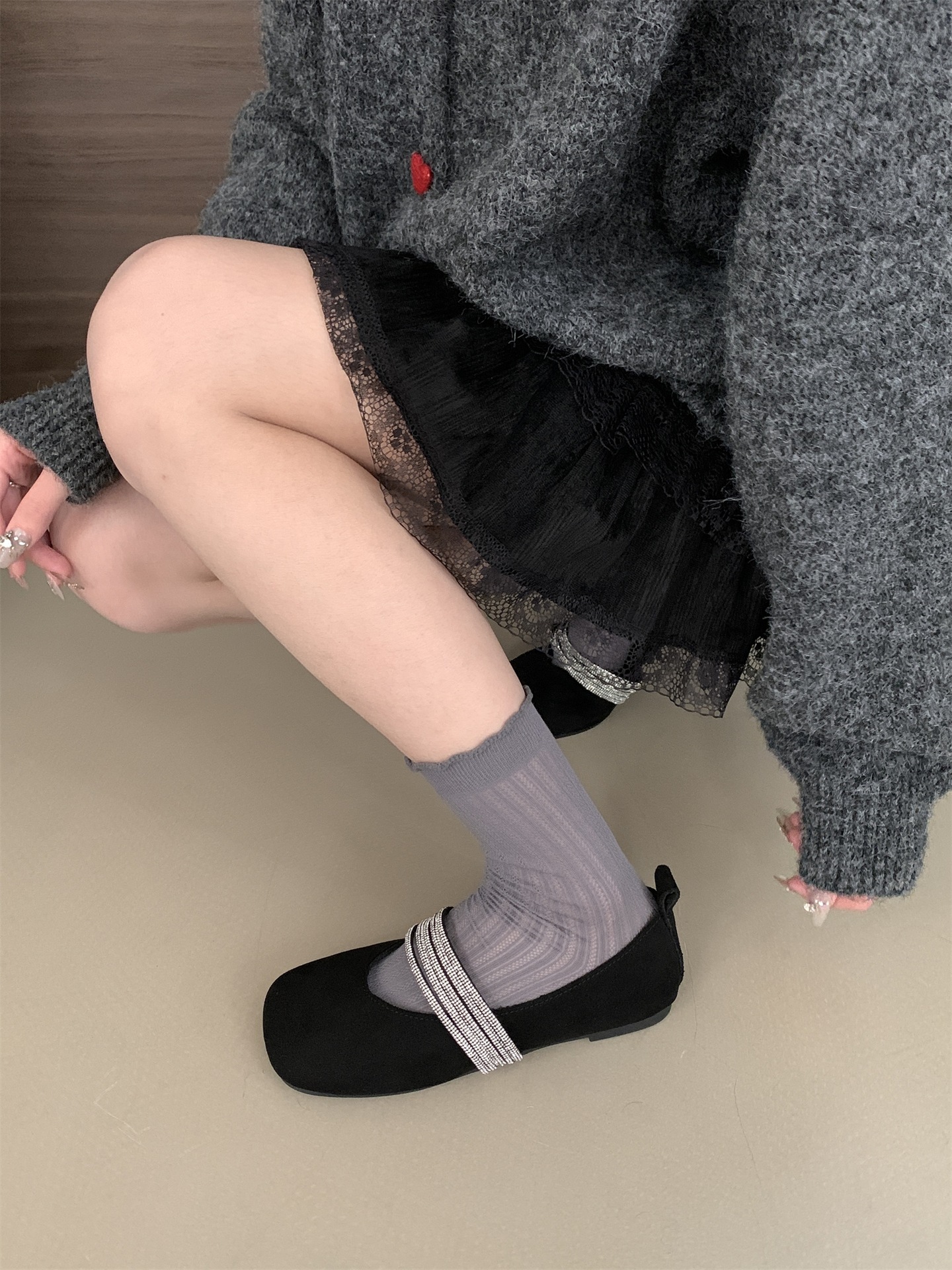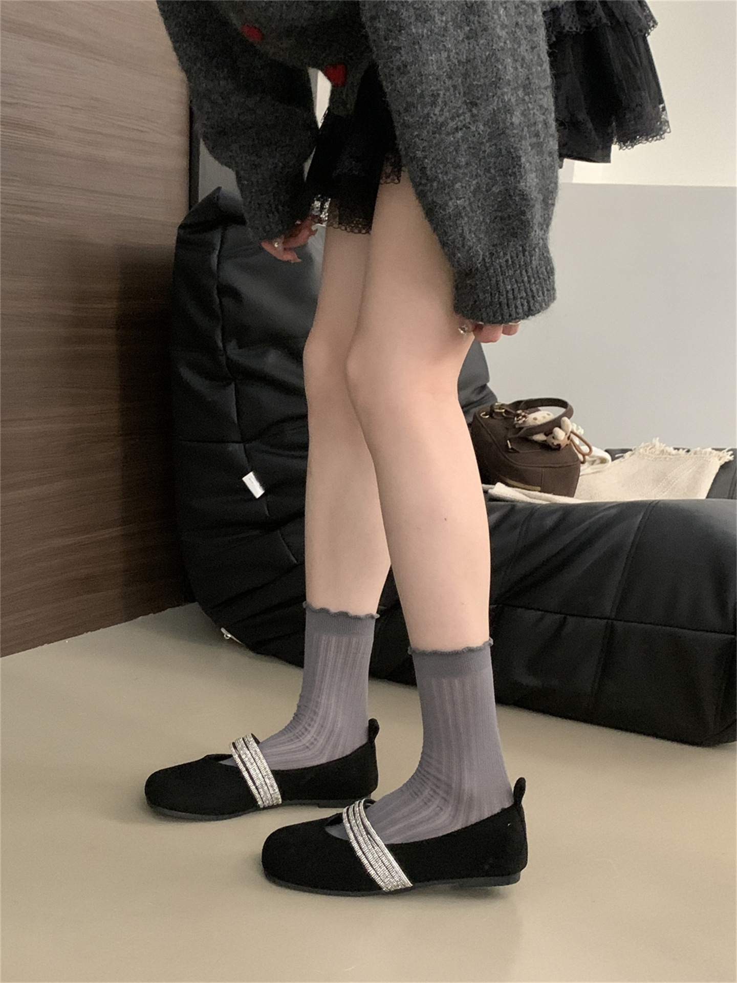 늦은 저녁 부드러운 얕은 입 라인스톤 소프트 솔 신발 여성의 2025 새로운 평면 프랑스 스파클링 요정 메리 제인 신발스토어 가기